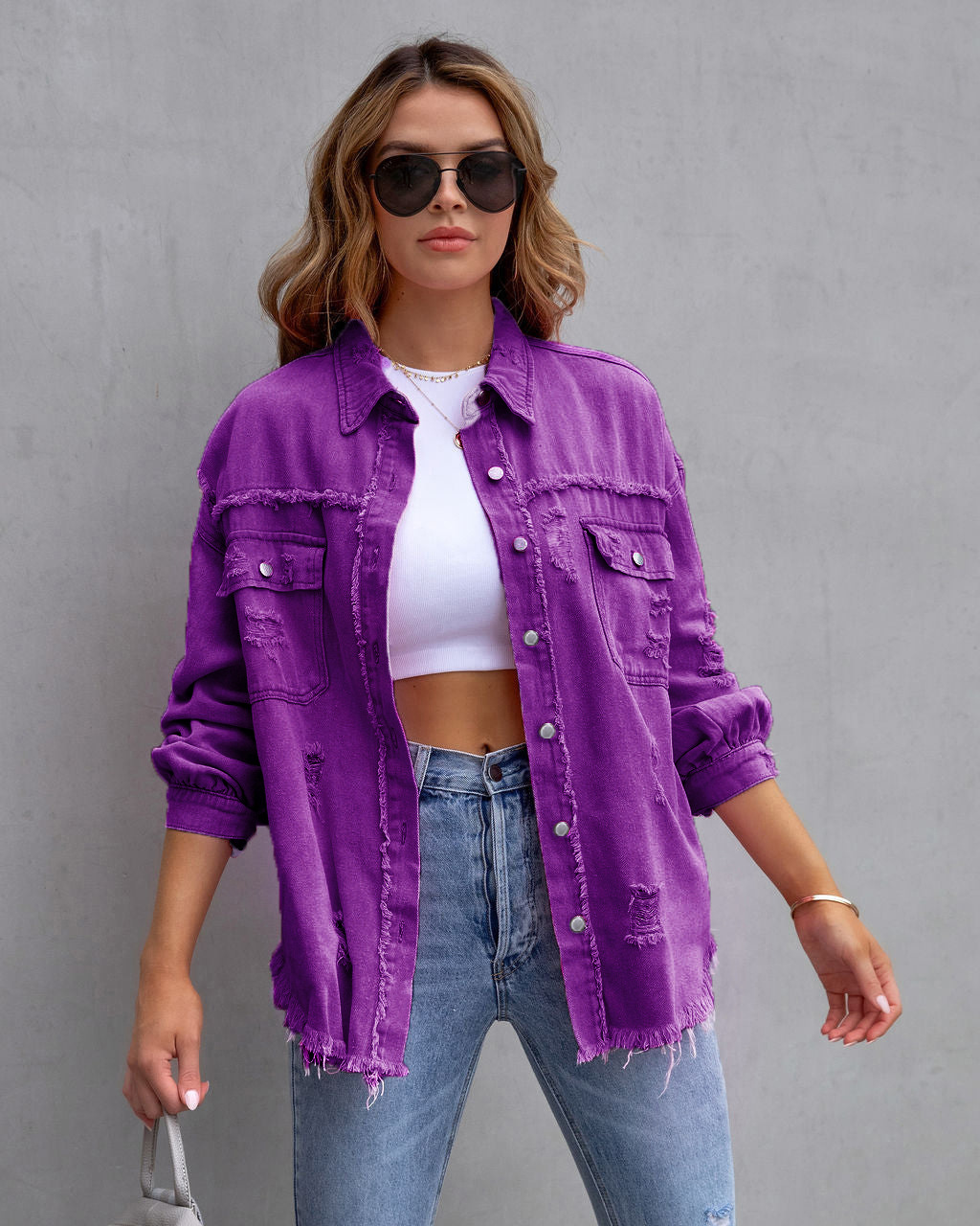 Arrival Multicolor MidLength Ripped Loose Denim Jacket Women Jacket Women