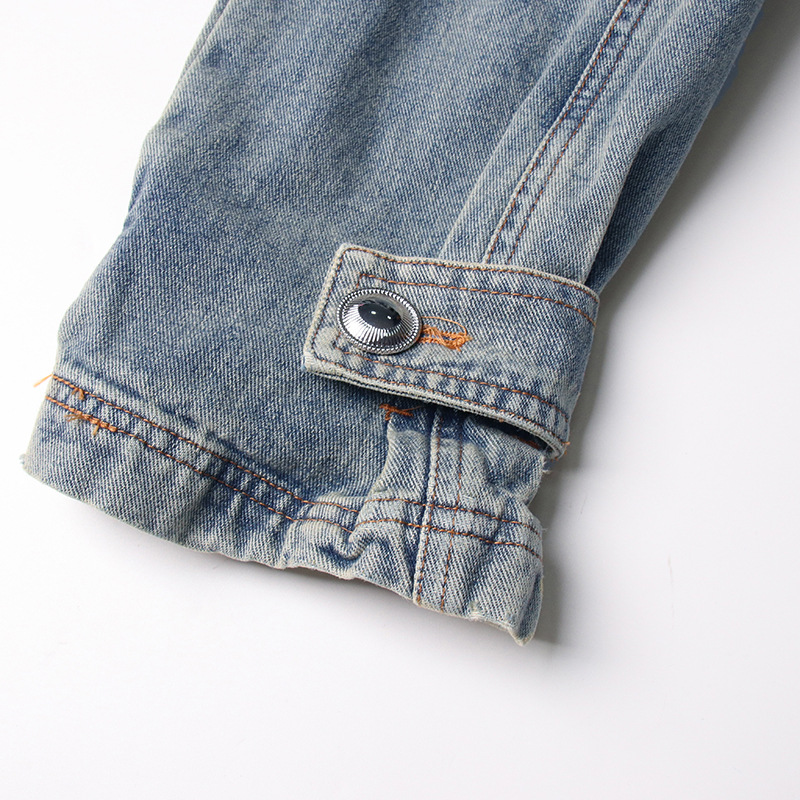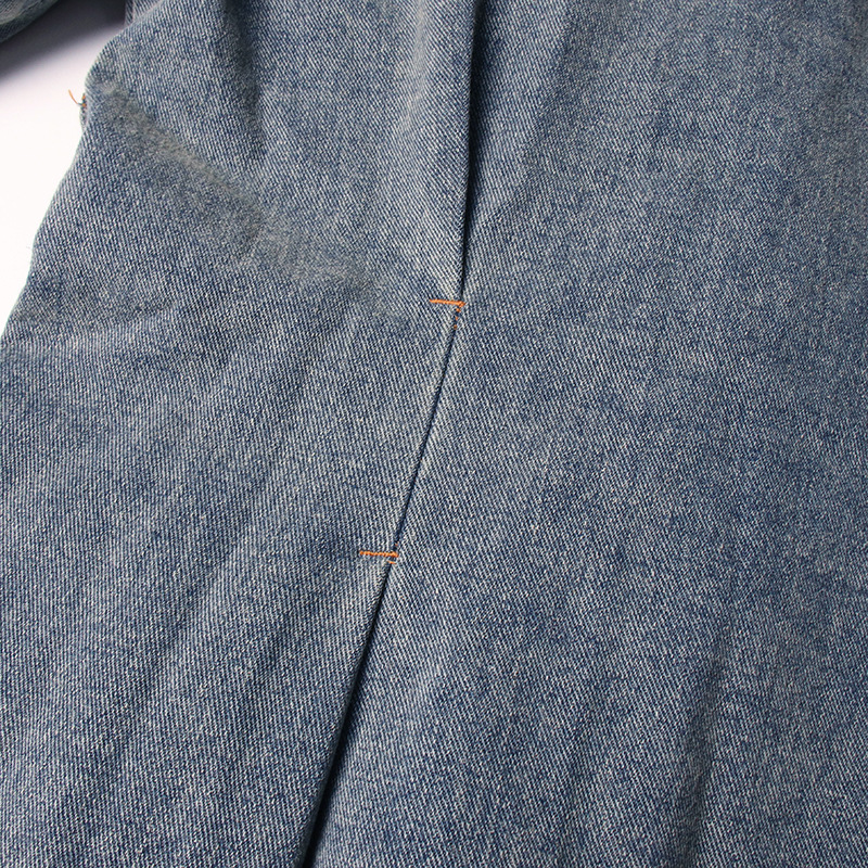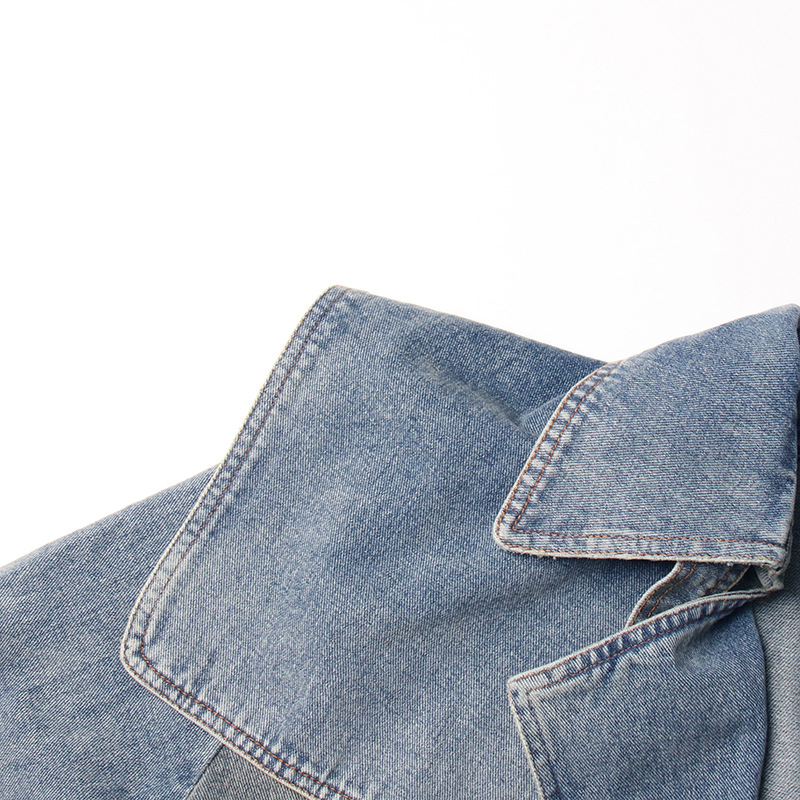 Autumn Elegant Women Clothing Denim Trench Coat Polo Collar Lace up Design Slimming Denim Trench Coat