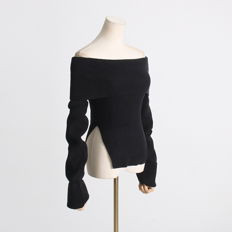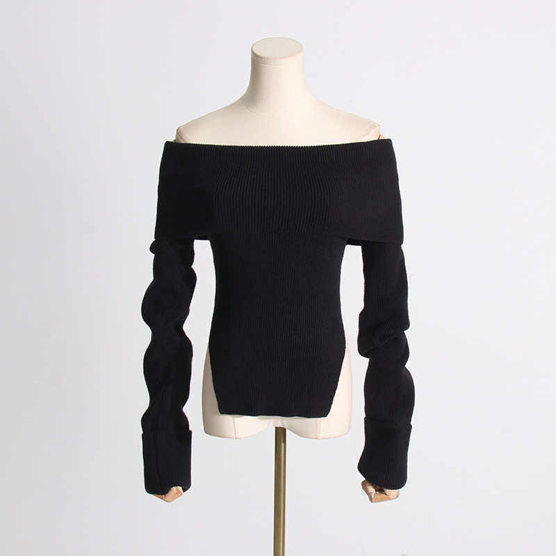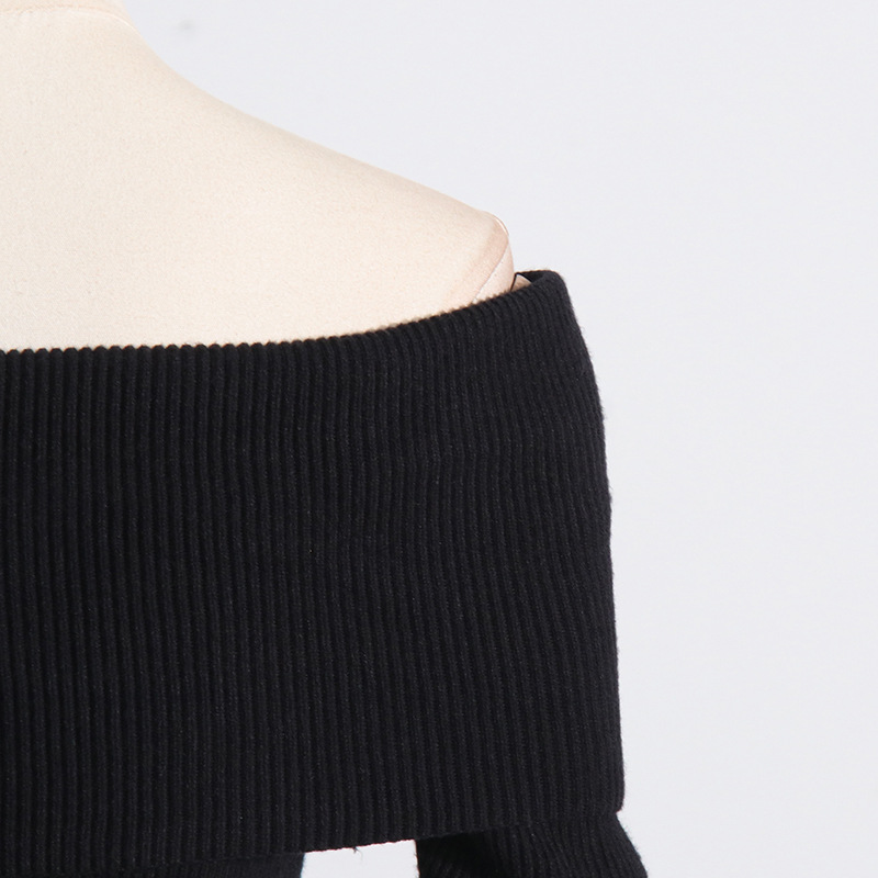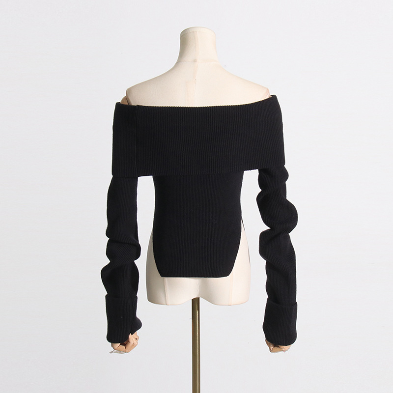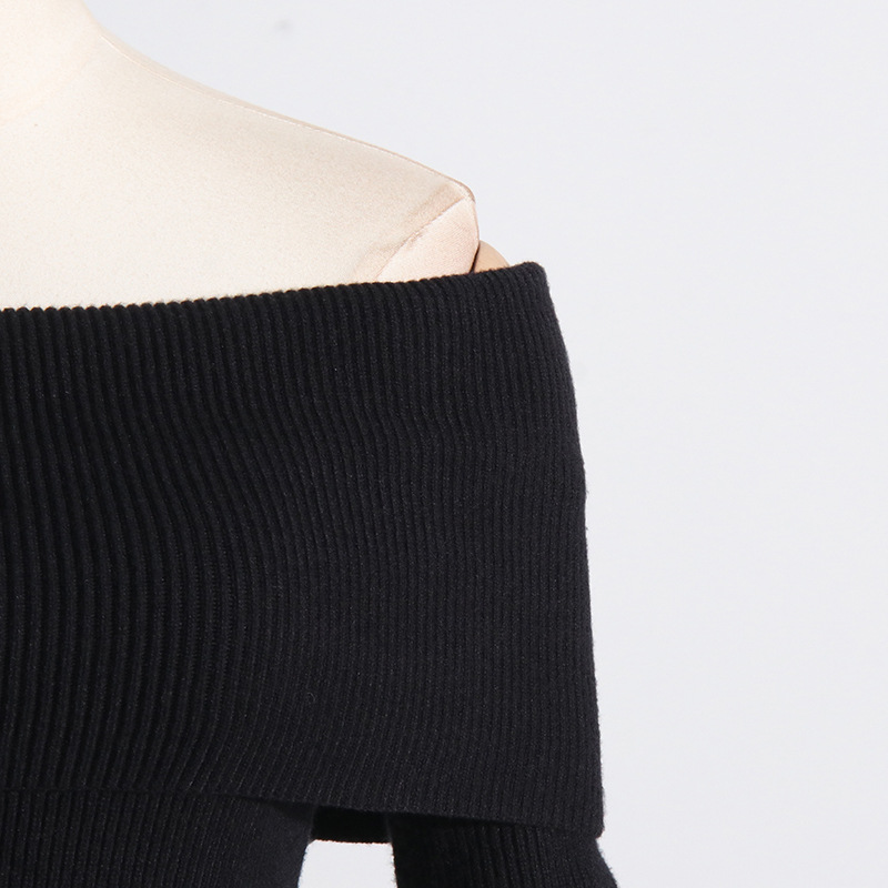 Autumn off Shoulder Slim Fit Slimming Long Sleeves Knitwear Women Solid Color Backless Sweater