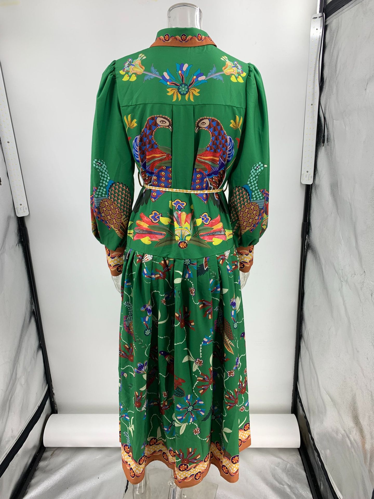 Autumn Printed Cardigan Printed Wide Hem Long Sleeve Dress for Women