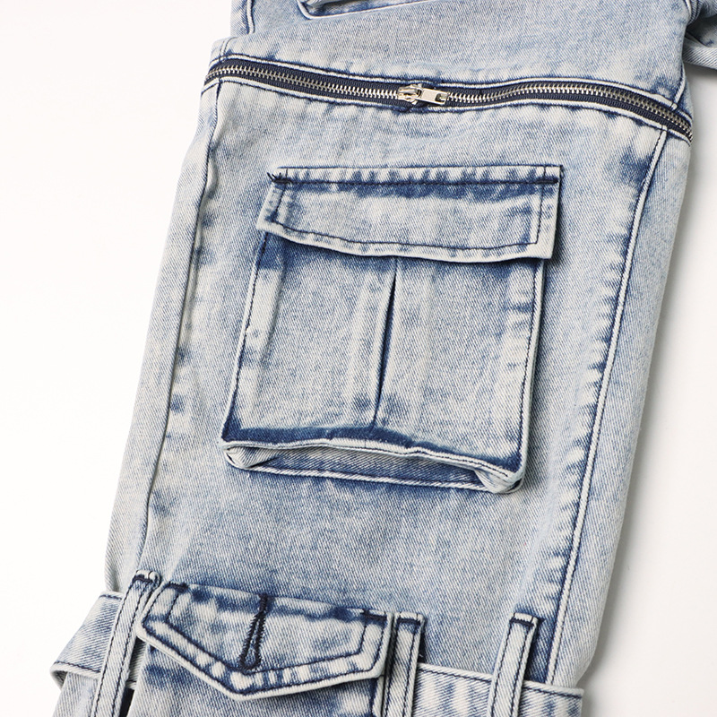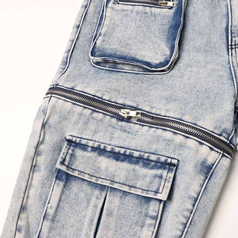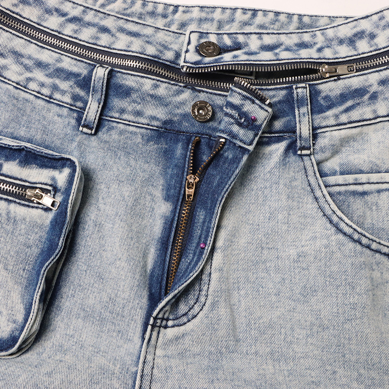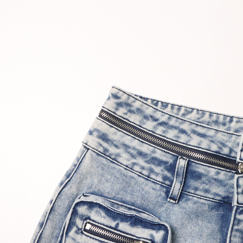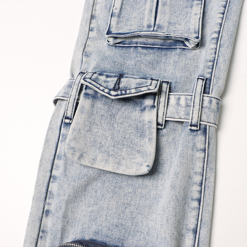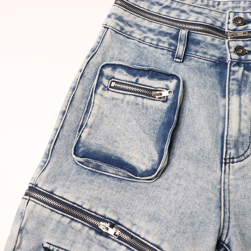 Autumn Smart Trousers Niche Design Patchwork Pocket Deconstructed High Waist Straight Jeans for Women
