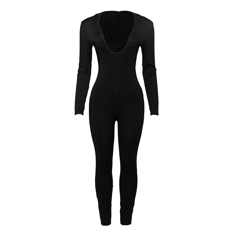 Autumn Solid Color Long Sleeve Hooded Backless Sexy Slim Women Jumpsuit