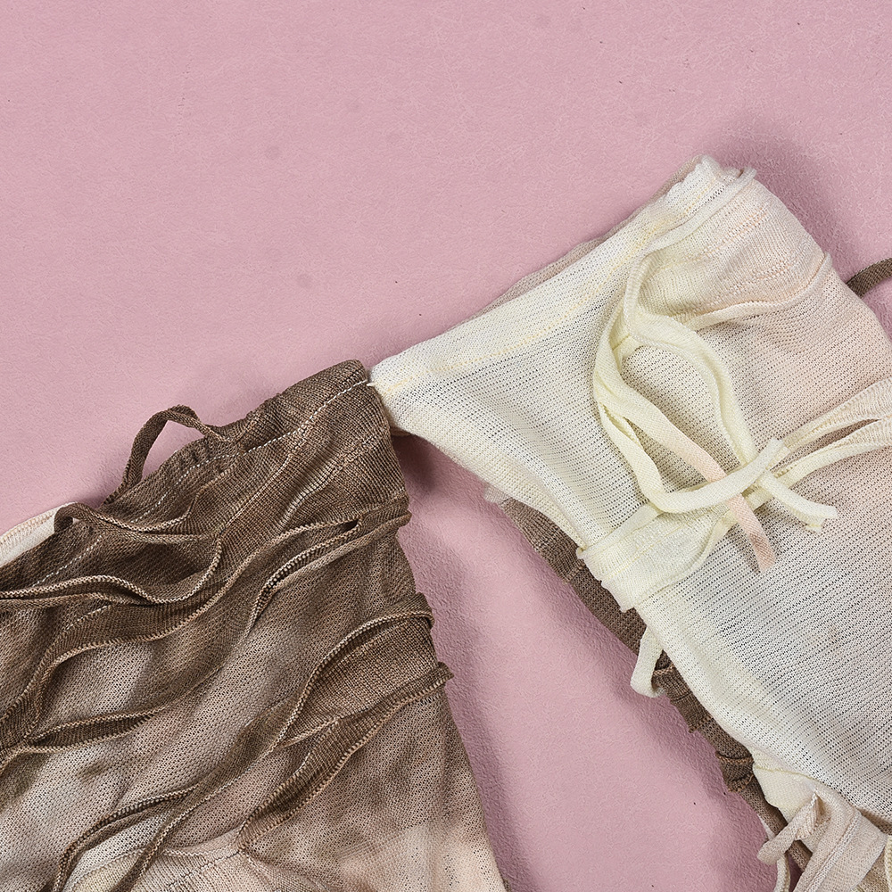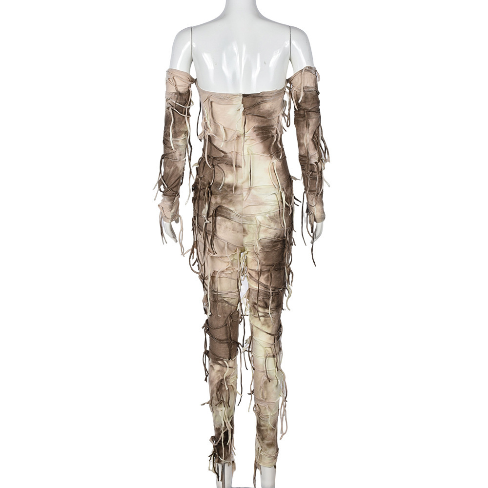 Autumn Tie Dyed Tassel Sexy Bandeau Backless Ice Sleeve Jumpsuit for Women