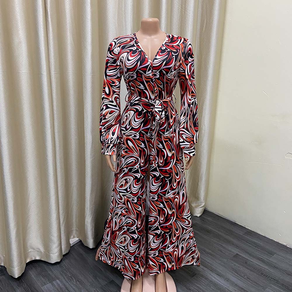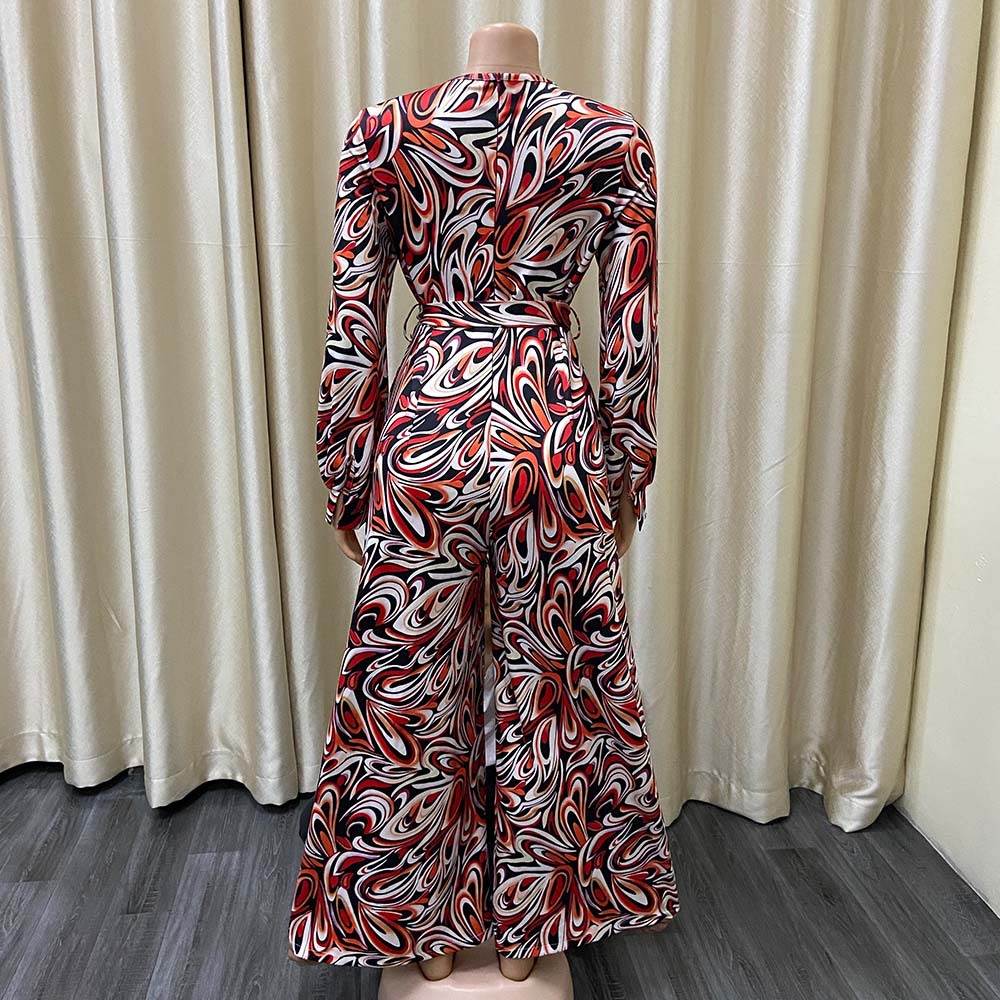 Autumn Winter Casual Women Clothing Printed Wide Leg Long Sleeve African Jumpsuit