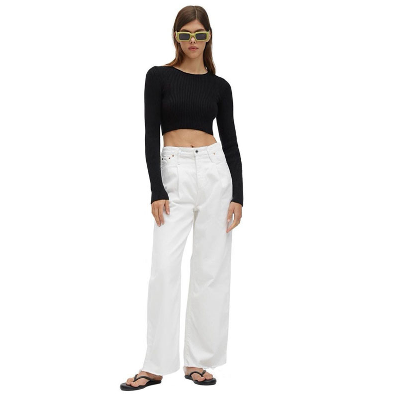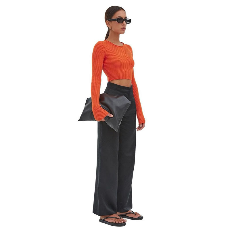Autumn Winter Long Sleeve round-Neck High Waist Sexy Knitted Sweater Top
