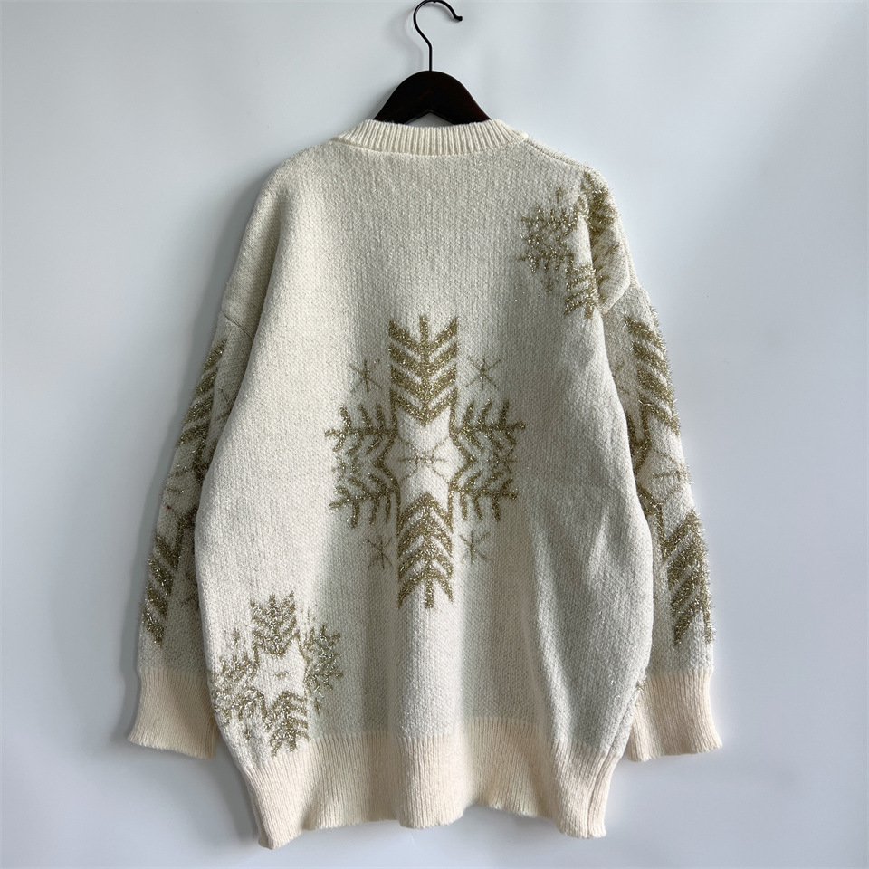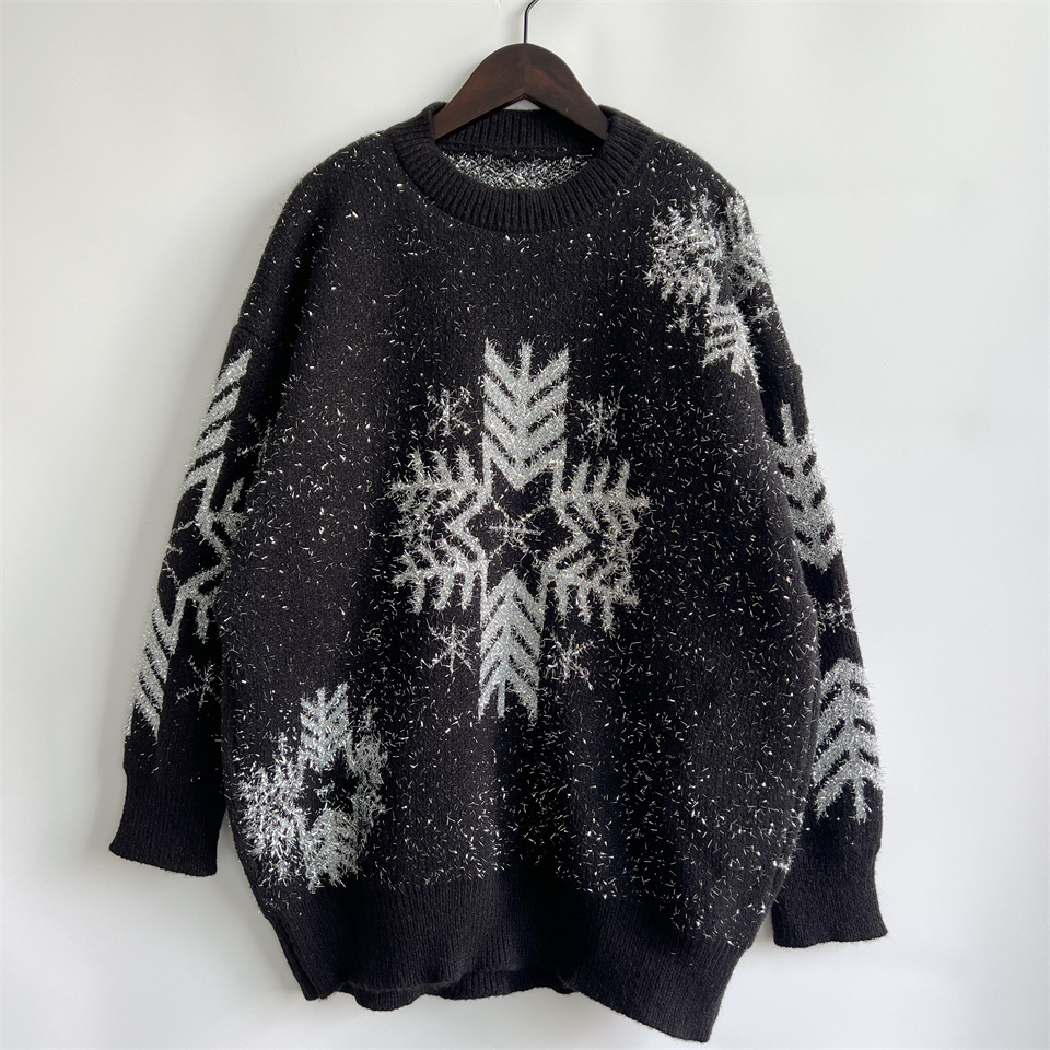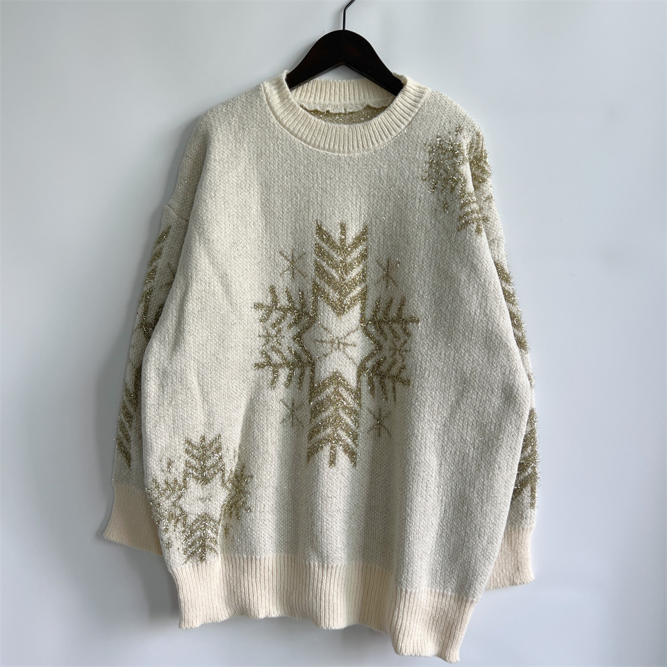 Autumn Winter Loose Gold Line Big Snowflake Christmas Sweater Round Neck Long Sleeved Thickened Pullover Women