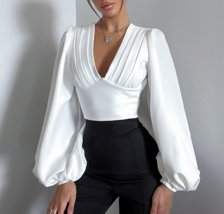 Autumn Winter Retro Palace Niche Sexy V neck Top High Grade Slim Fit Short Shirt for Women