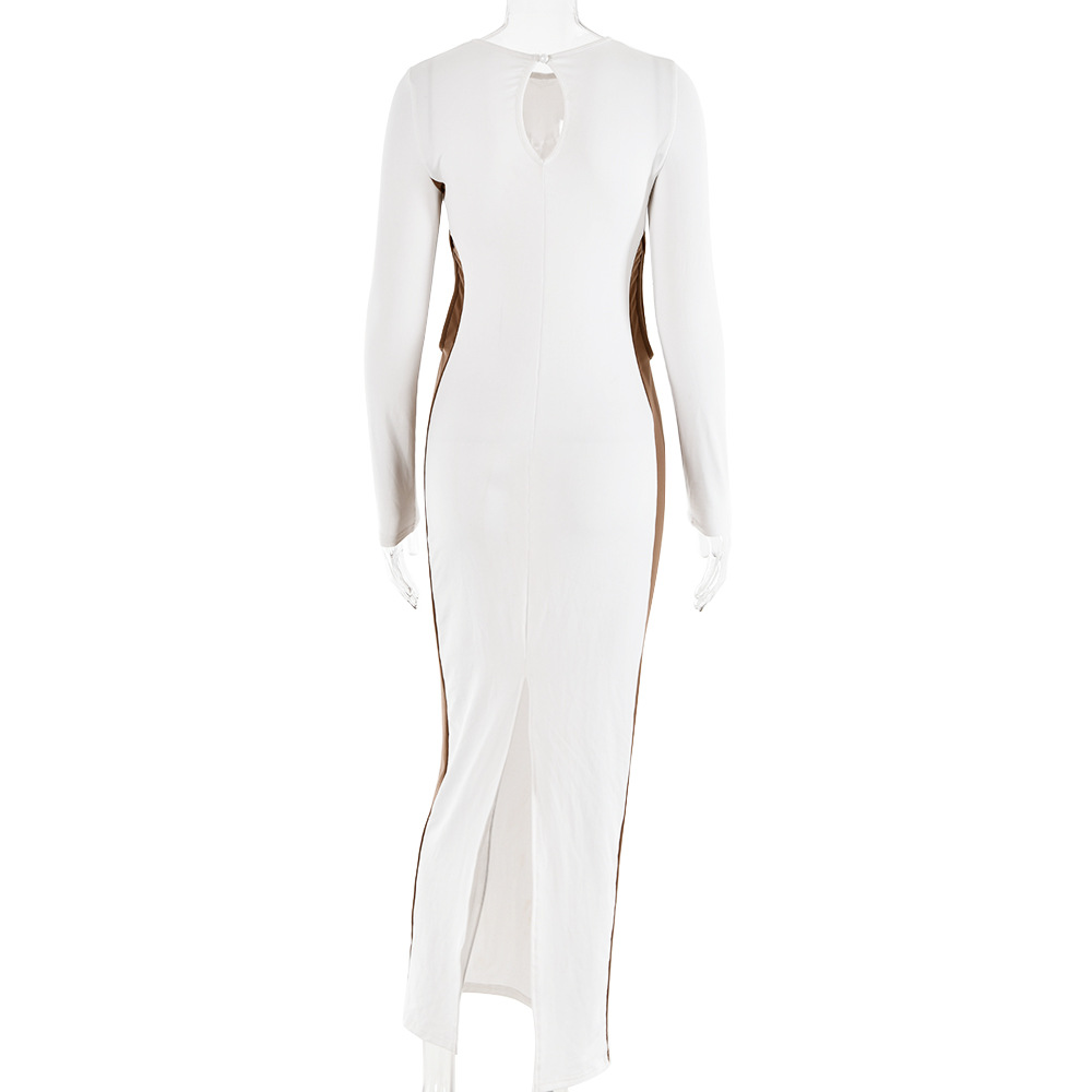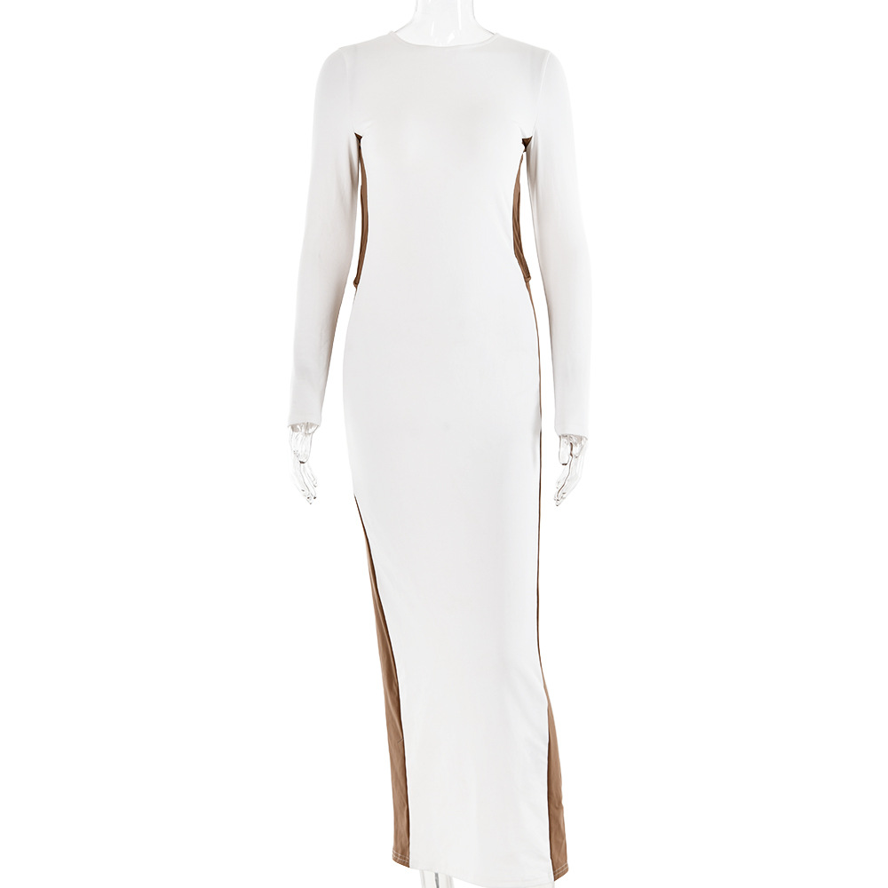 Autumn Winter round Neck Long Sleeved Dress Women Sexy Split Dress