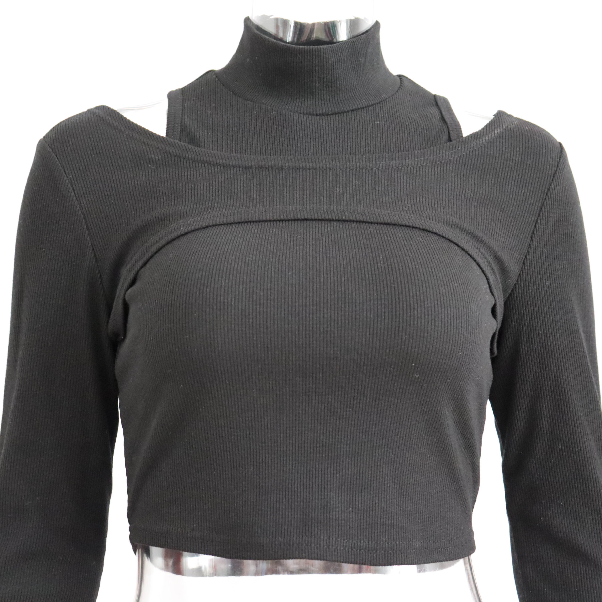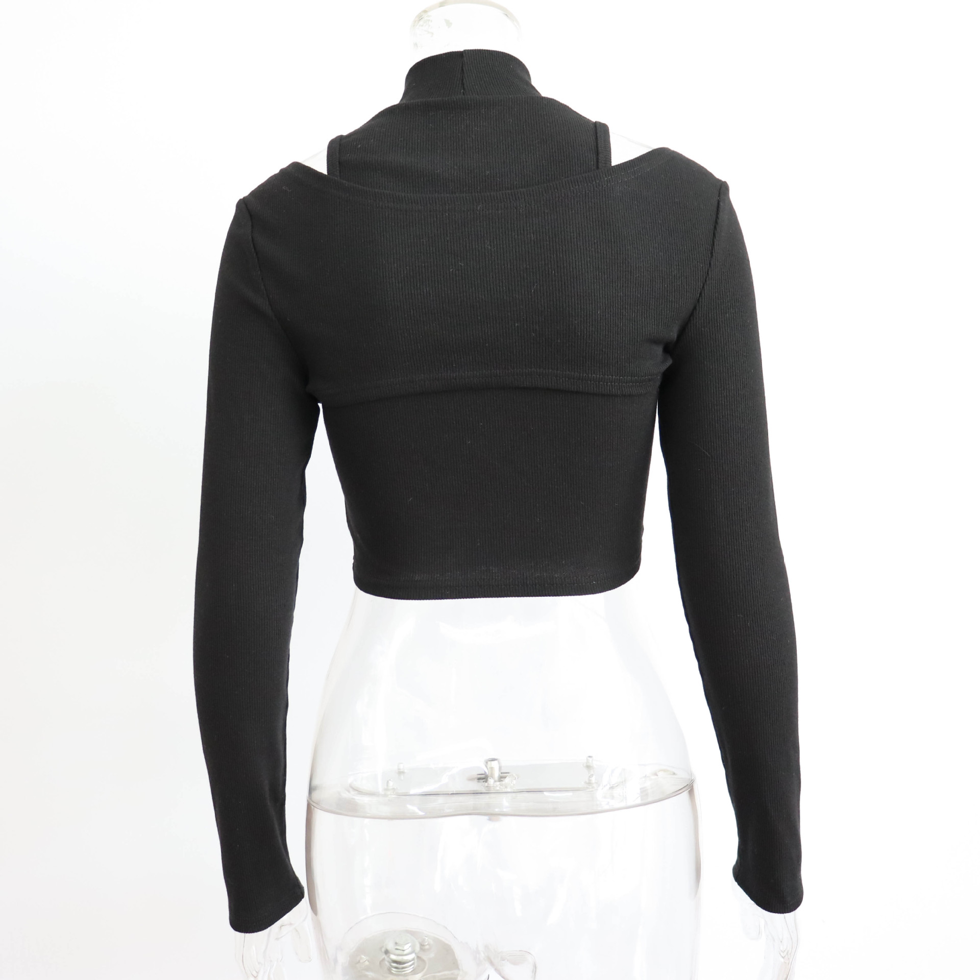 Autumn Winter Sexy Inner Half High Collar Vest T shirt Two Piece Set Cropped Solid Color Long Sleeve Slim Fit Short Top for Women