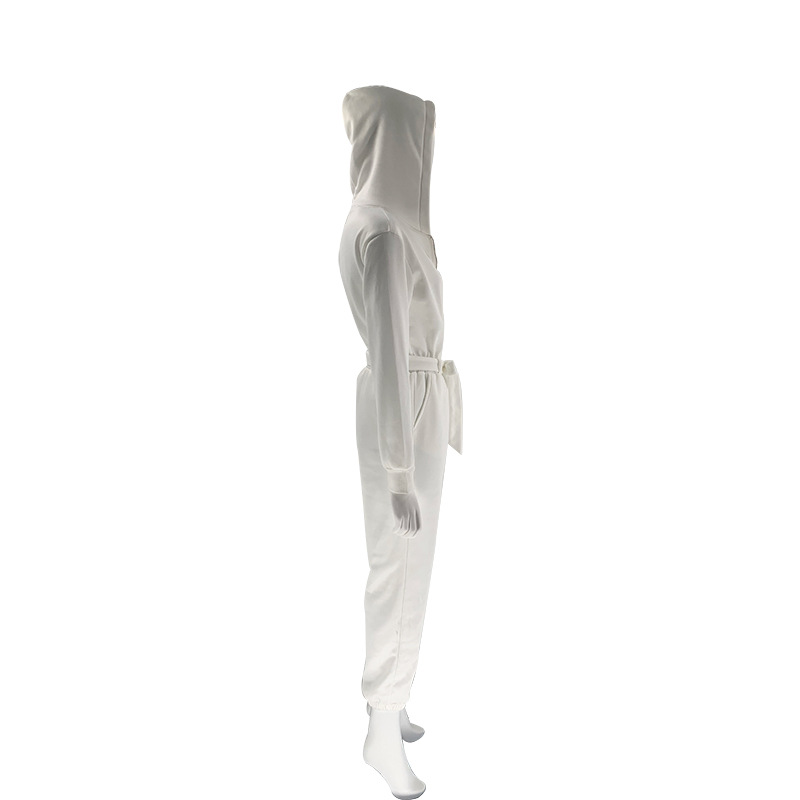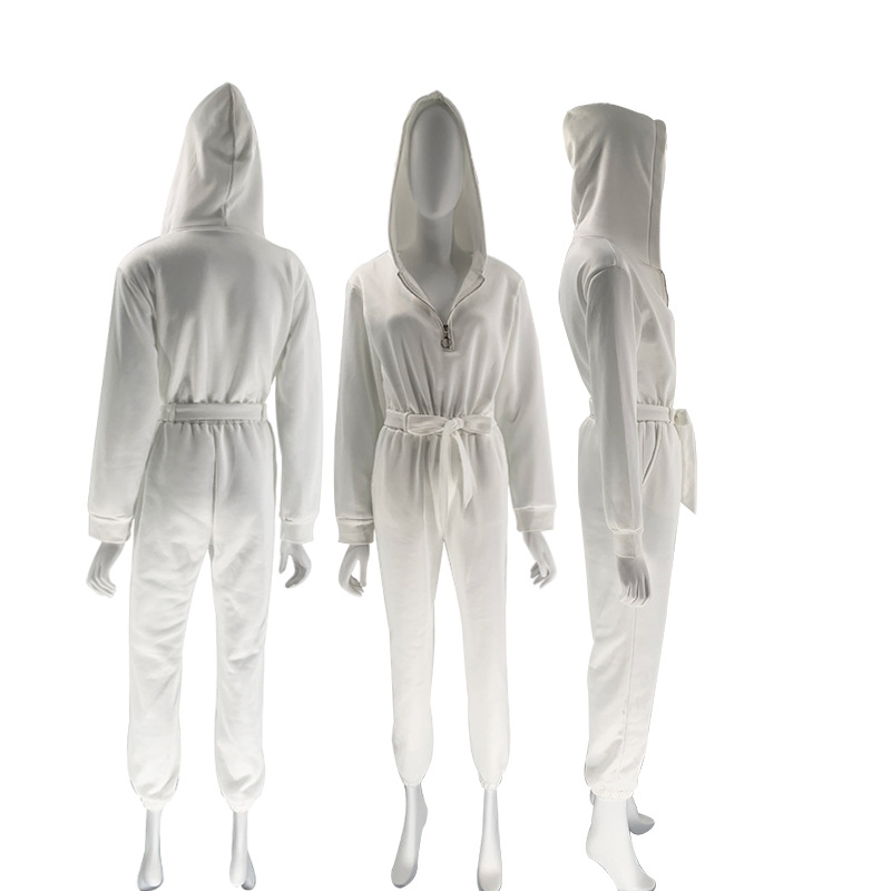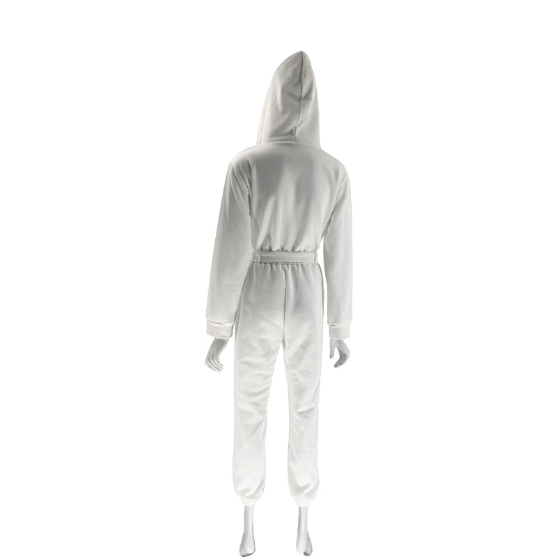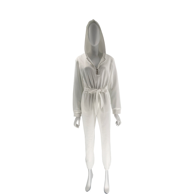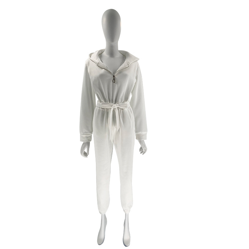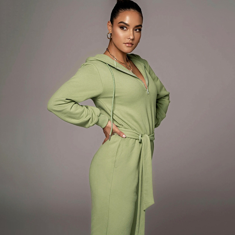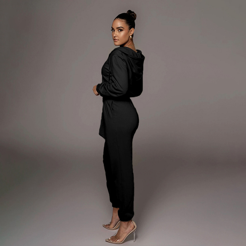 Autumn Winter Slim Fit Long Sleeve Solid Color Hooded Half Open Collar Urban Casual Women Jumpsuit