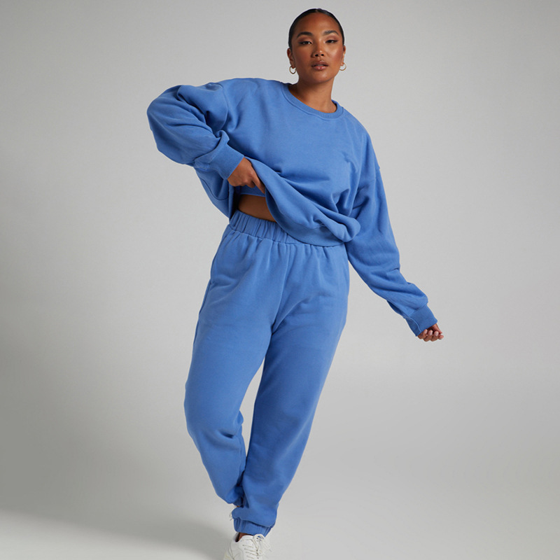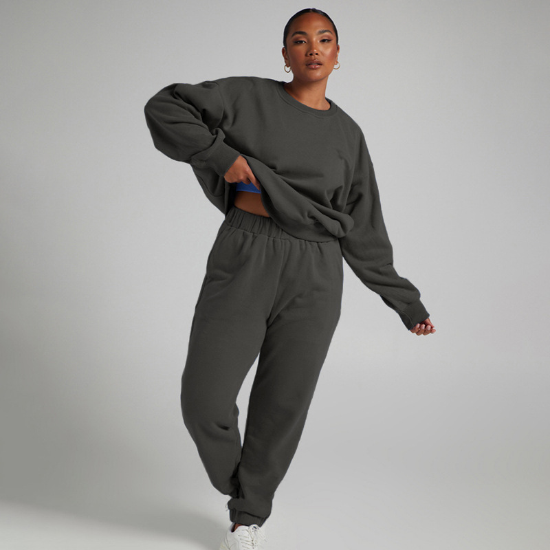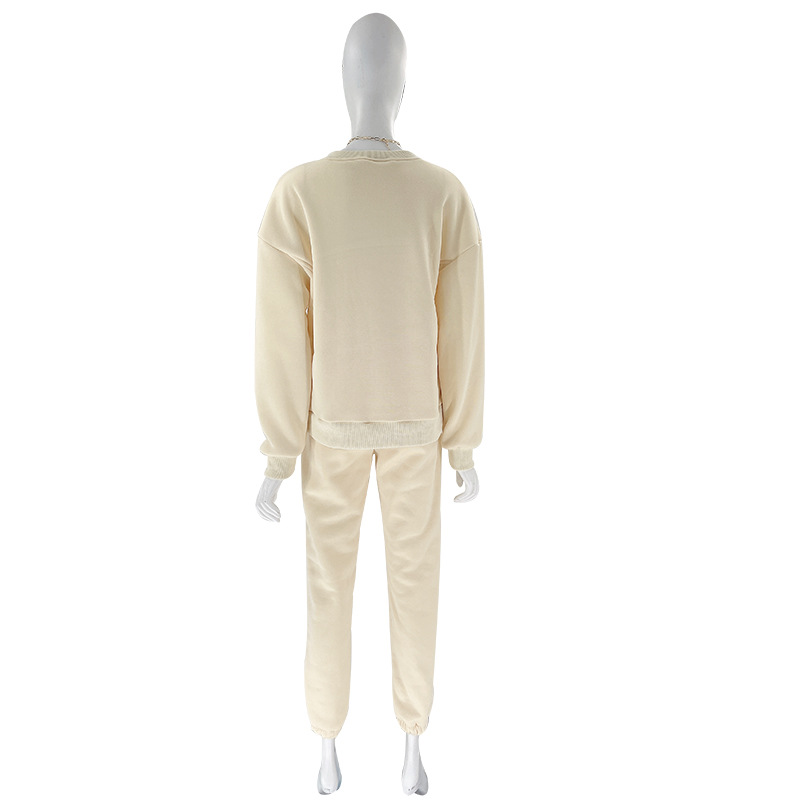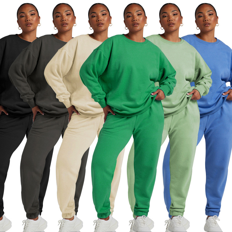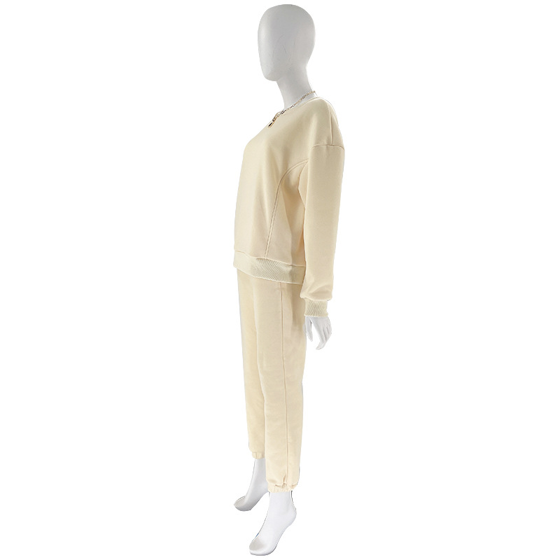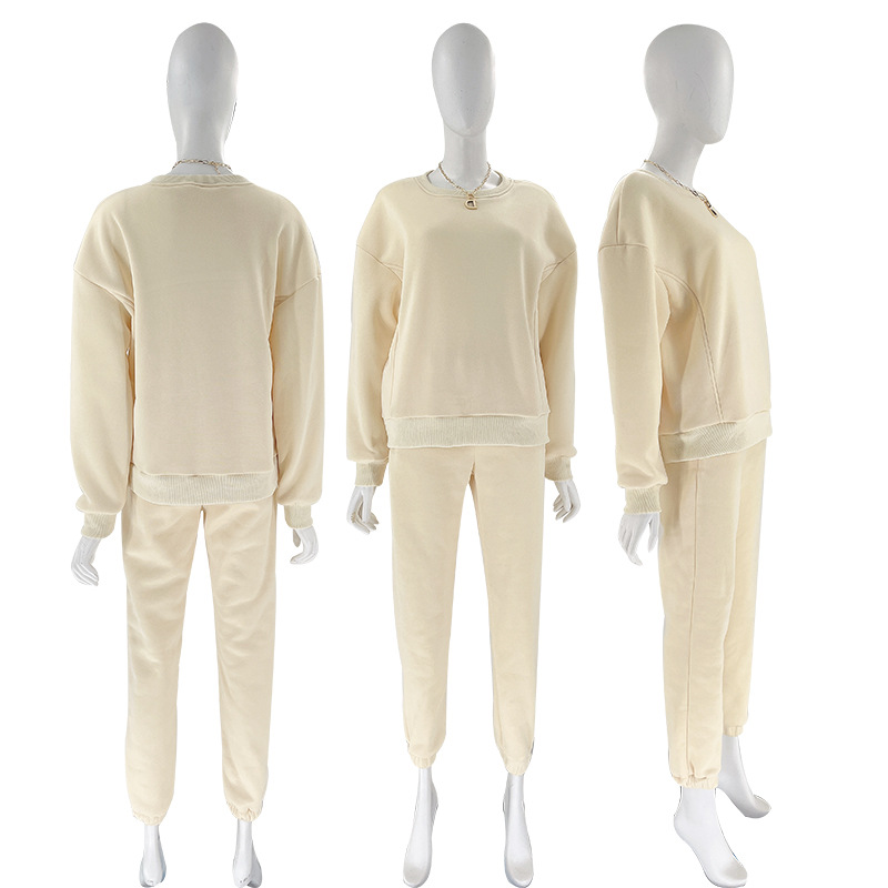 Autumn Winter Solid Color Pullover Long Sleeve Sweaters Women Clothing Two-Piece Set Casual Trousers Suit