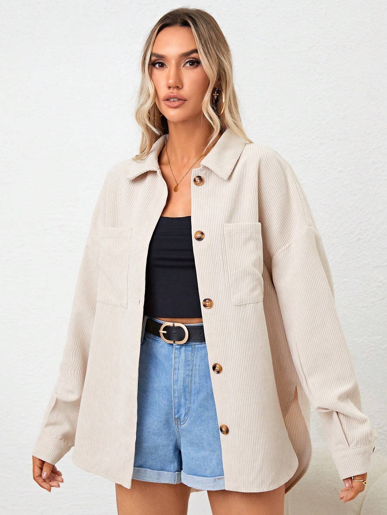 Autumn Winter Women Clothing Casual Loose Corduroy Long Sleeved Jacket Jacket