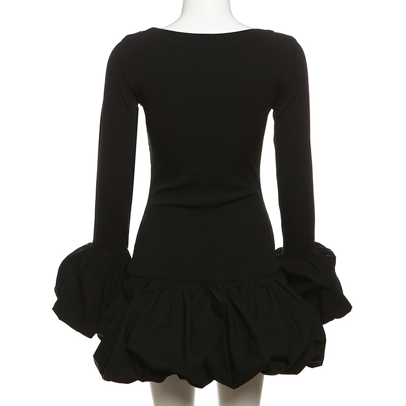 Autumn Winter Women Clothing Round Neck Flared Sleeves Slim Bud Dress