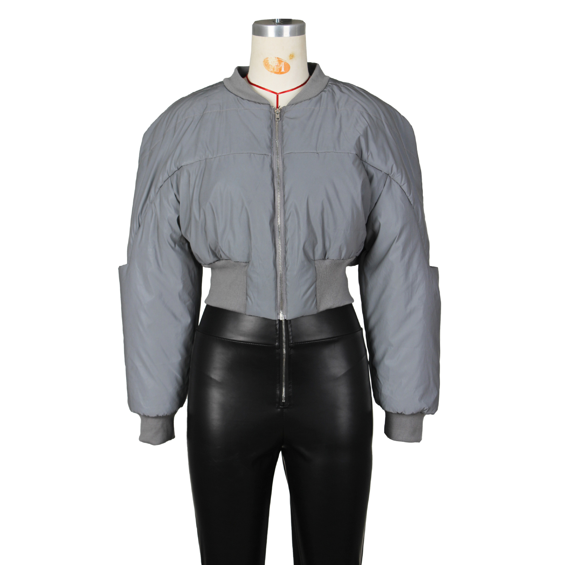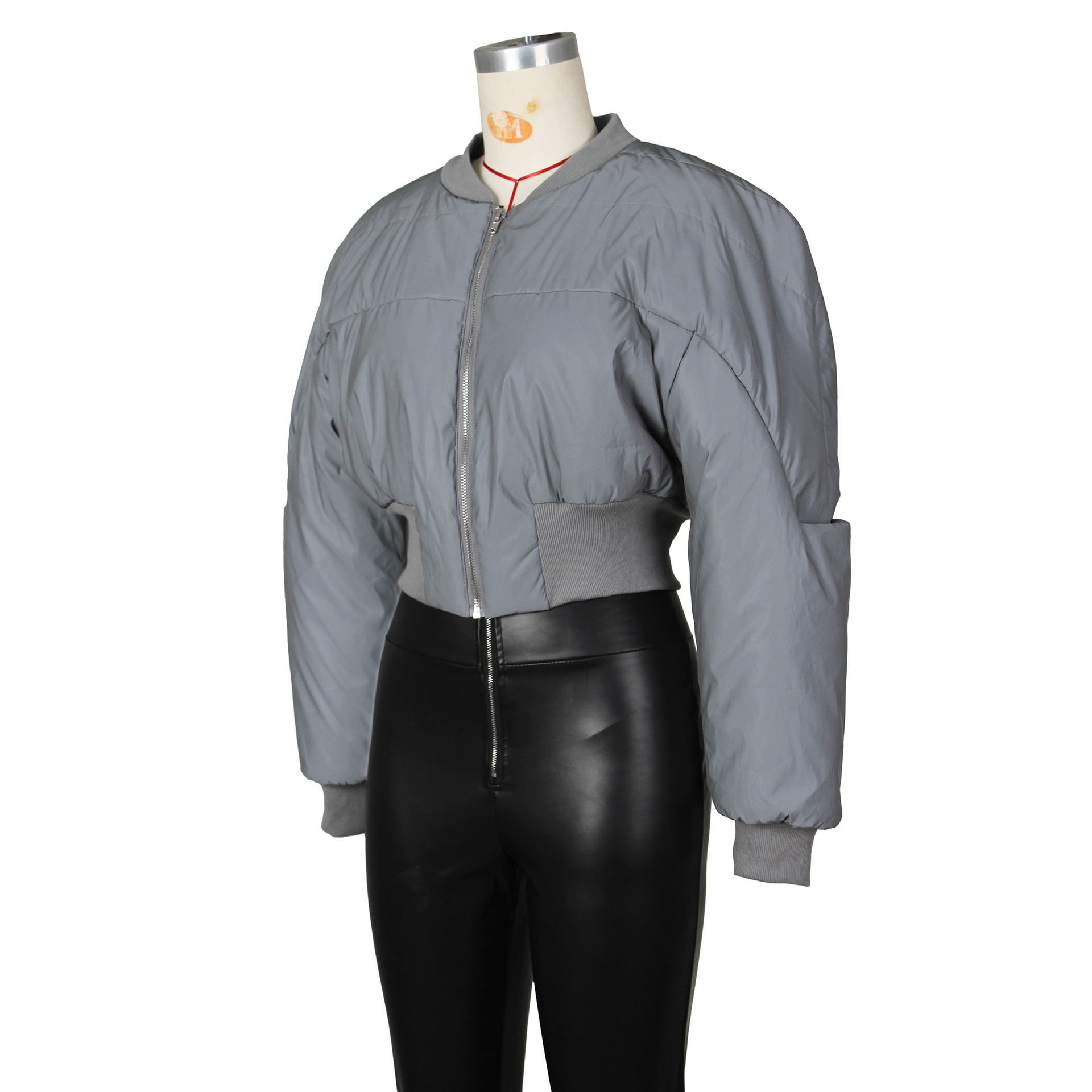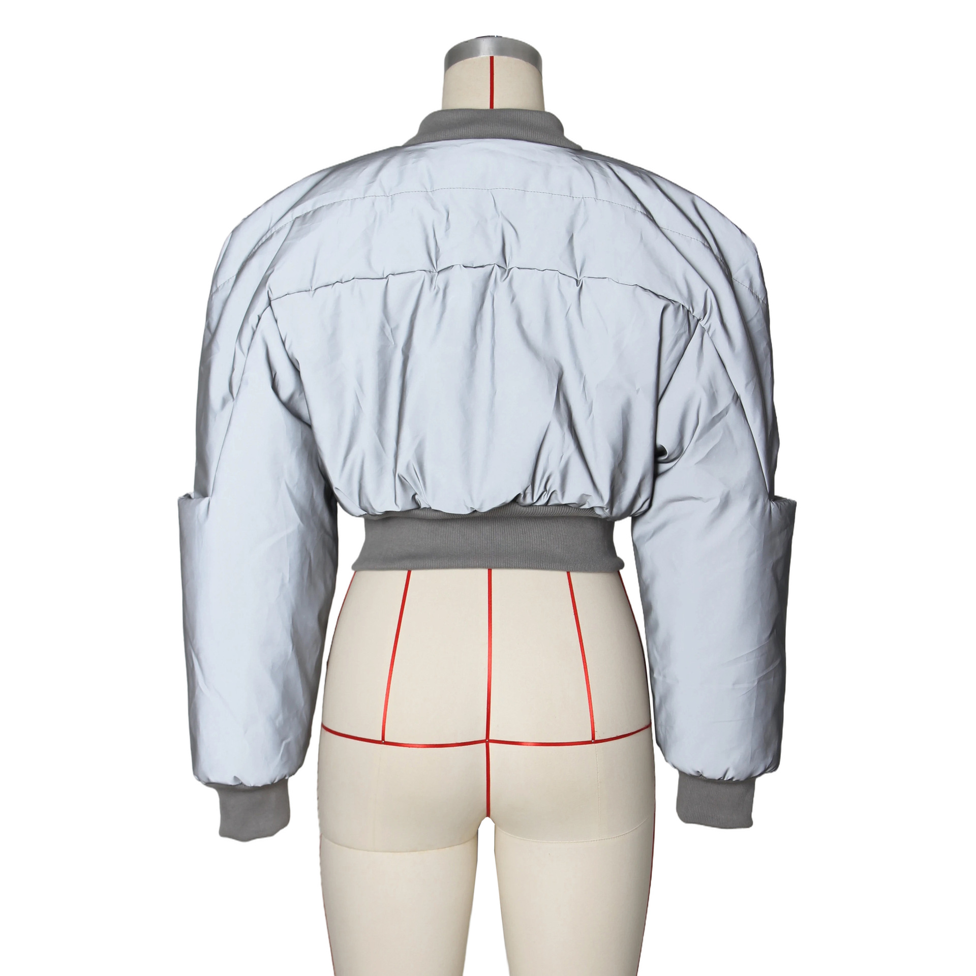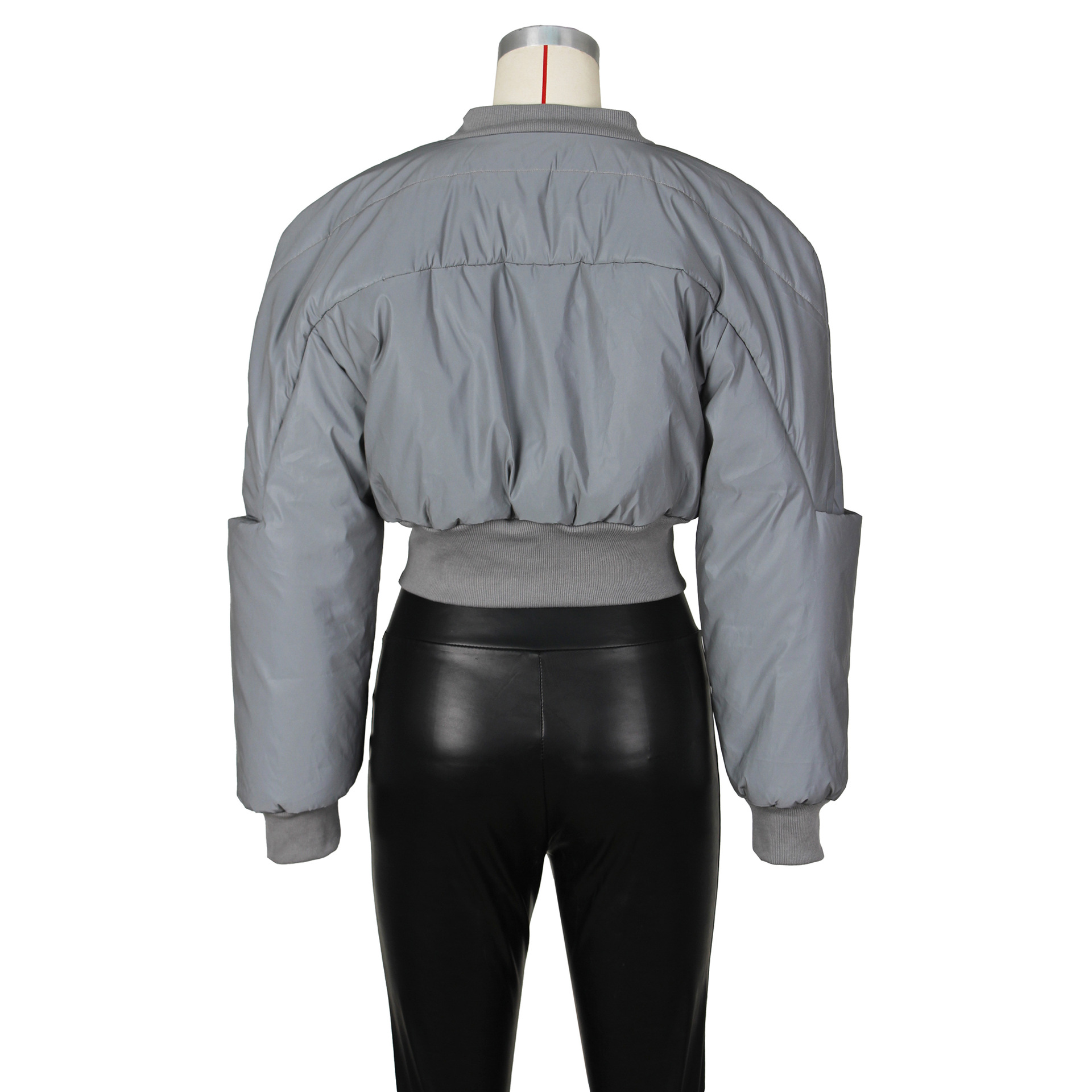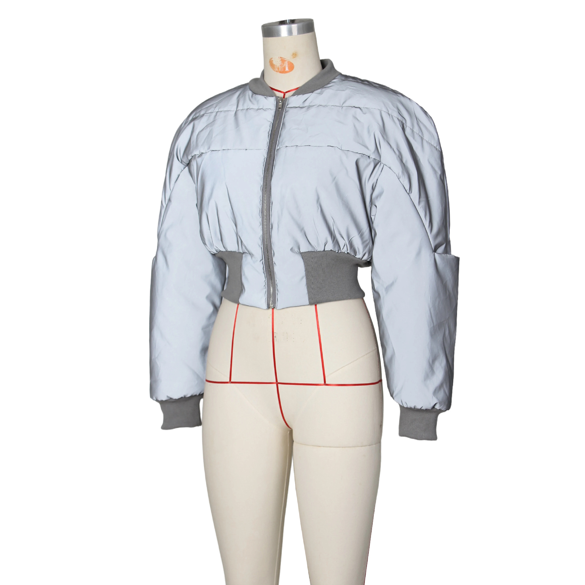 Autumn Winter Women Clothing Round Neck Long Sleeve Zipper Waist Warm Casual Reflective Cotton Padded Coat