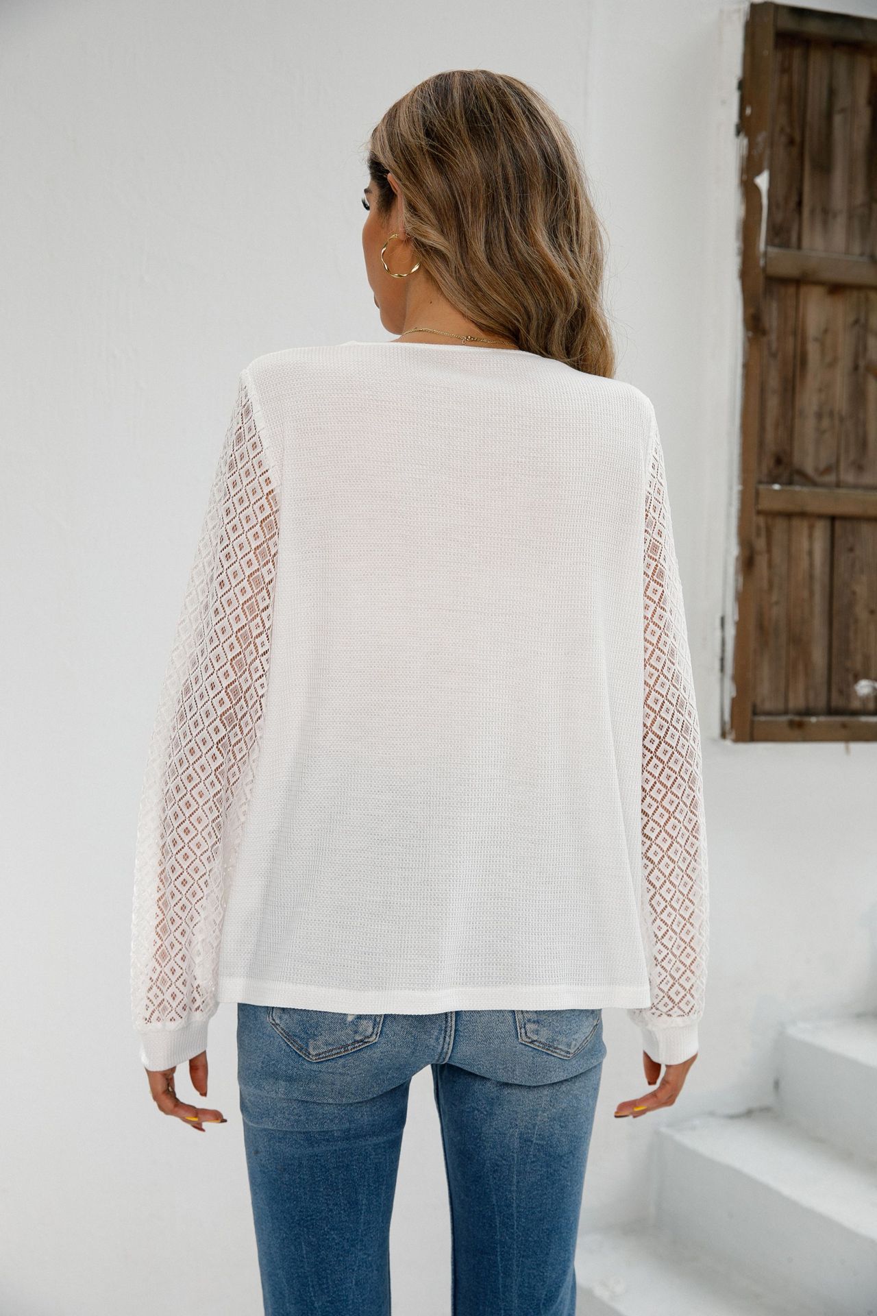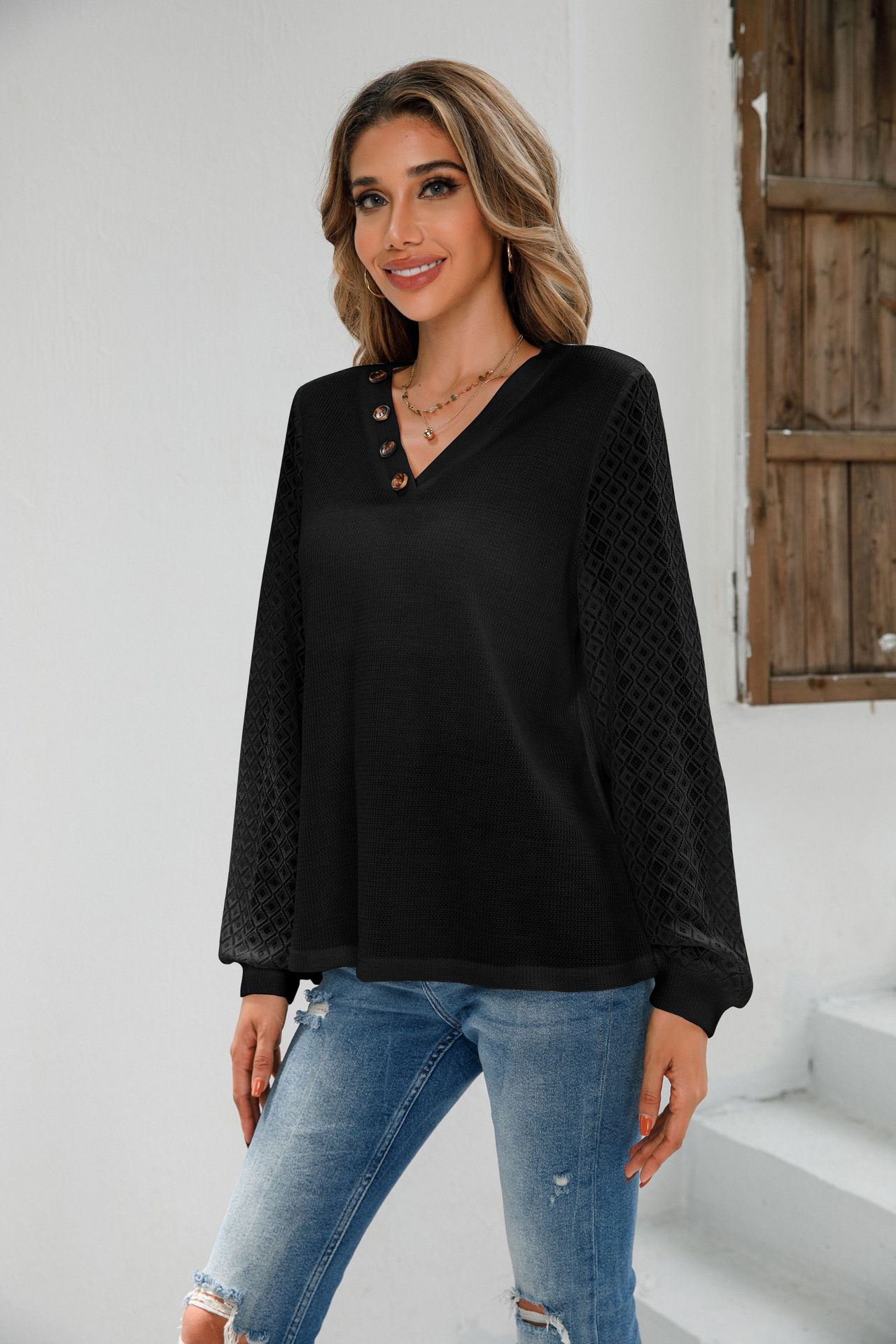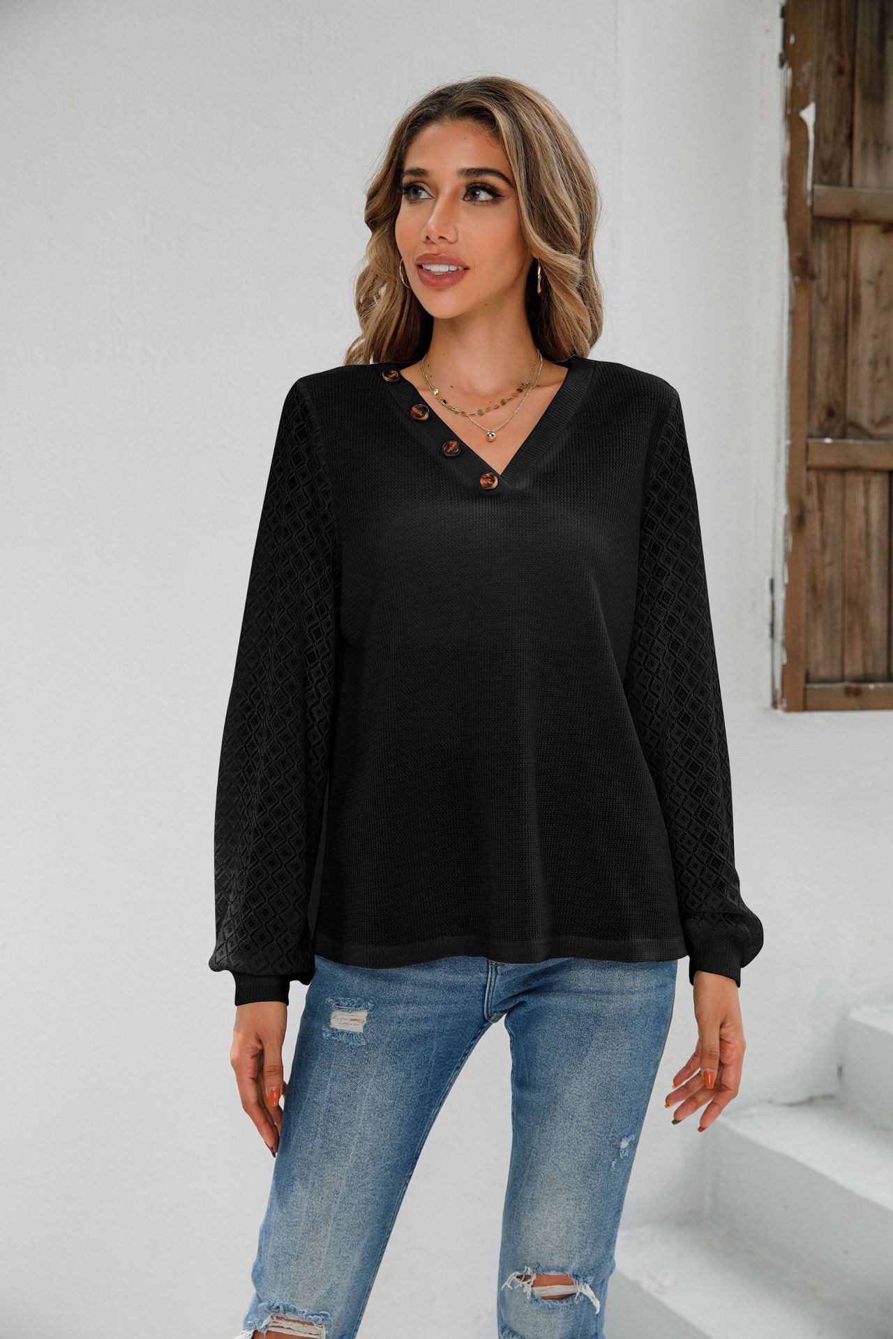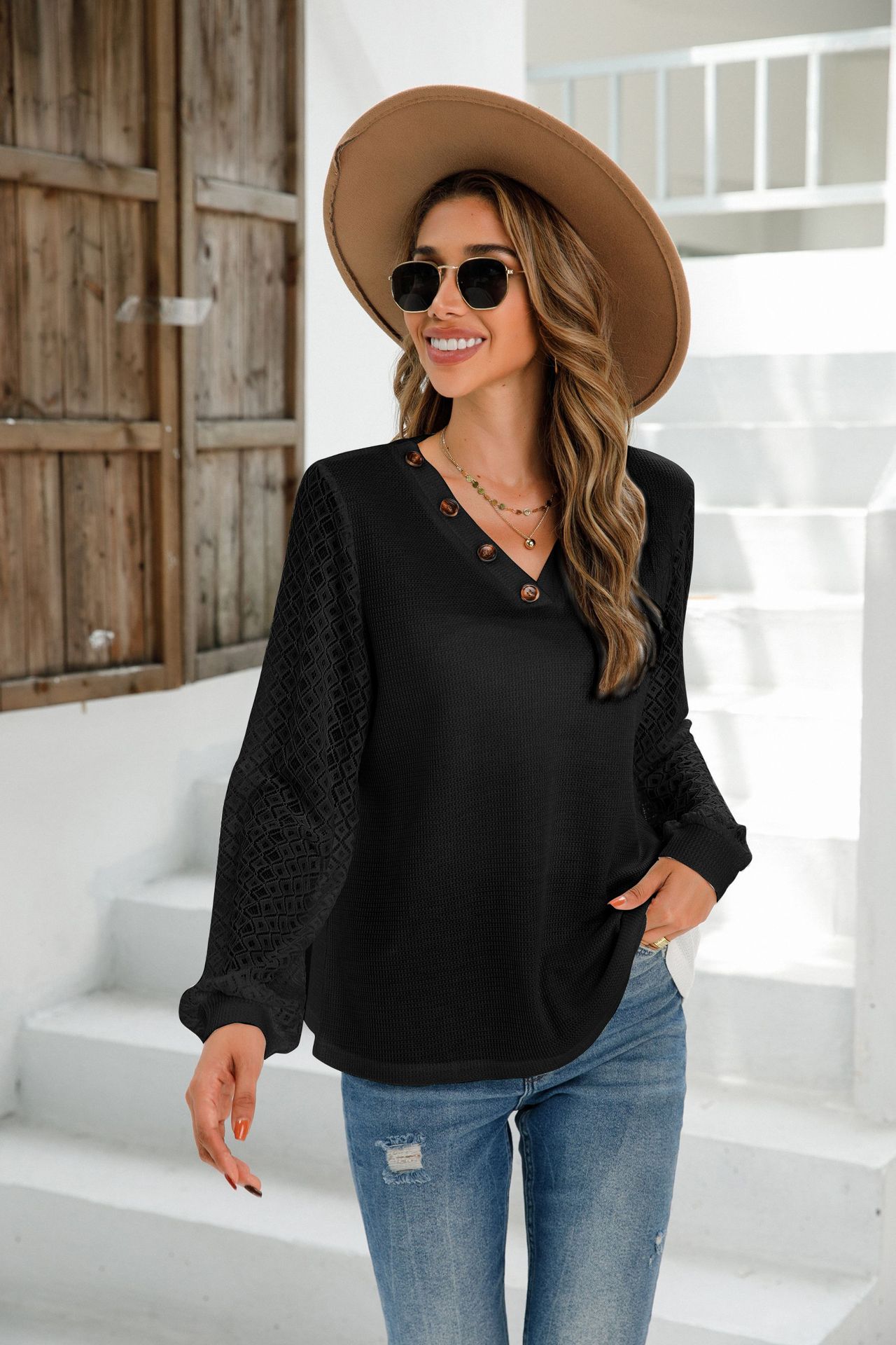 Autumn Winter Women Clothing V neck Long Sleeve Button T shirt Lace Top
