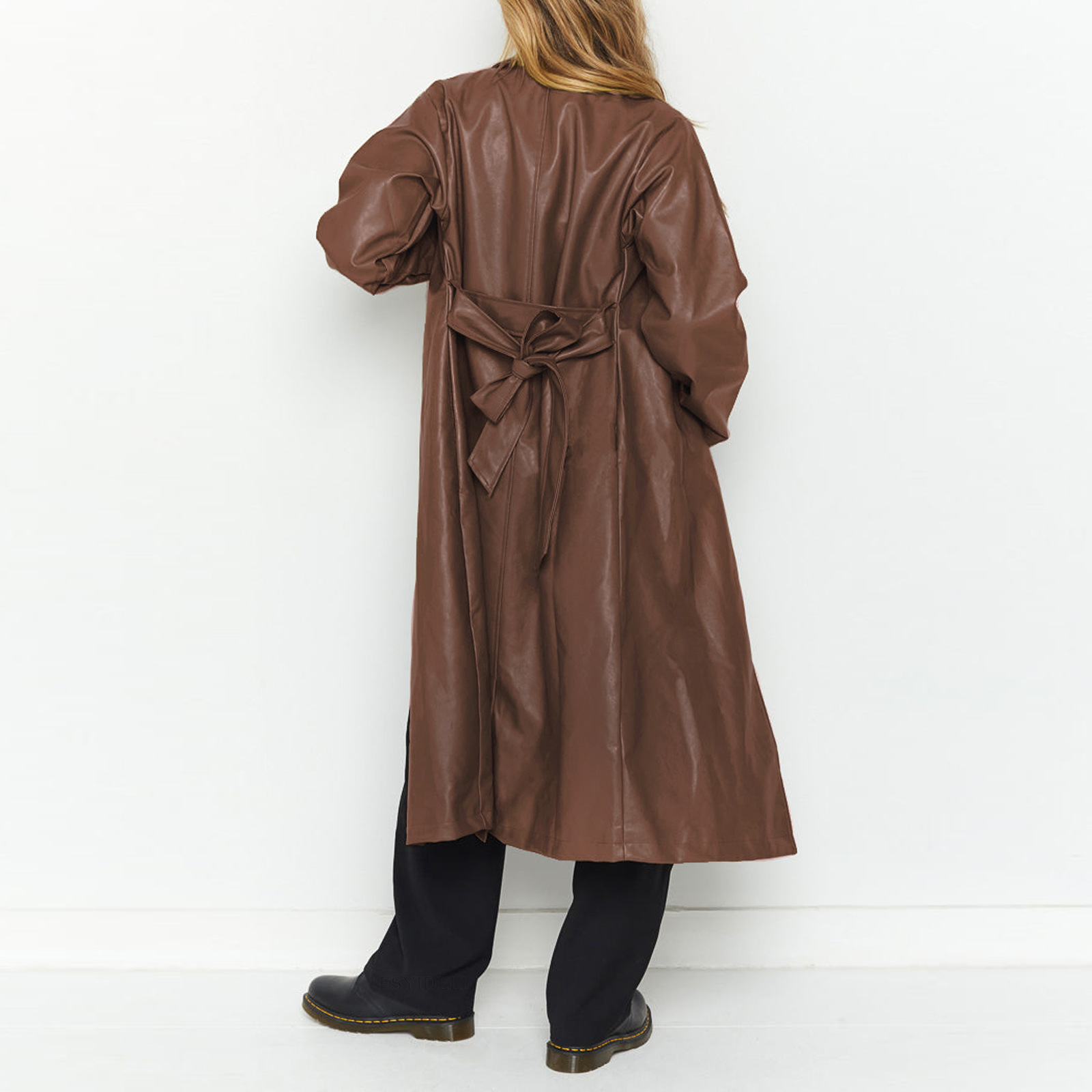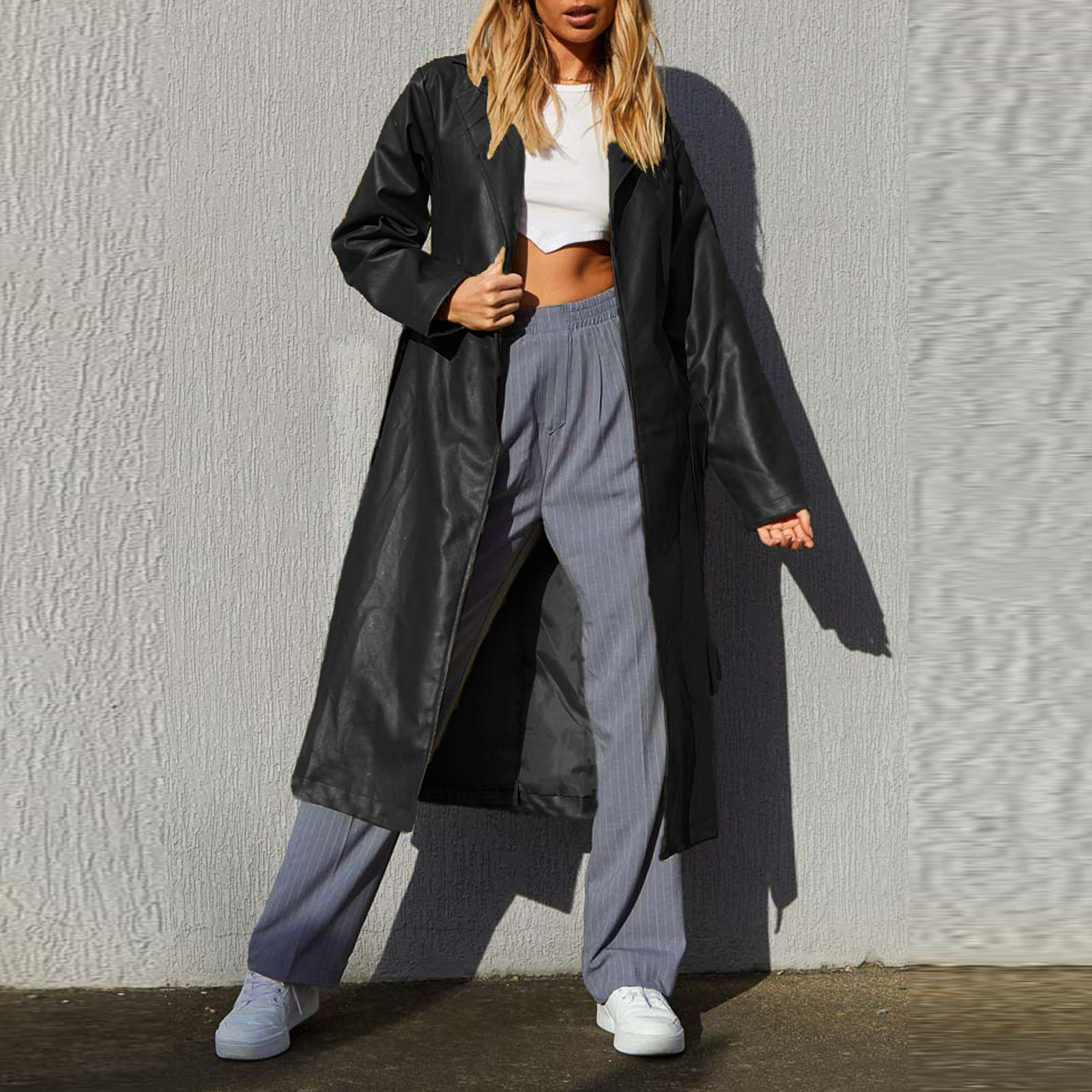 Autumn Winter Women Long Leather Coat Popular Casual Trench Coat Coat Women