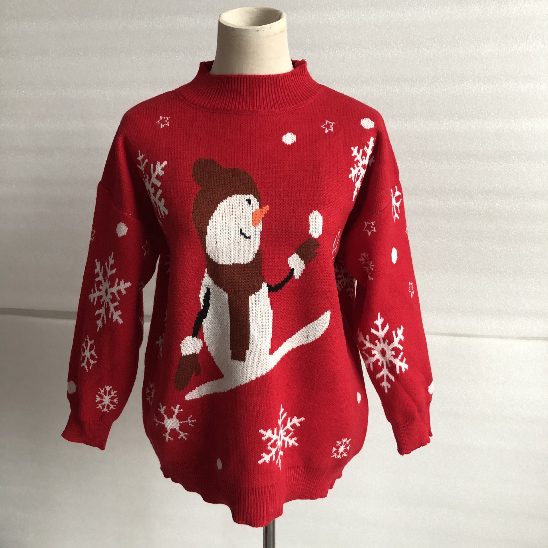 Autumn Winter Year Snowman Snowflake Half High Collar Long Sleeves Pullover Christmas Sweater for Women