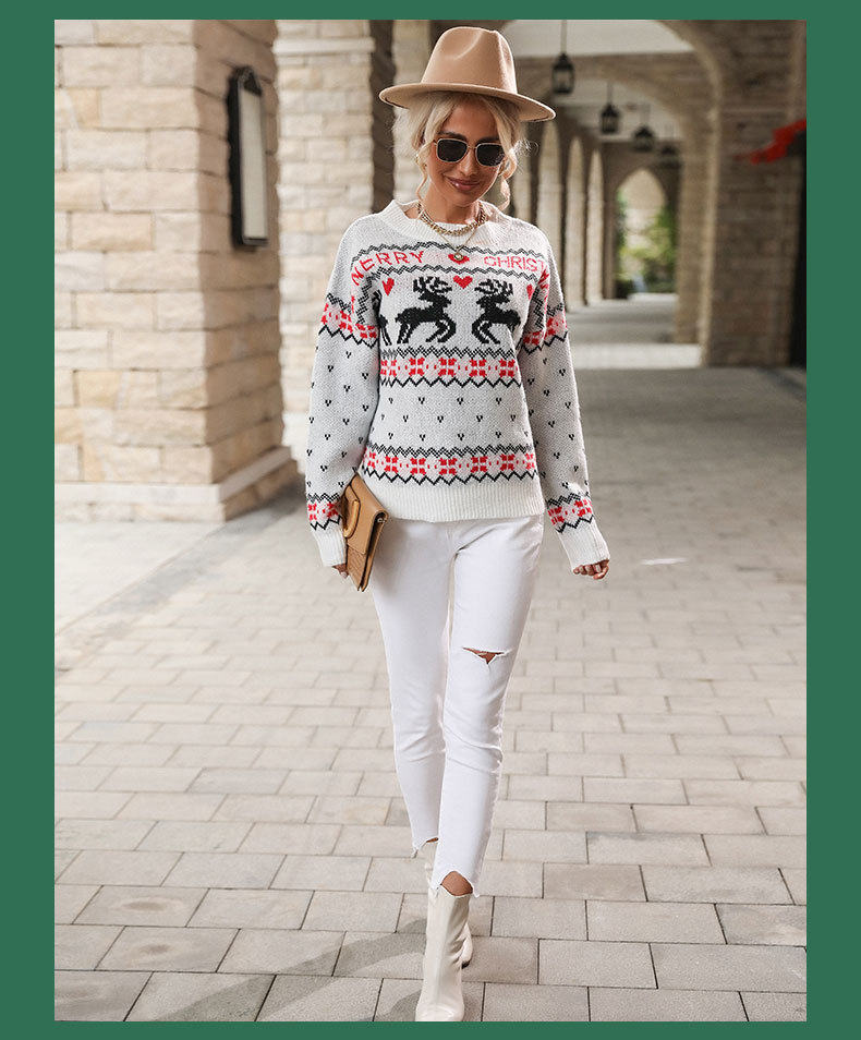 Autumn Women Clothing Knitted Pullover Round Neck Christmas Sweater