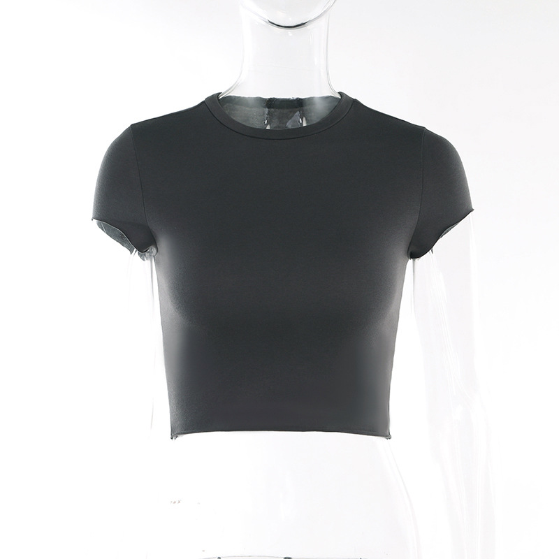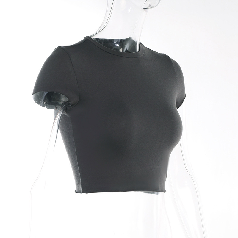 Basic round Neck Shoulder Short Sleeve T shirt Women Summer All Matching Casual Short Cropped Top