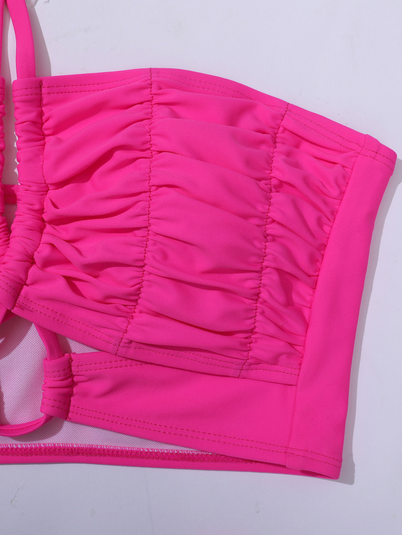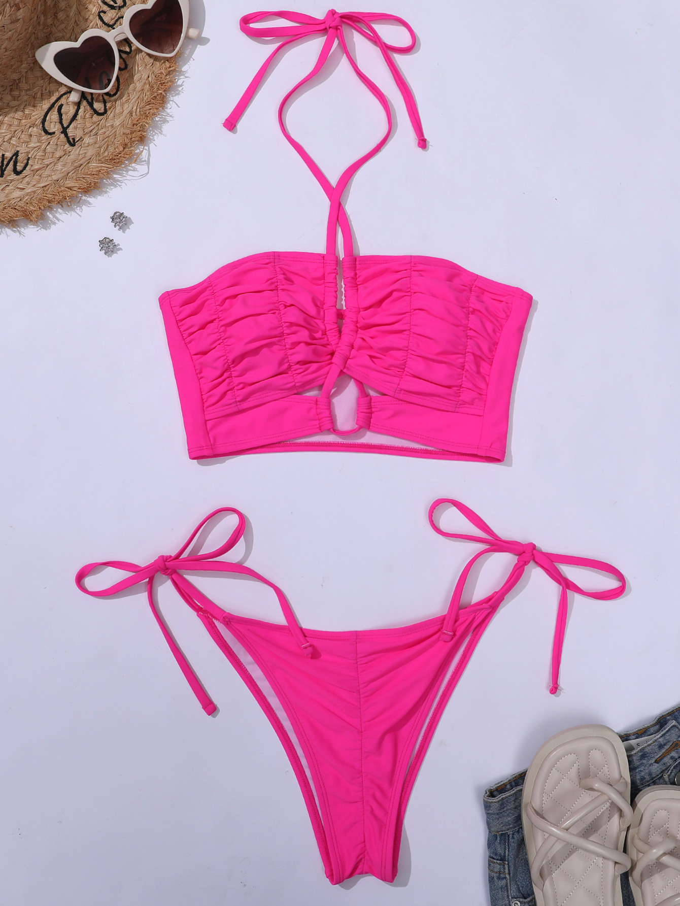 Bikini Wrinkle Lace up Sexy Bikini Split Swimsuit Swimwear Women