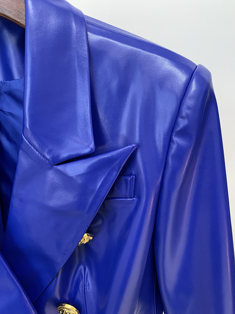 Breasted Lion Metal Buckle Slim Leather Jacket Blazer