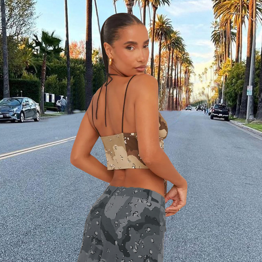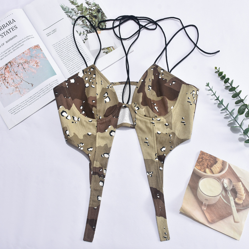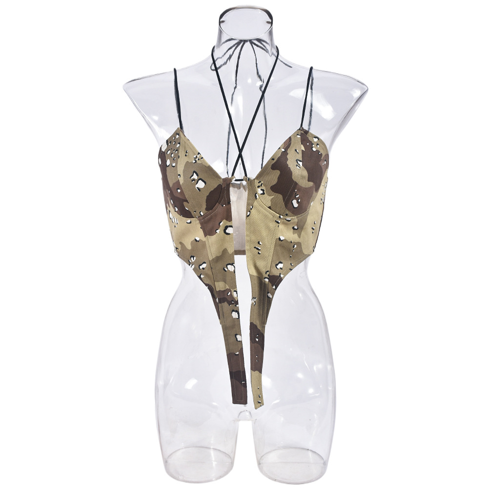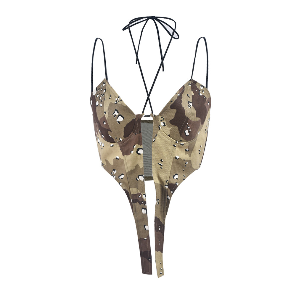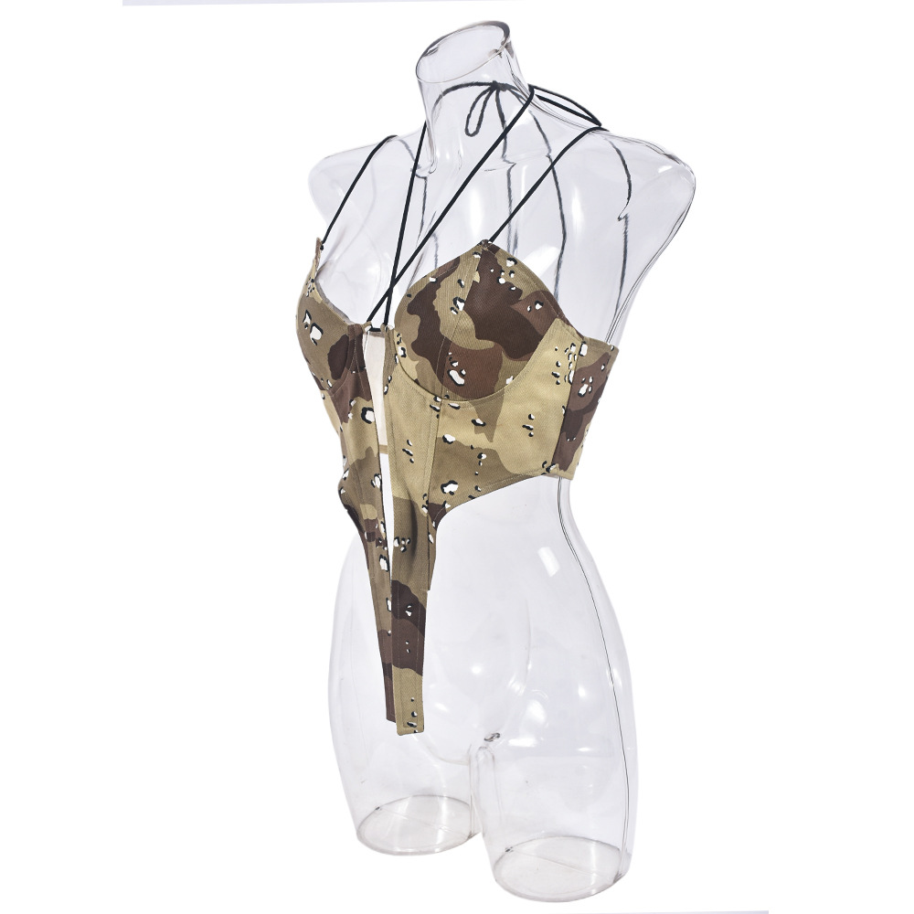 Camouflage Sexy Sexy Corset Halter Spaghetti Straps Outerwear Top