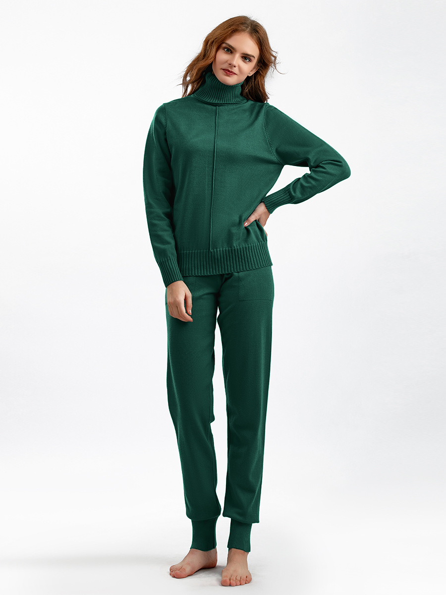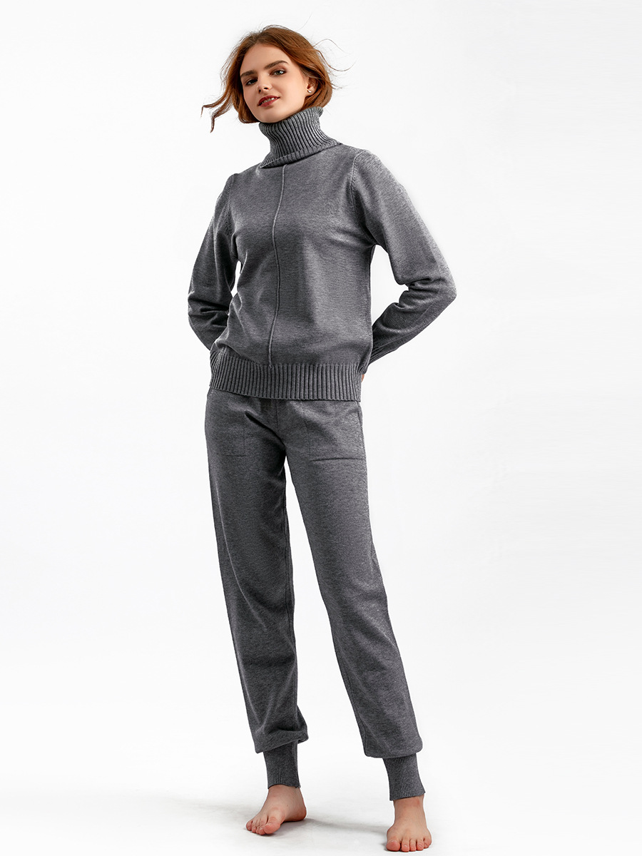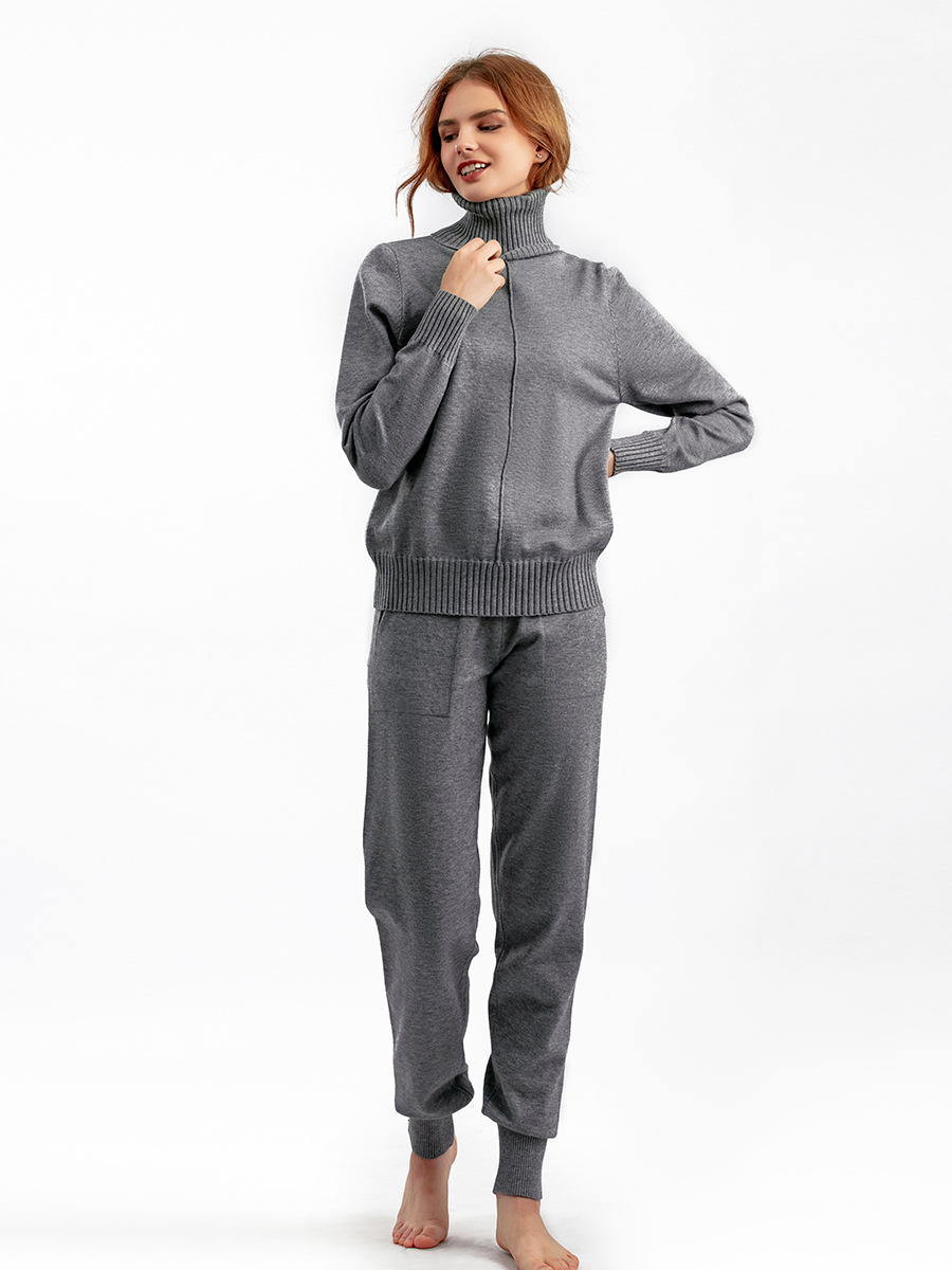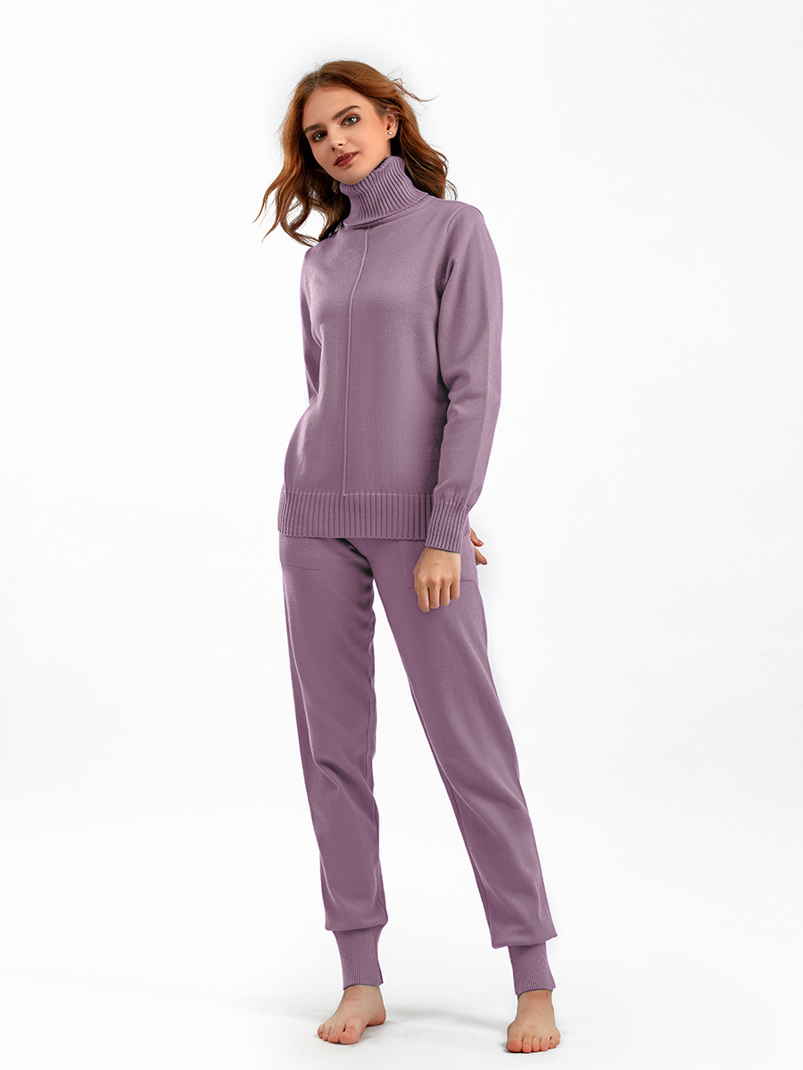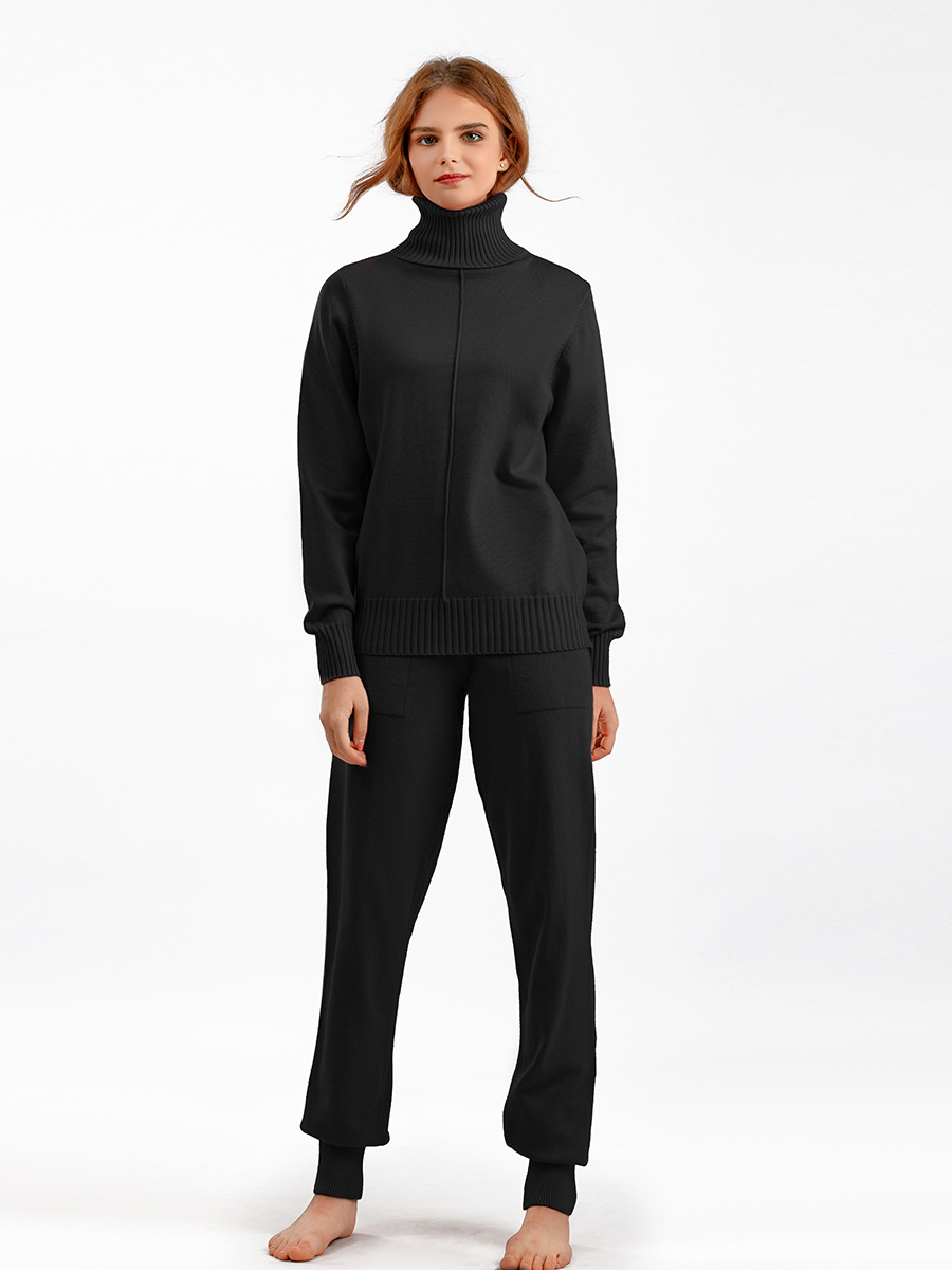 Casual Set Autumn Winter Turtleneck Solid Color Sweaters Two Piece Set