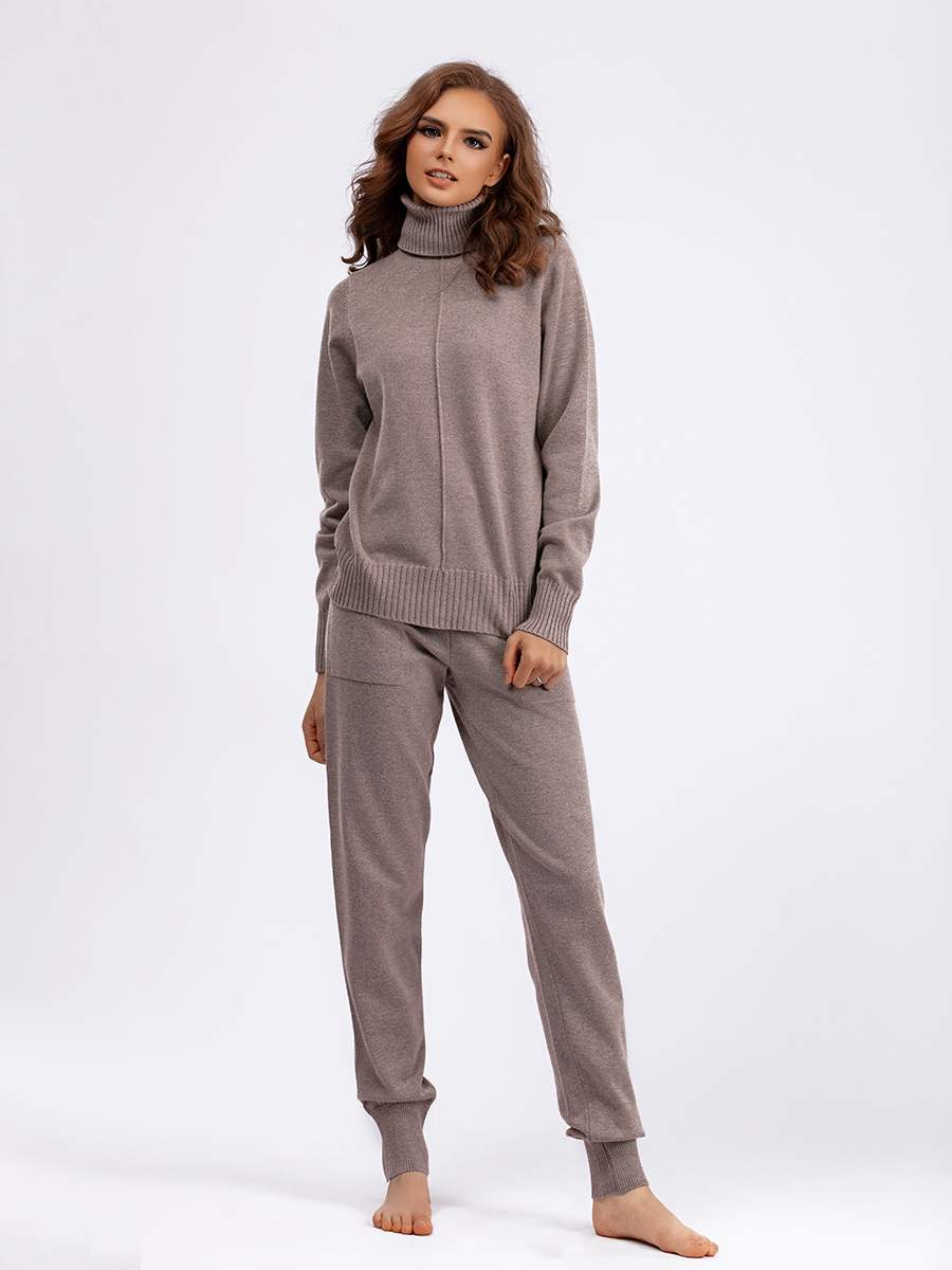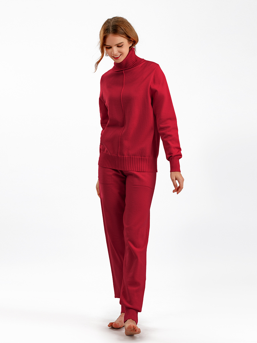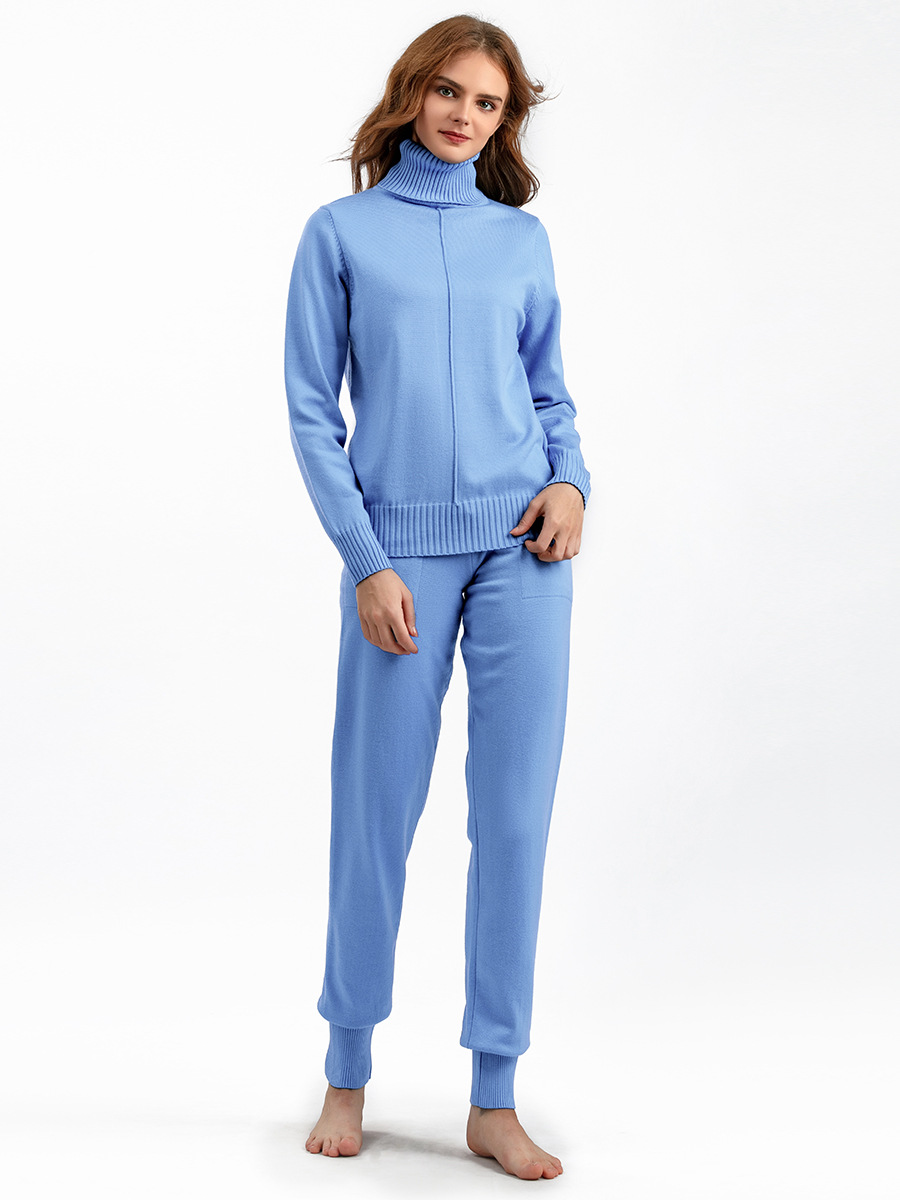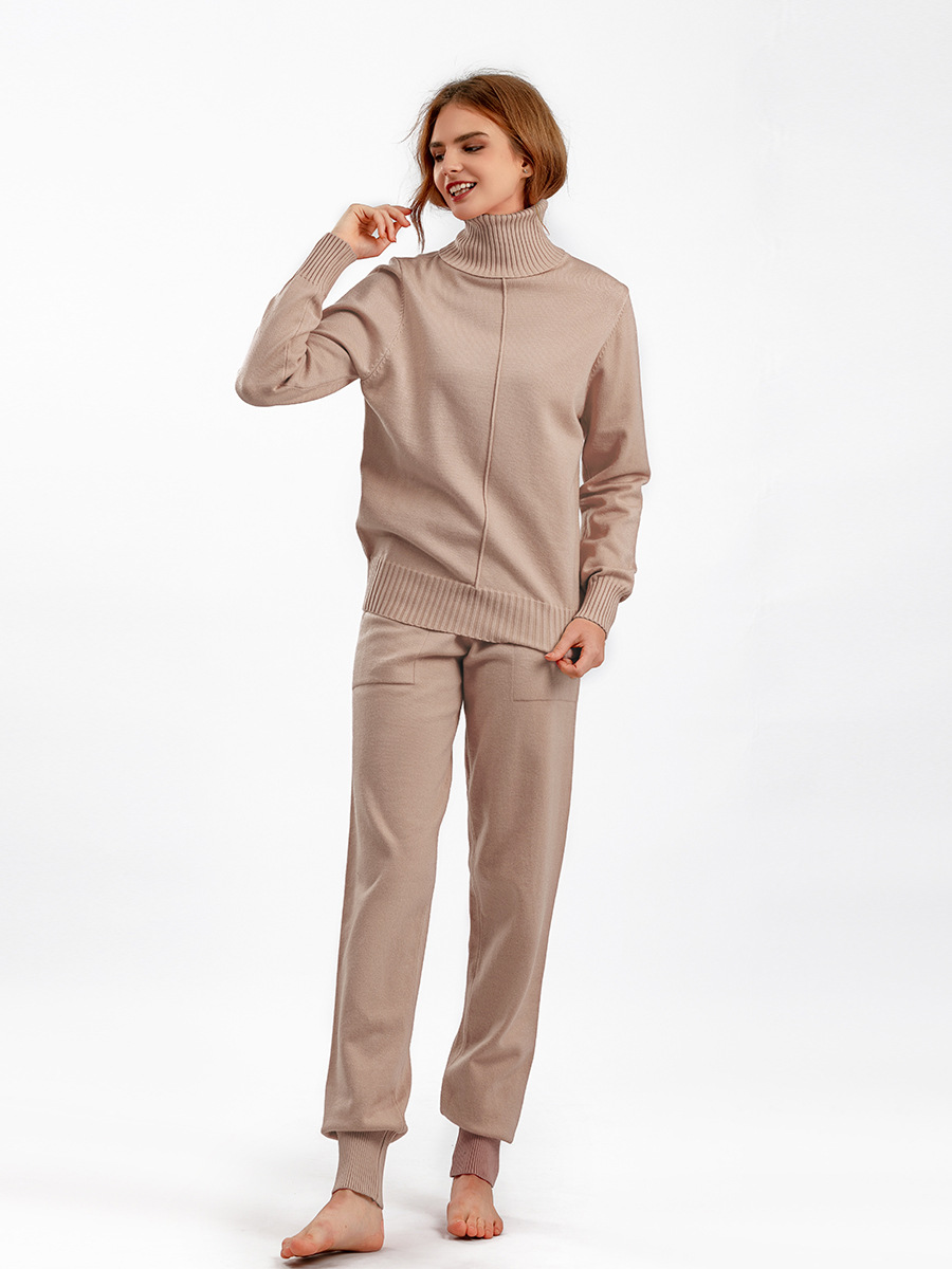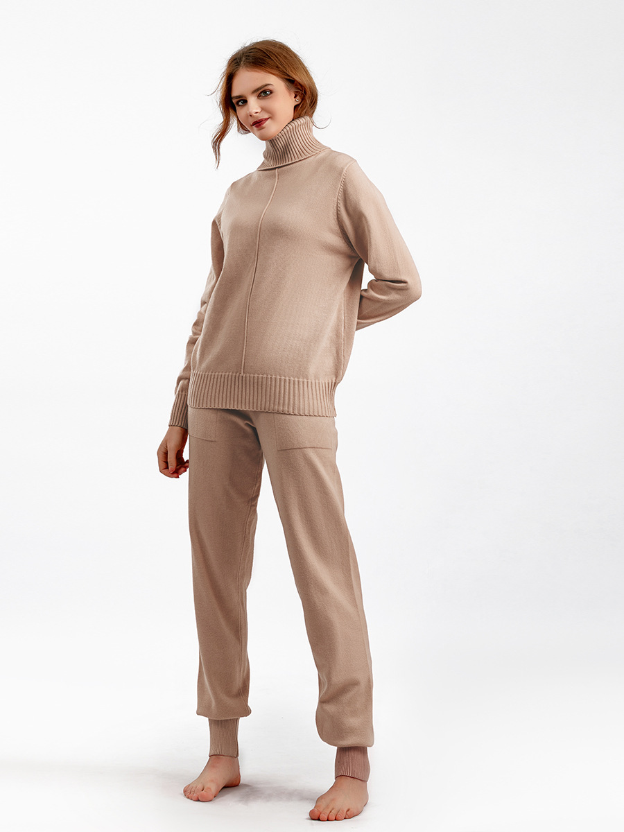 Casual Set Autumn Winter Turtleneck Solid Color Sweaters Two Piece Set