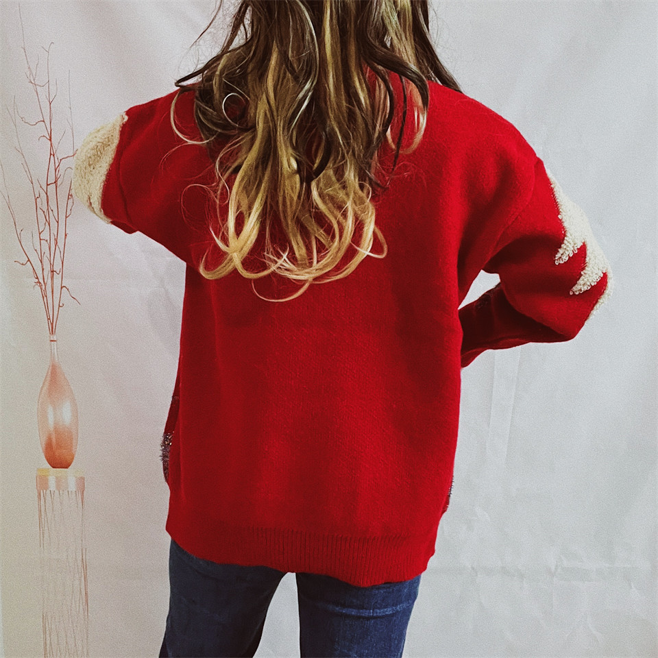 Christmas Tree Jacquard Gold Thread Knitted Round Neck Long Sleeve Loose Pullover Thickened Christmas Sweater for Women