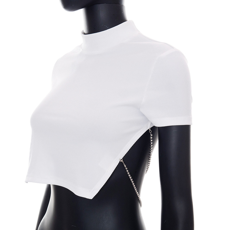 Clothing Summer Women Clothing Y2K Sexy Short Sleeve Bare Back Chain Top