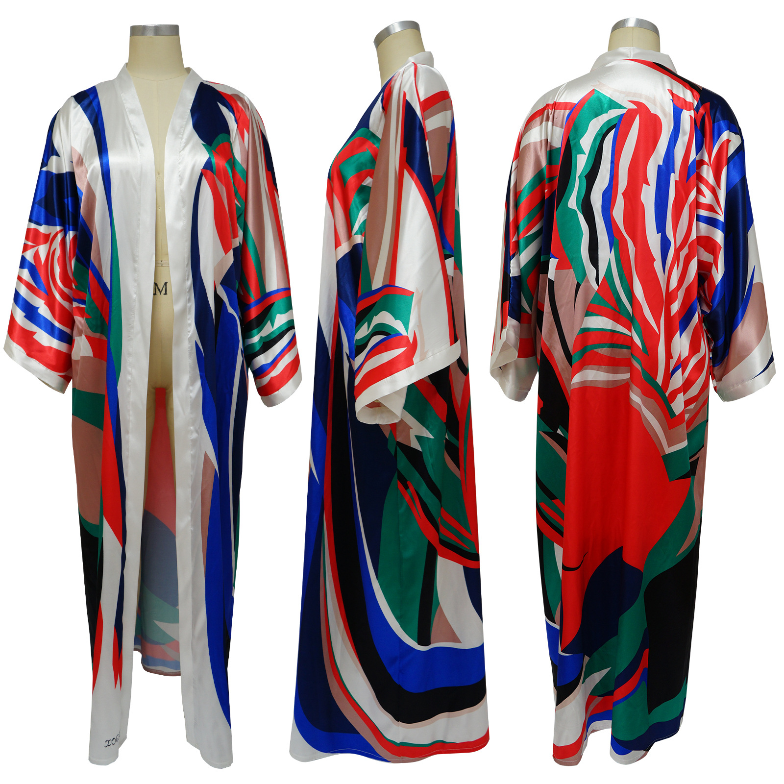 Coat Artificial Silk Multi Print Casual Trench Coat