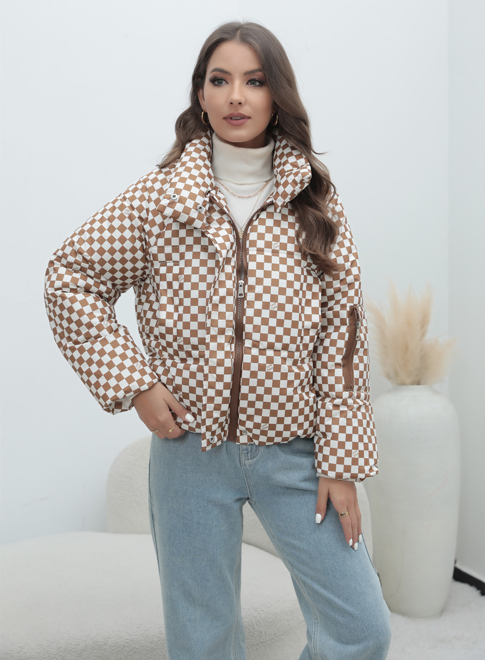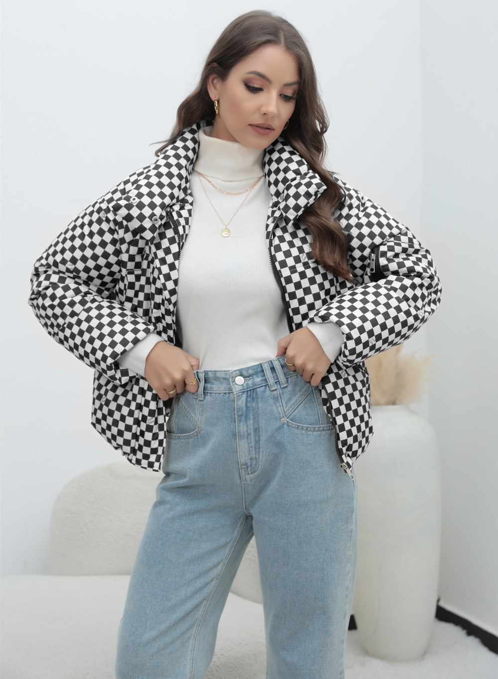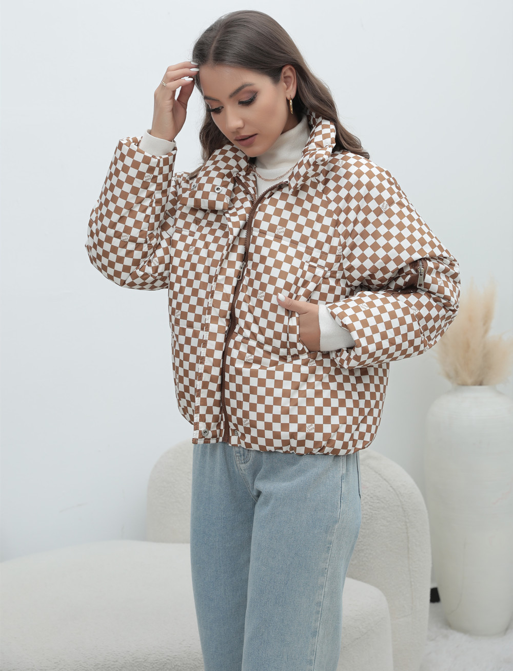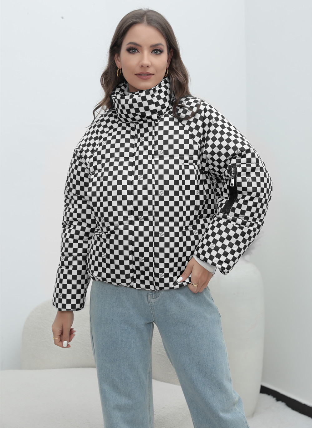 Coat Plaid Women Coat Bread Coat Warm down Cotton Jacket Cotton Padded Jacket Women Cotton Padded Clothing