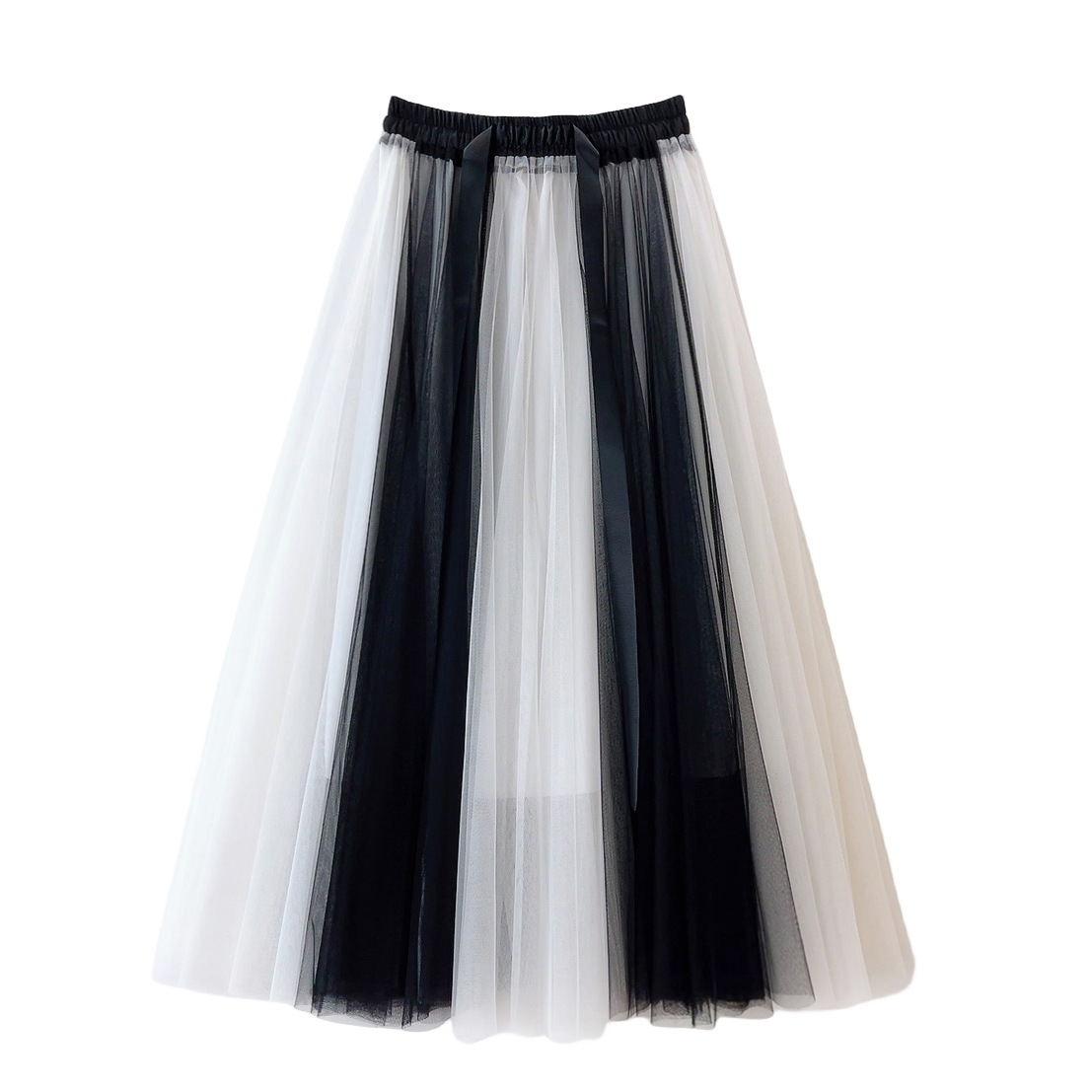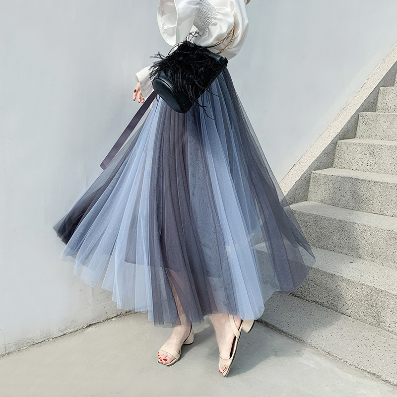 Contrast Color Yarn Skirt Korean Large Swing Tulle Skirt Gentle Korean Dress Four Seasons Skirt