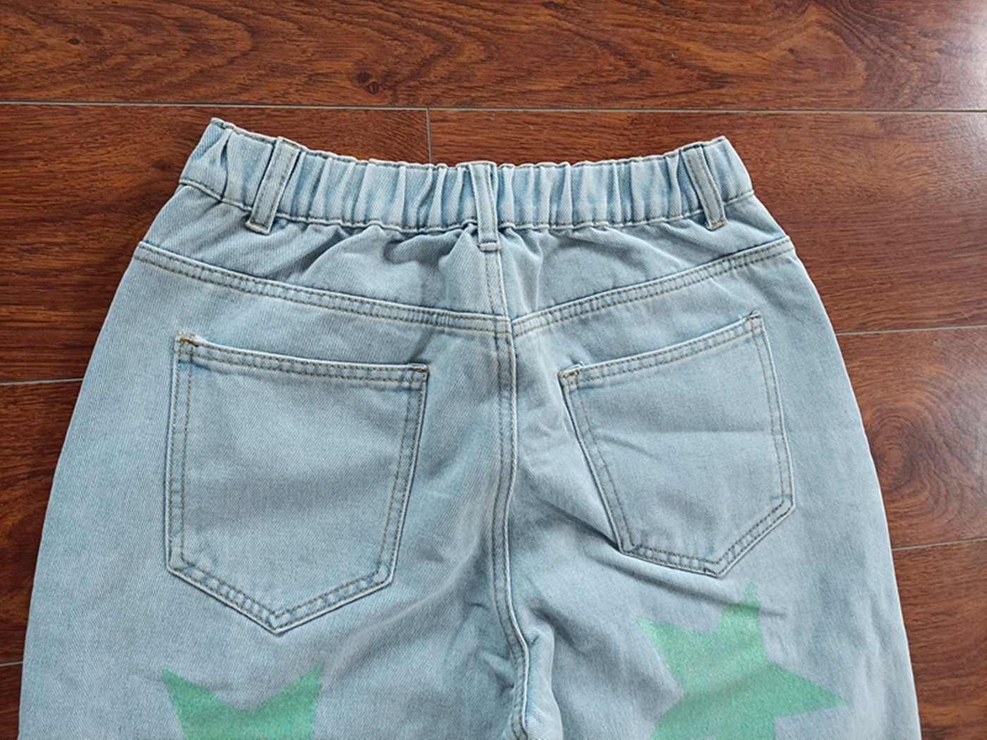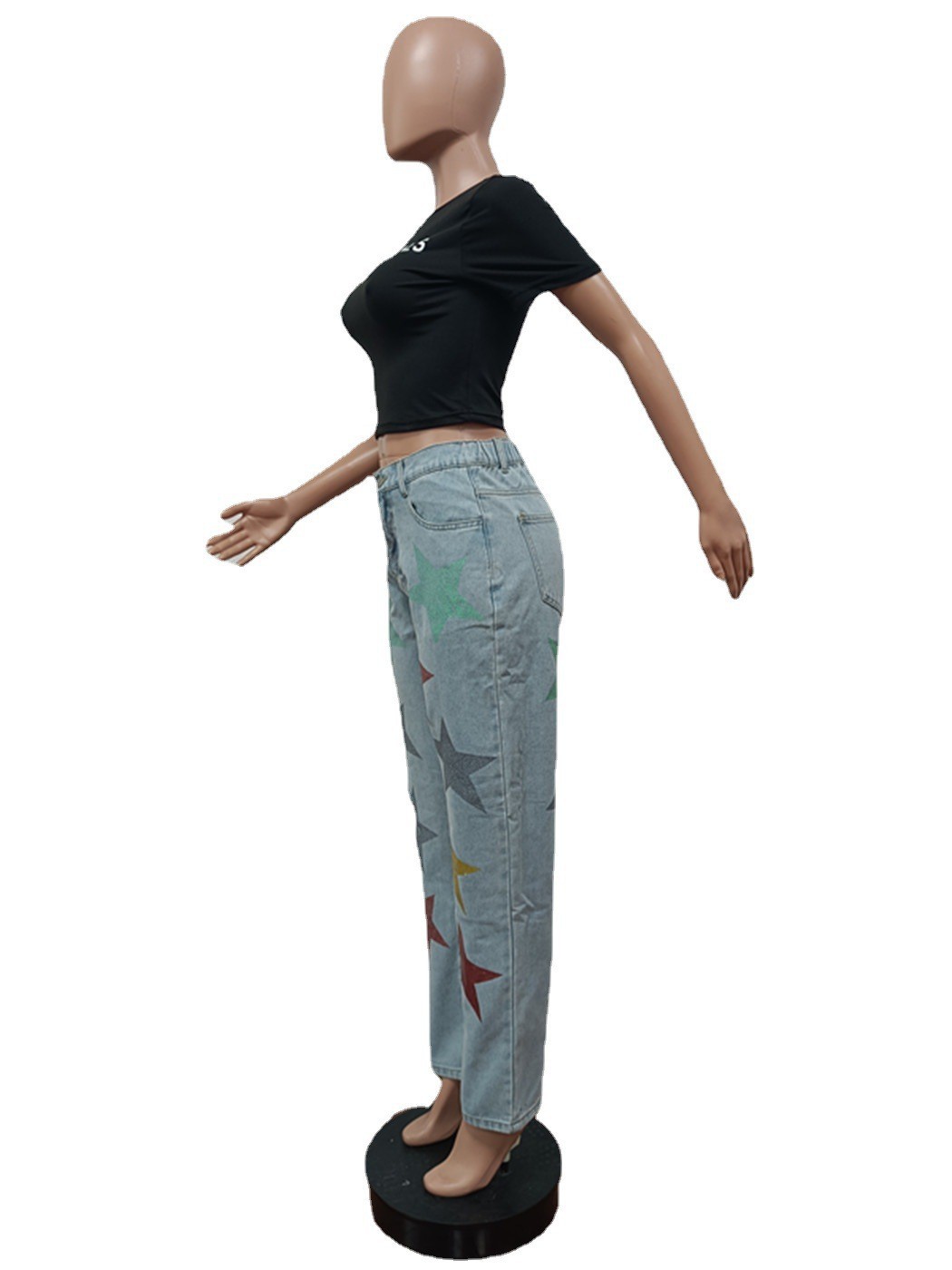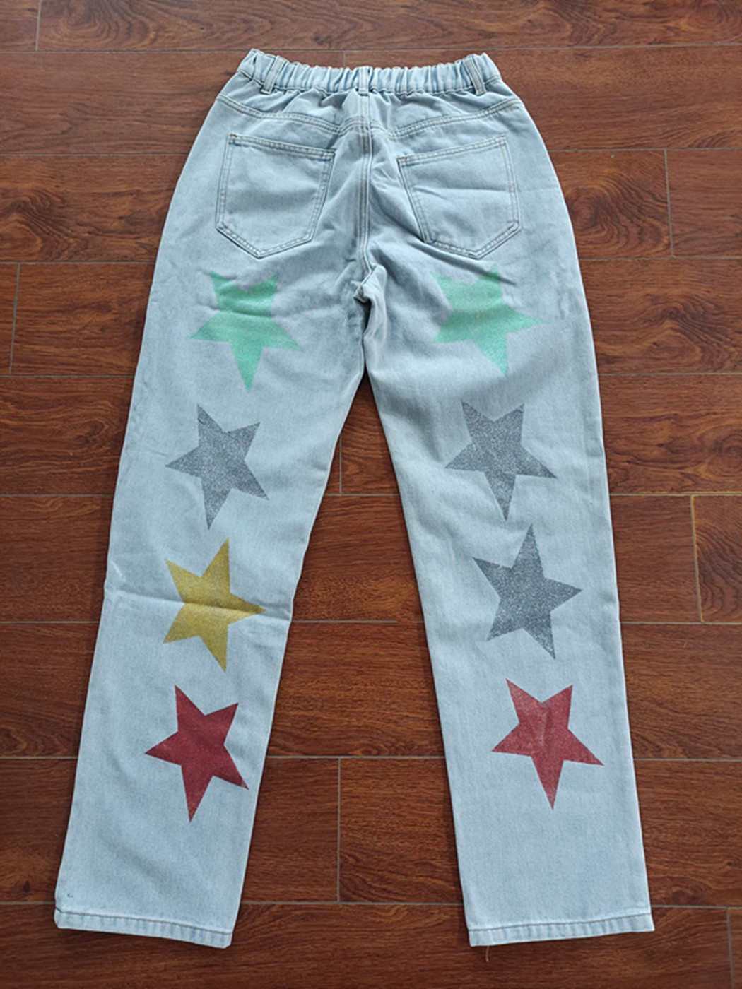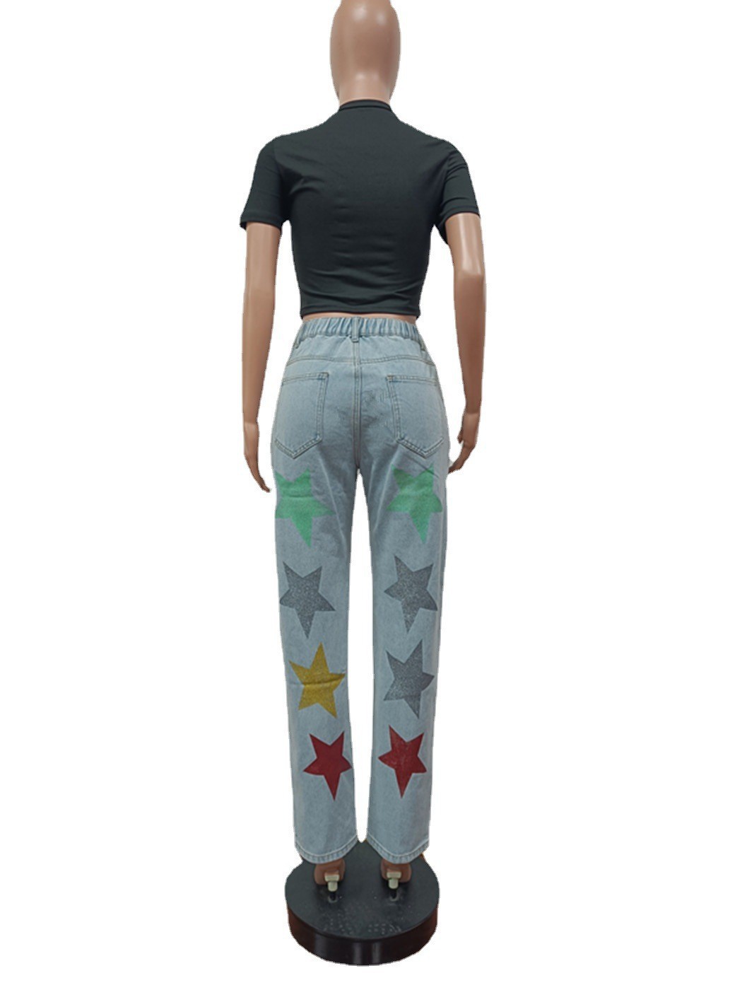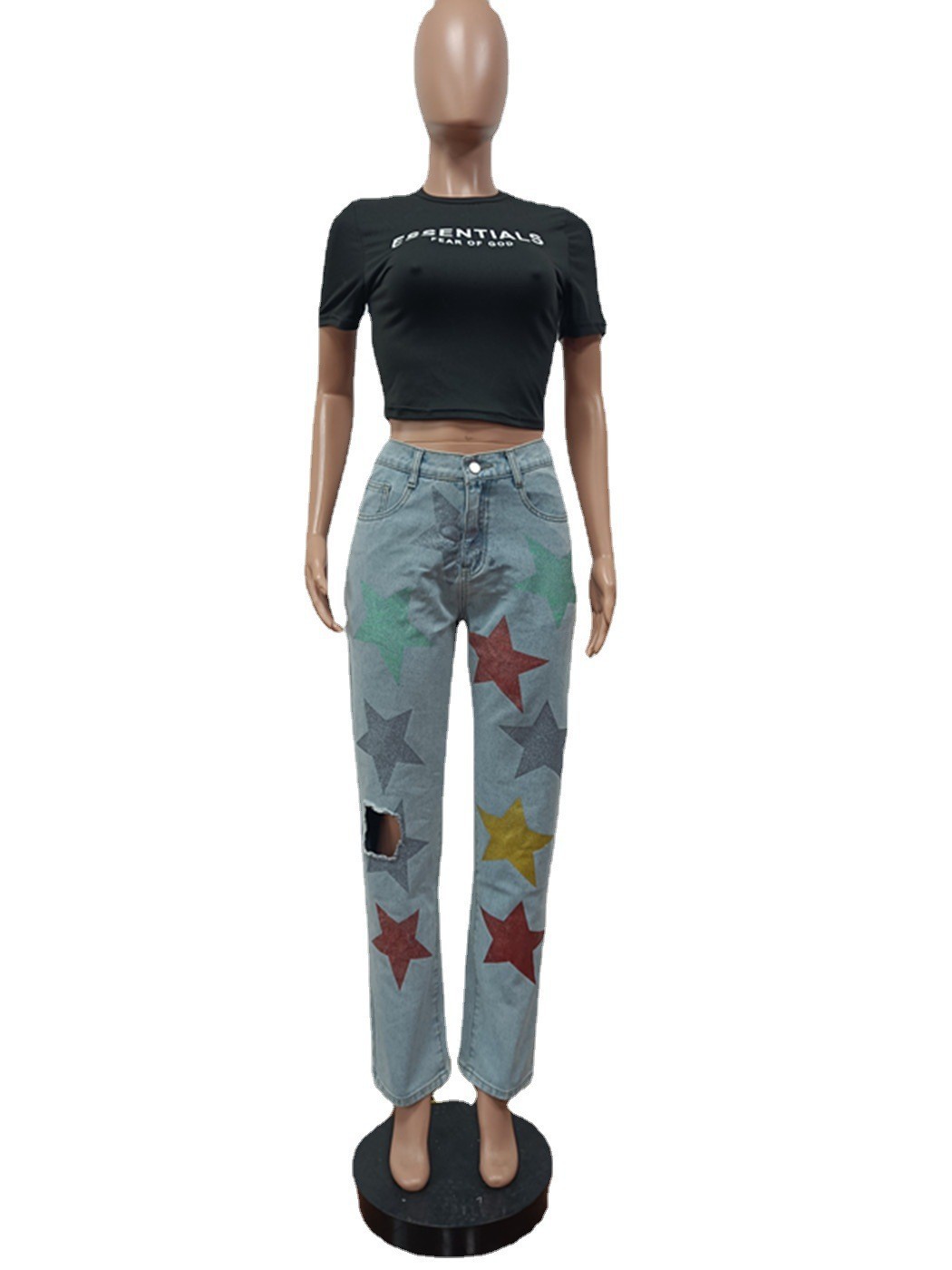 Denim Trousers Popular Sequined Printed Ripped Five Pointed Star Jeans