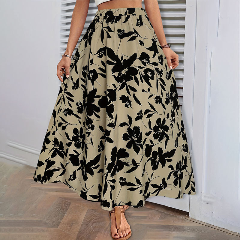 Elastic Waist Printed Long A Line Skirt Summer High Grade Office Draping Pleated Skirt Skirt Women Clothing