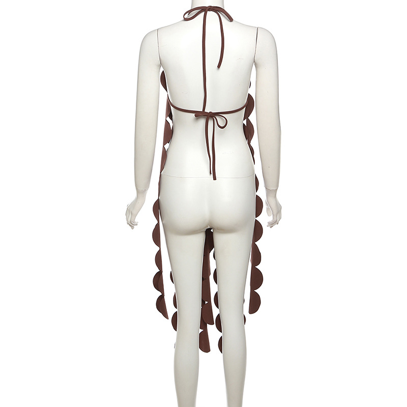 Fall Women Clothing Sexy Backless Halter Irregular Asymmetric Slim Fit Long Shirt
