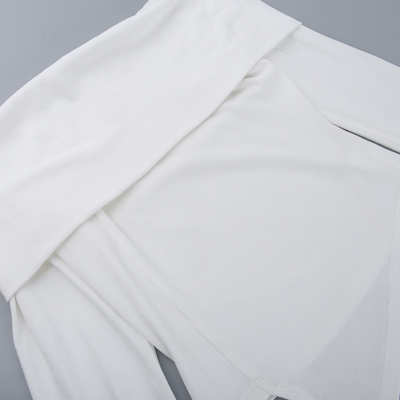 Fashionable off Shoulder Irregular Asymmetric Long Sleeve Top Autumn Simple Solid Color Top