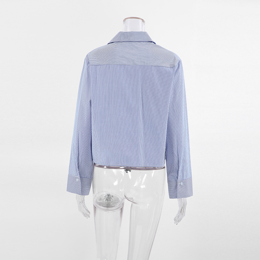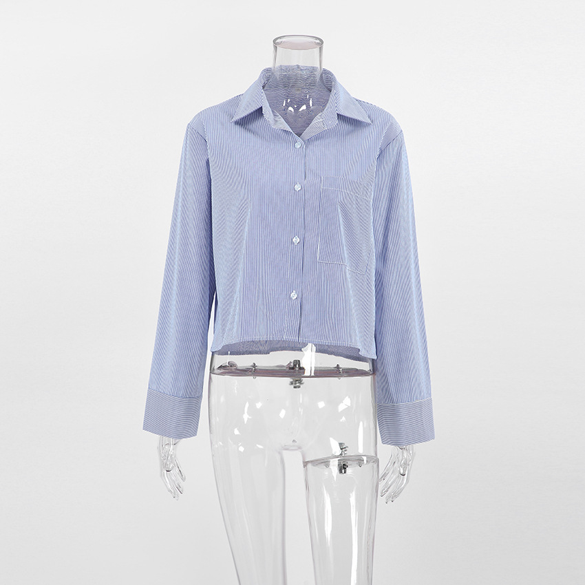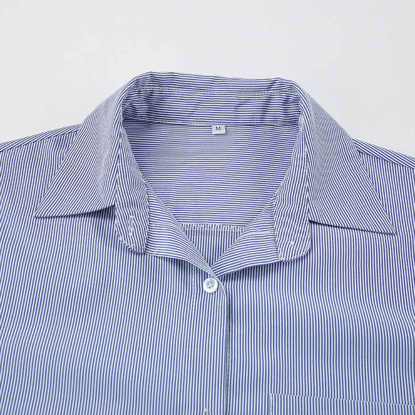 French Gentle Striped Shirt Women Autumn Office Bottoming Collared Long Sleeve Cotton Shirt Elegant Women Clothing