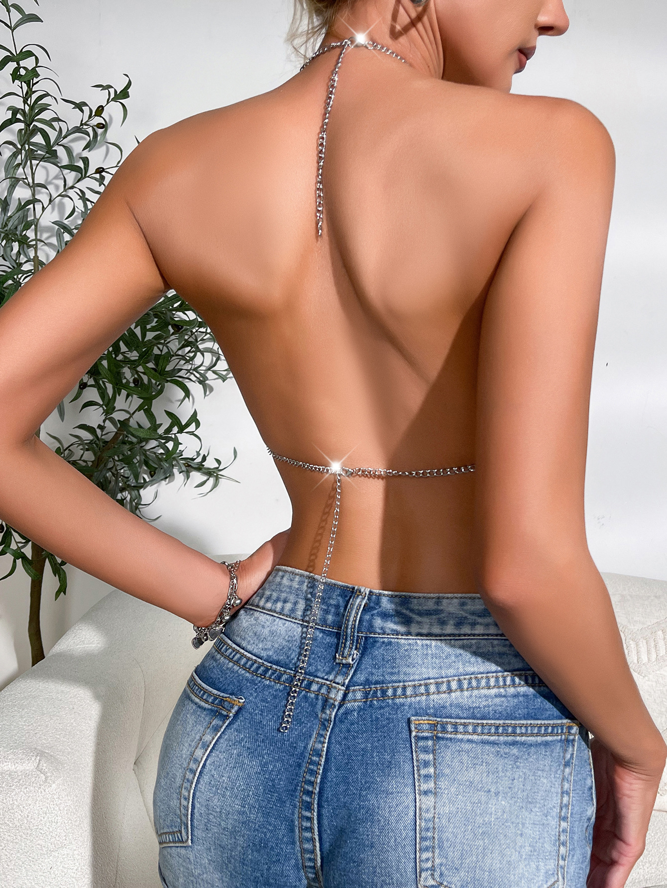 Glow Gem Ornament Sexy Halter Sling Backless Women Vest