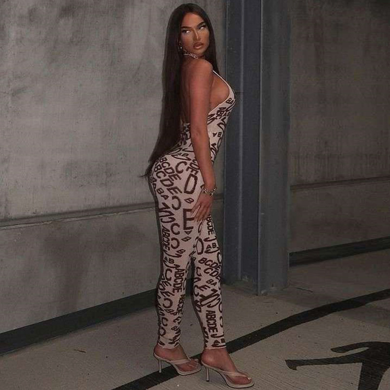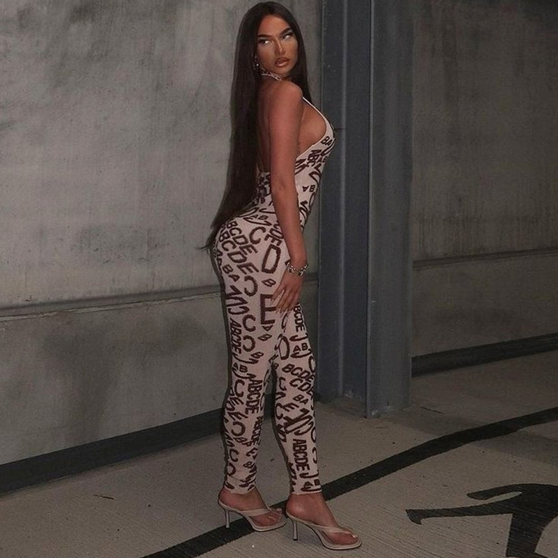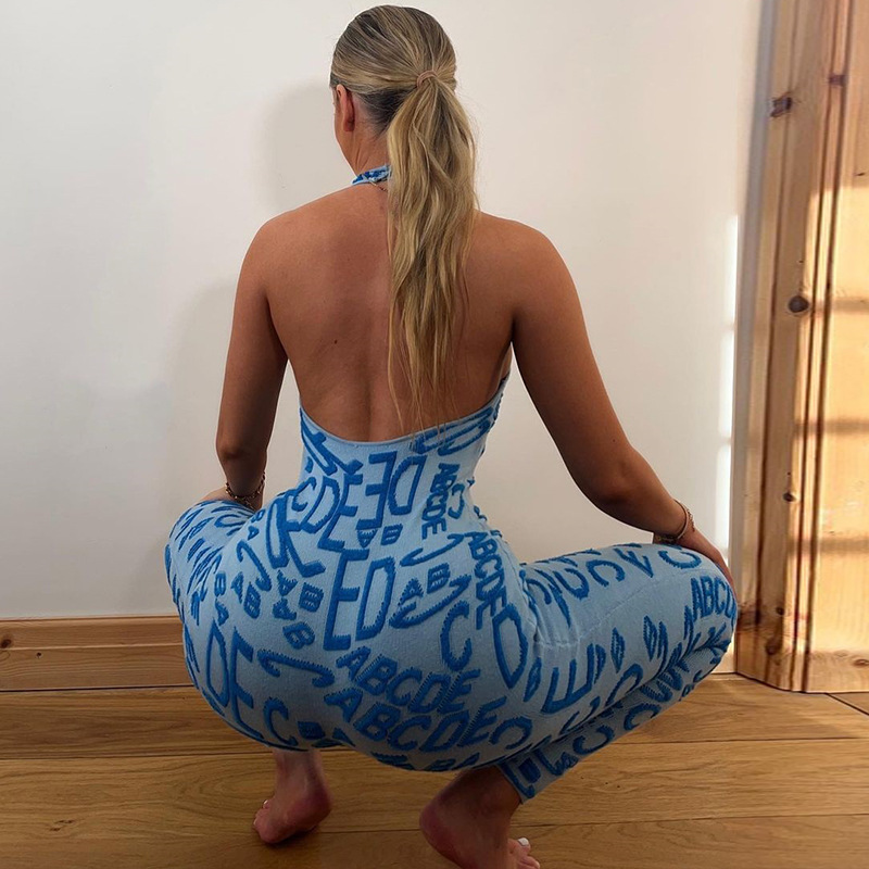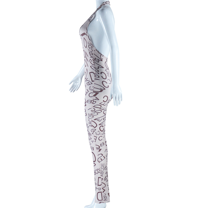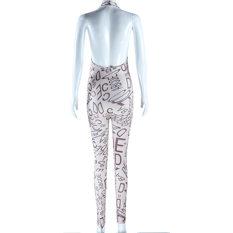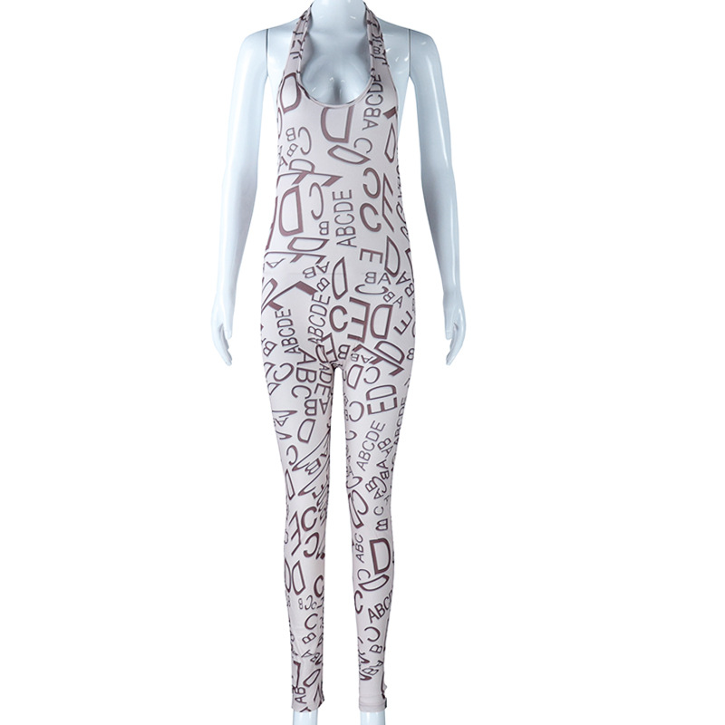 Halter Tight Jumpsuit Letter Graphic Print Backless Gym Pants Hip Lifting Yoga Leggings