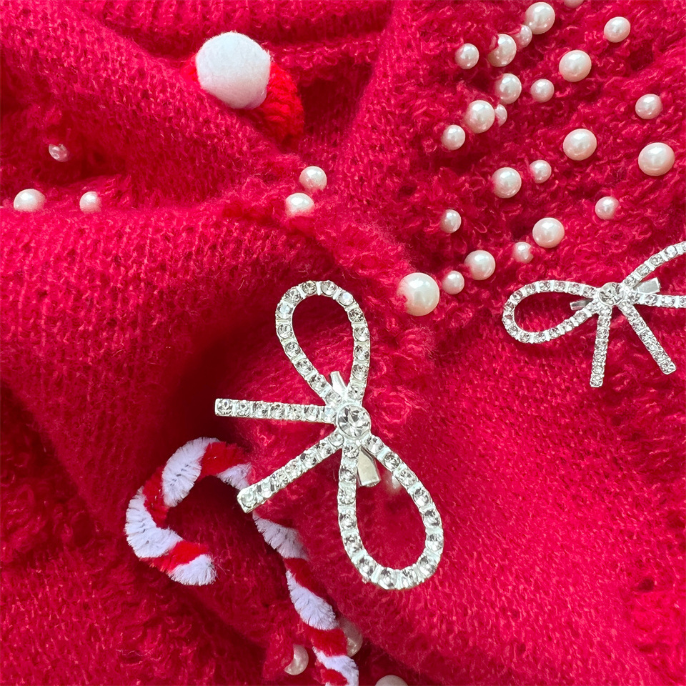 Handmade Pearl Christmas Theme Sweater Three Dimensional Decoration Year Holiday Sweater Pullover