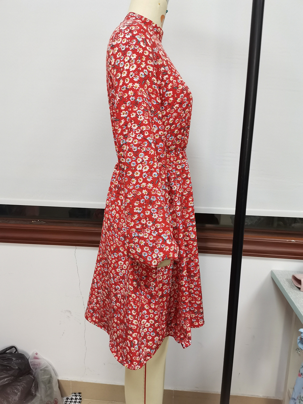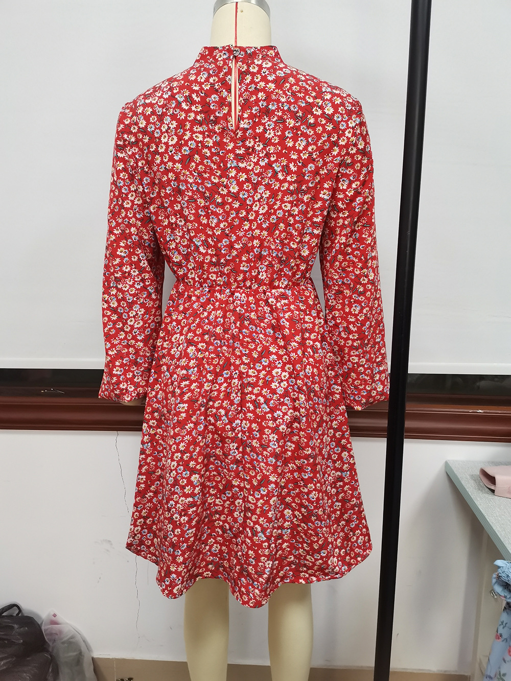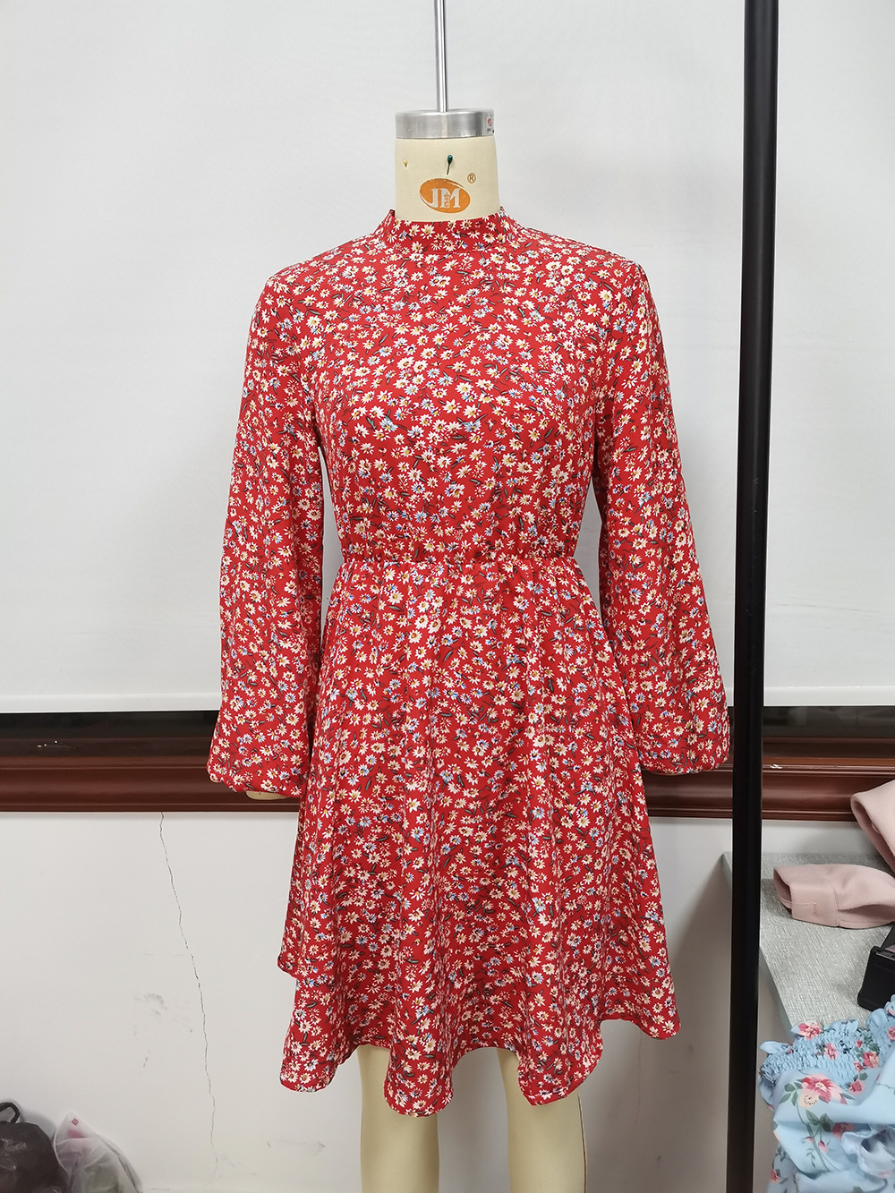 High Round Neck Pullover Long Sleeve Printed Long Sleeve Dress Floral Women