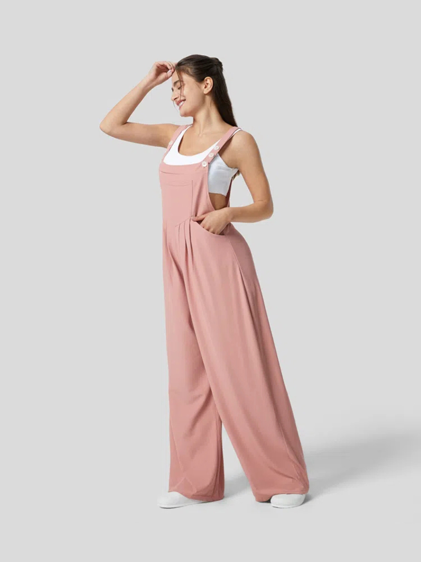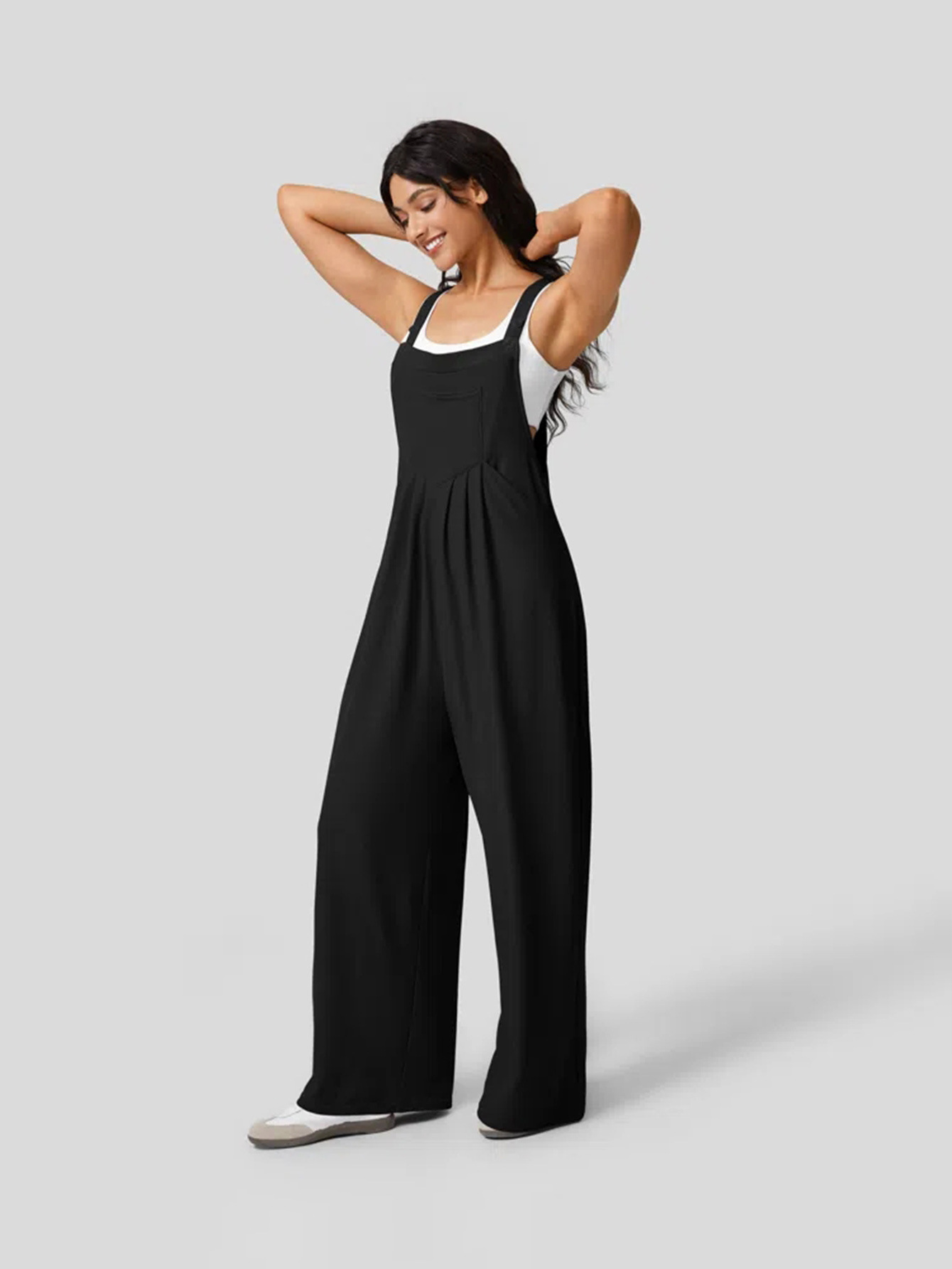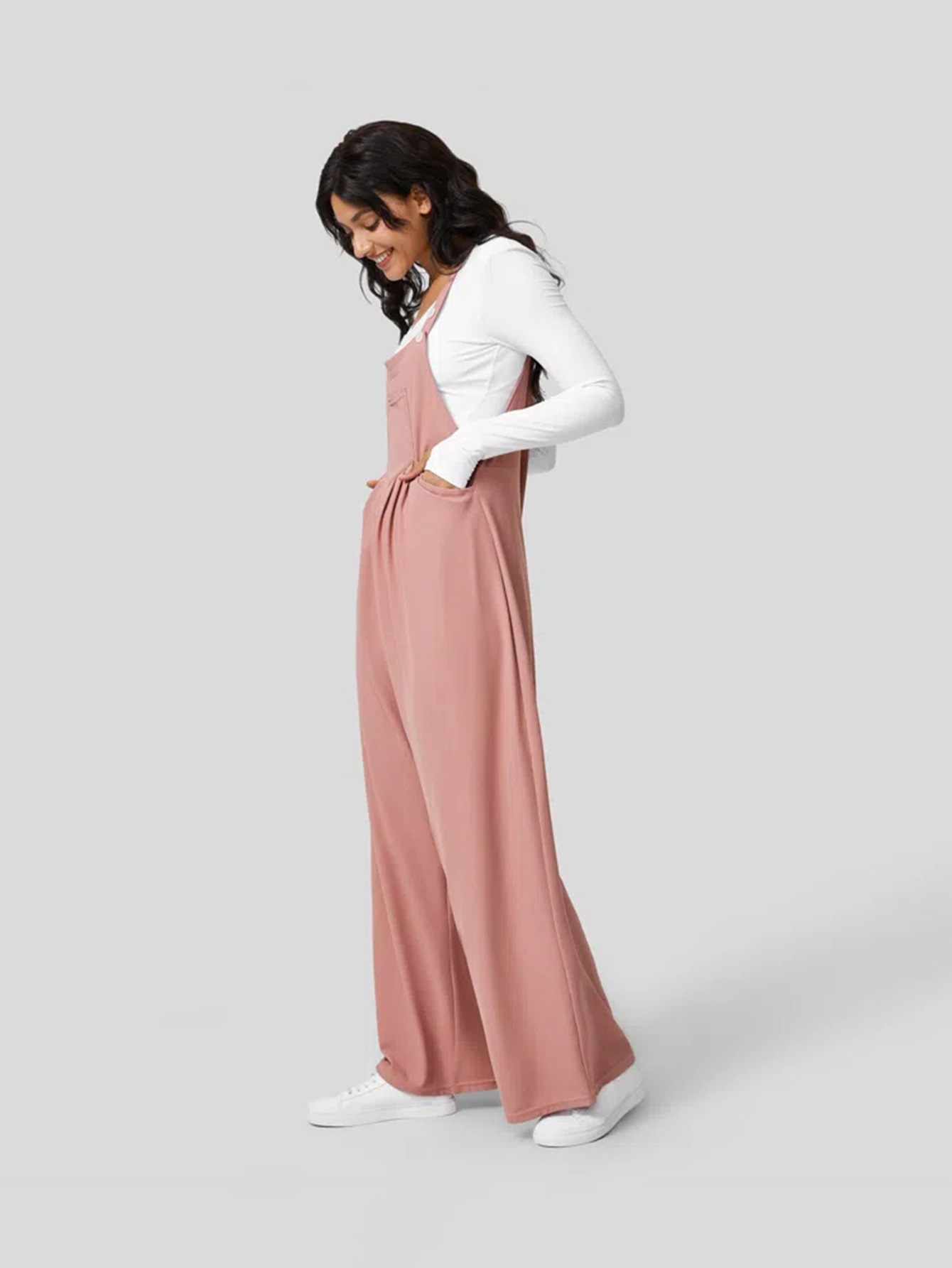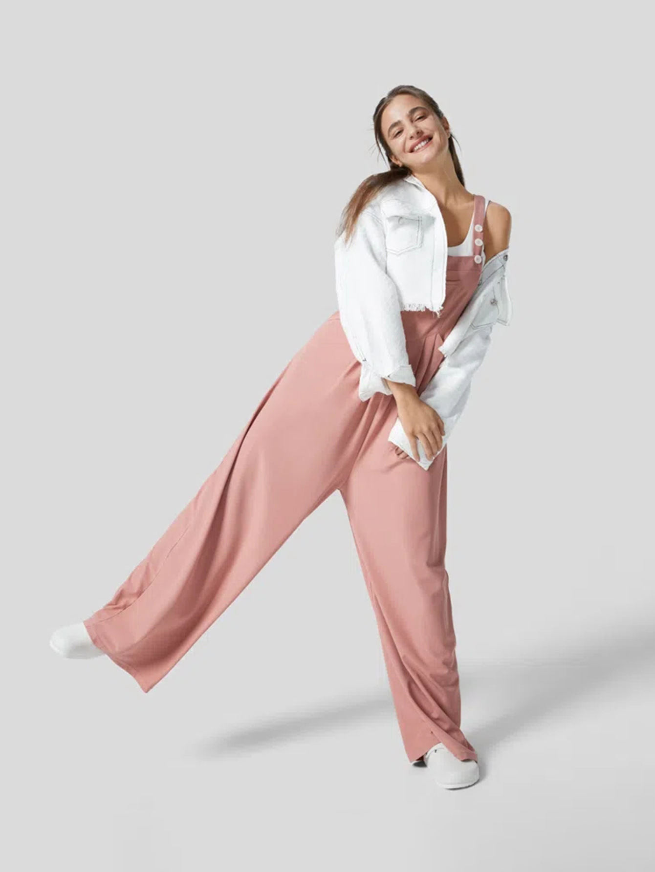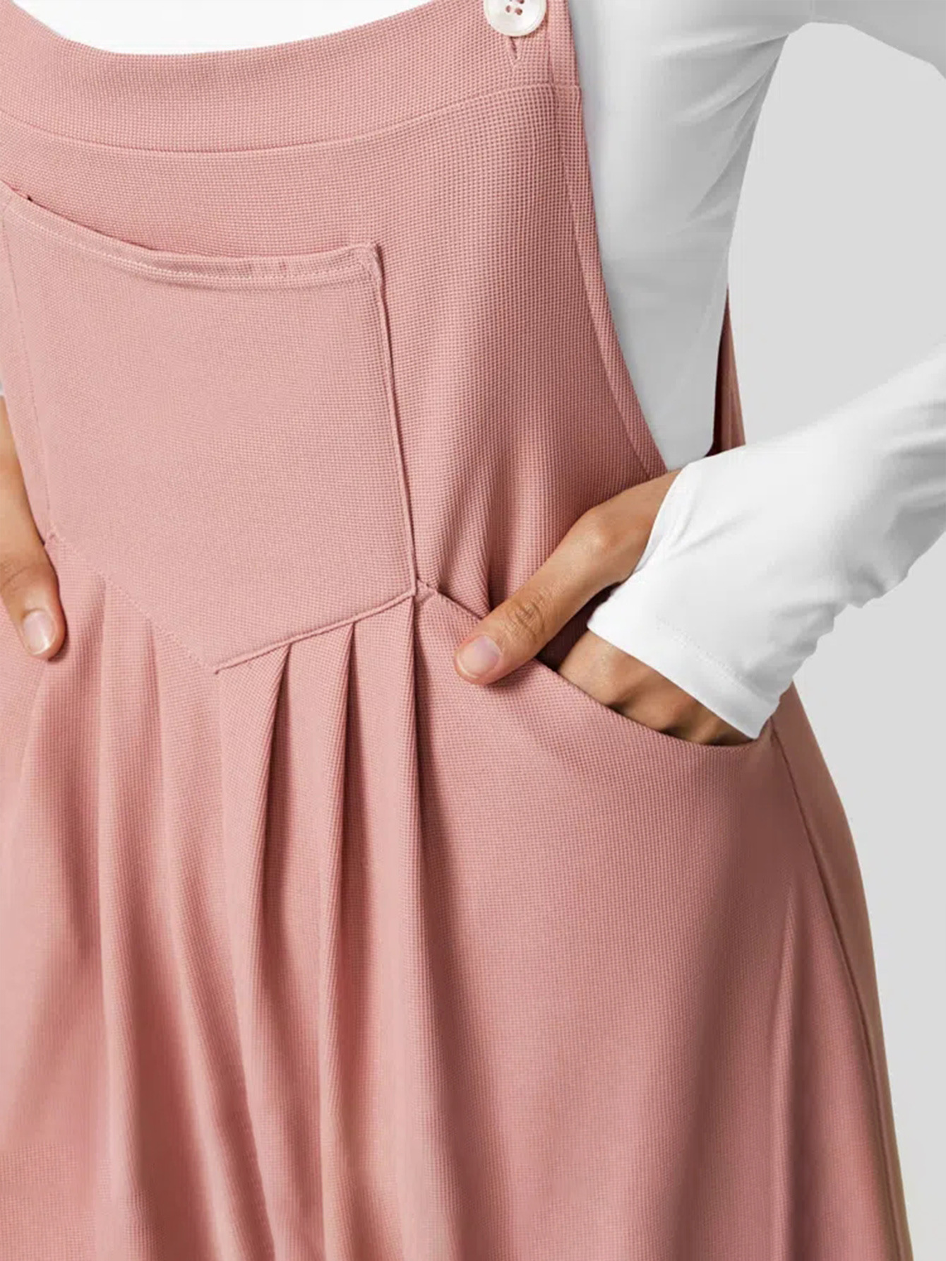 Knitted Design Waist Pleated Slimming Casual Comfortable Suspender Pants