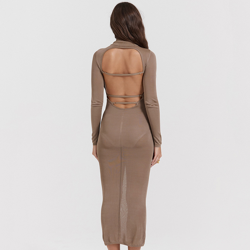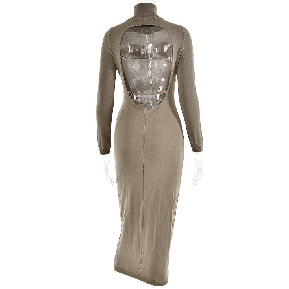Knitted Women Clothing Half Turtleneck Dress Sexy Elegant Bodycon Backless Dress