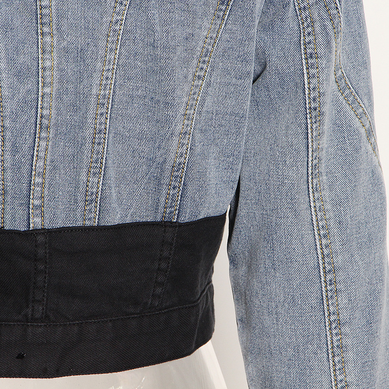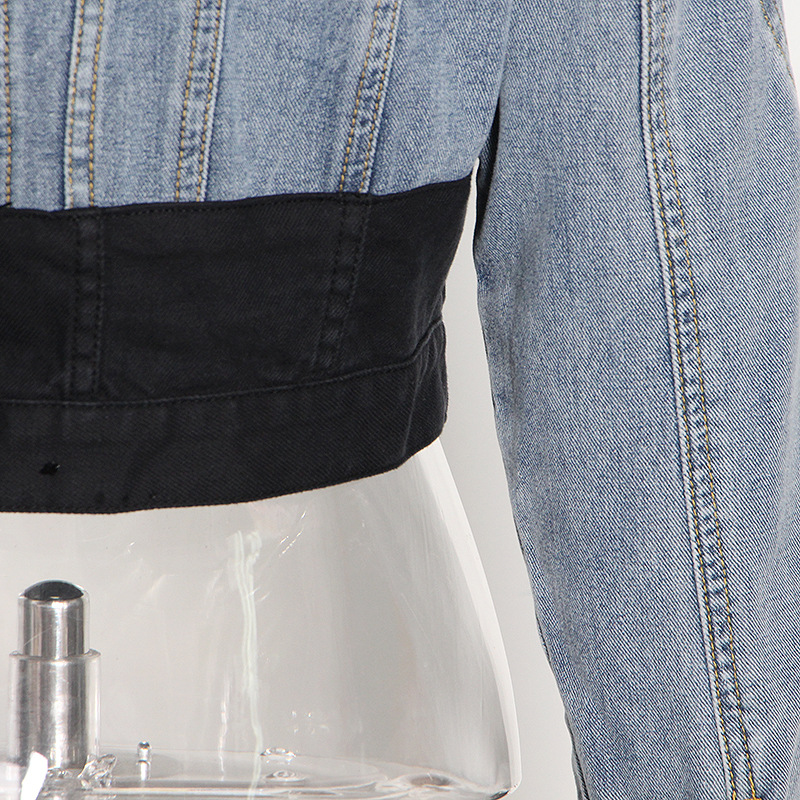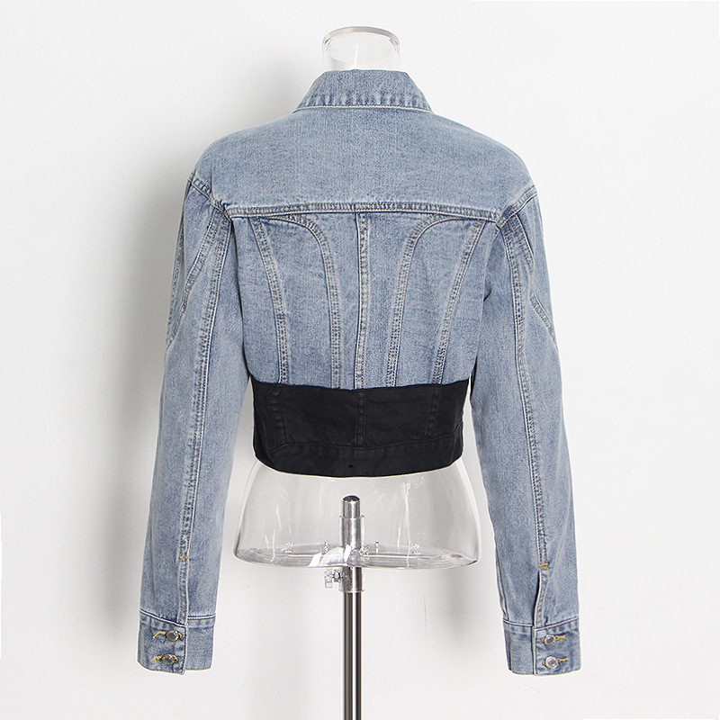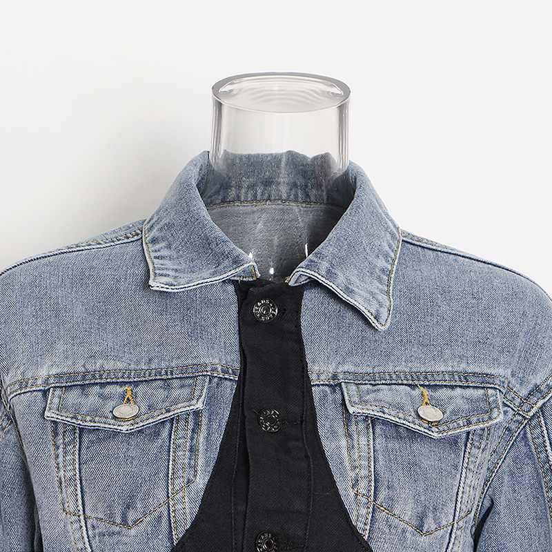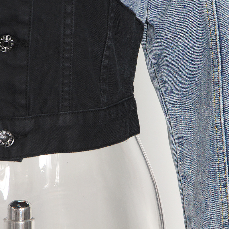 Korean Niche Two Piece Set Black White Short Stitching Denim Clothing High Waist Straight Ankle Tied Trousers