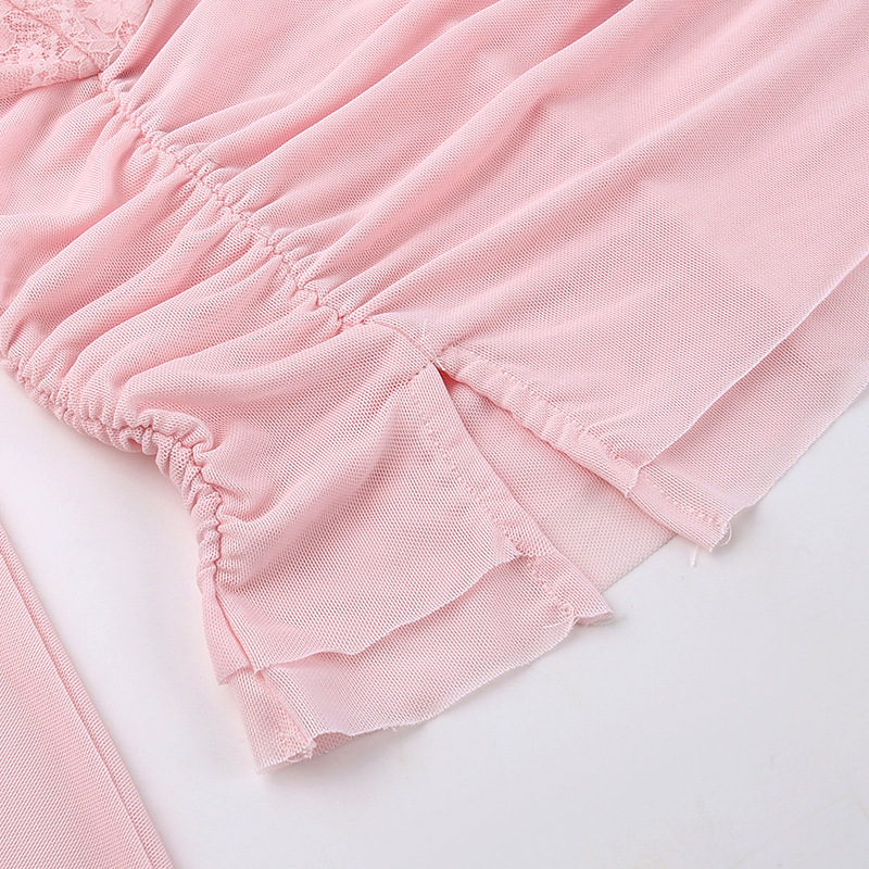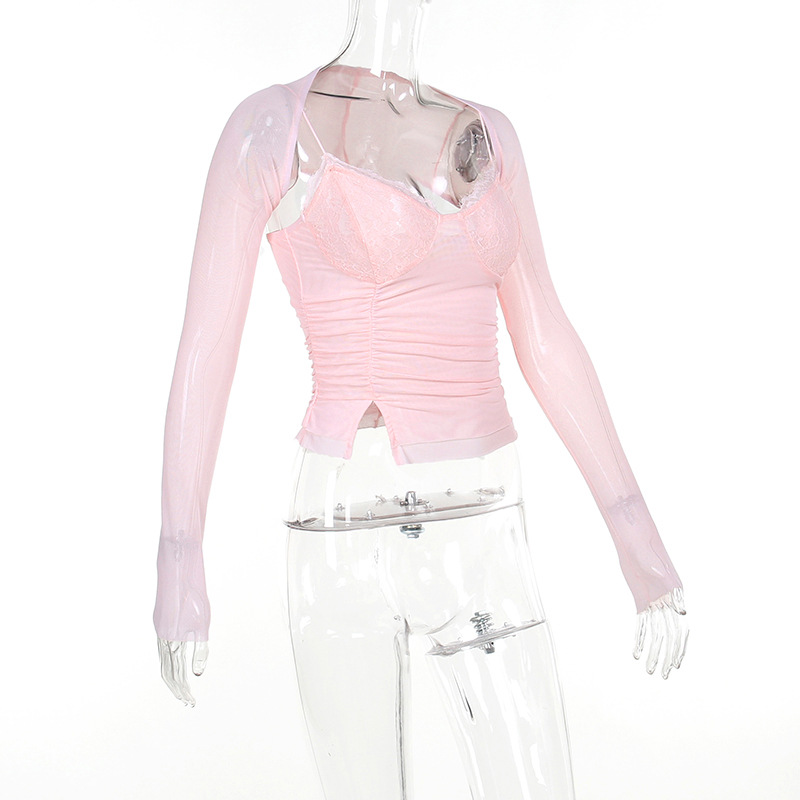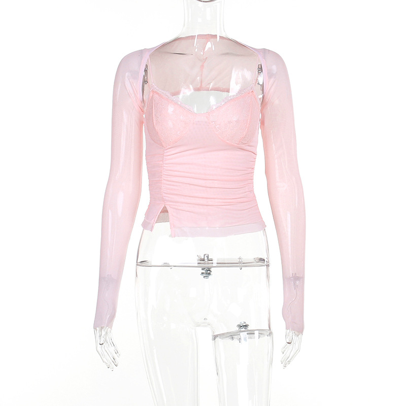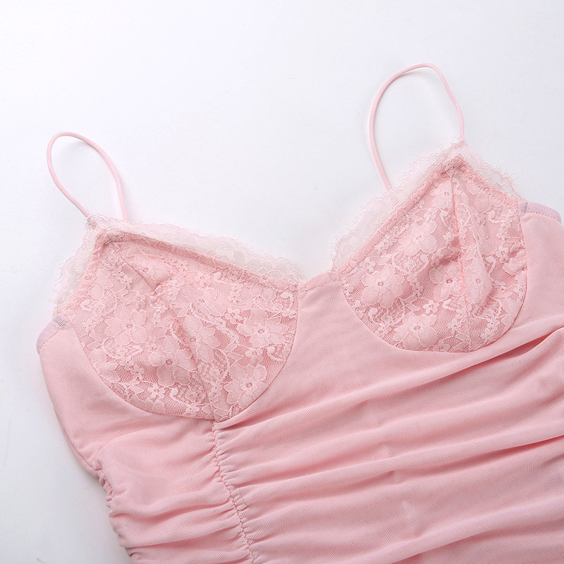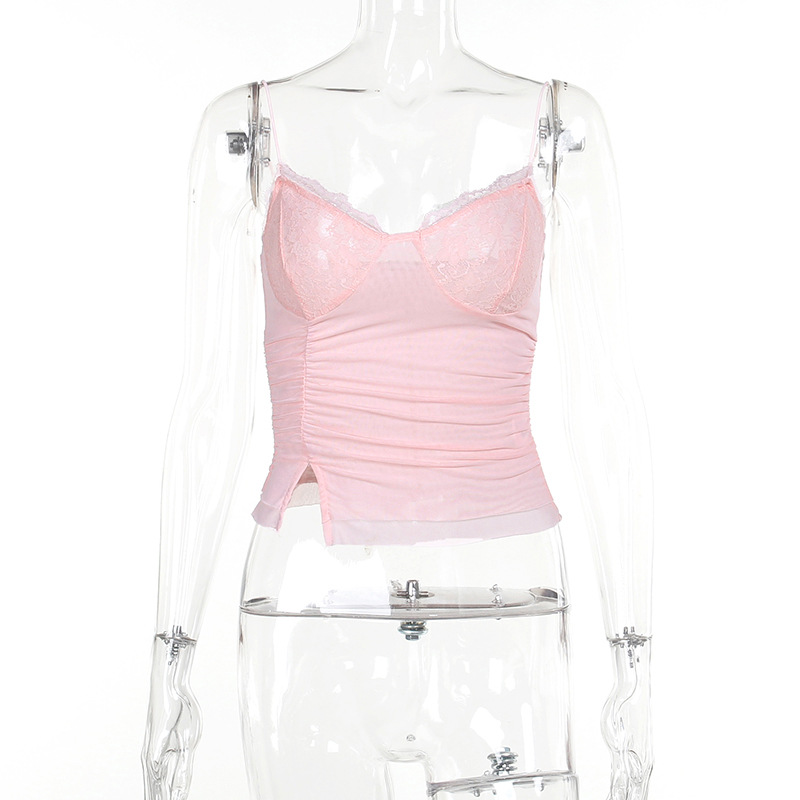 Lace Spaghetti Strap Smock Top Women Autumn Micro Transparent Sexy Women Clothing