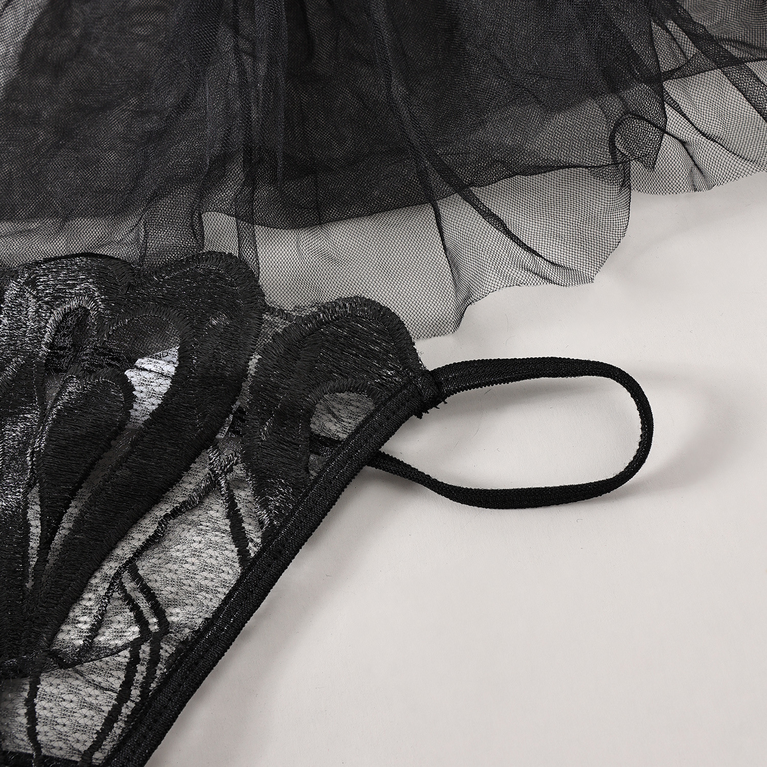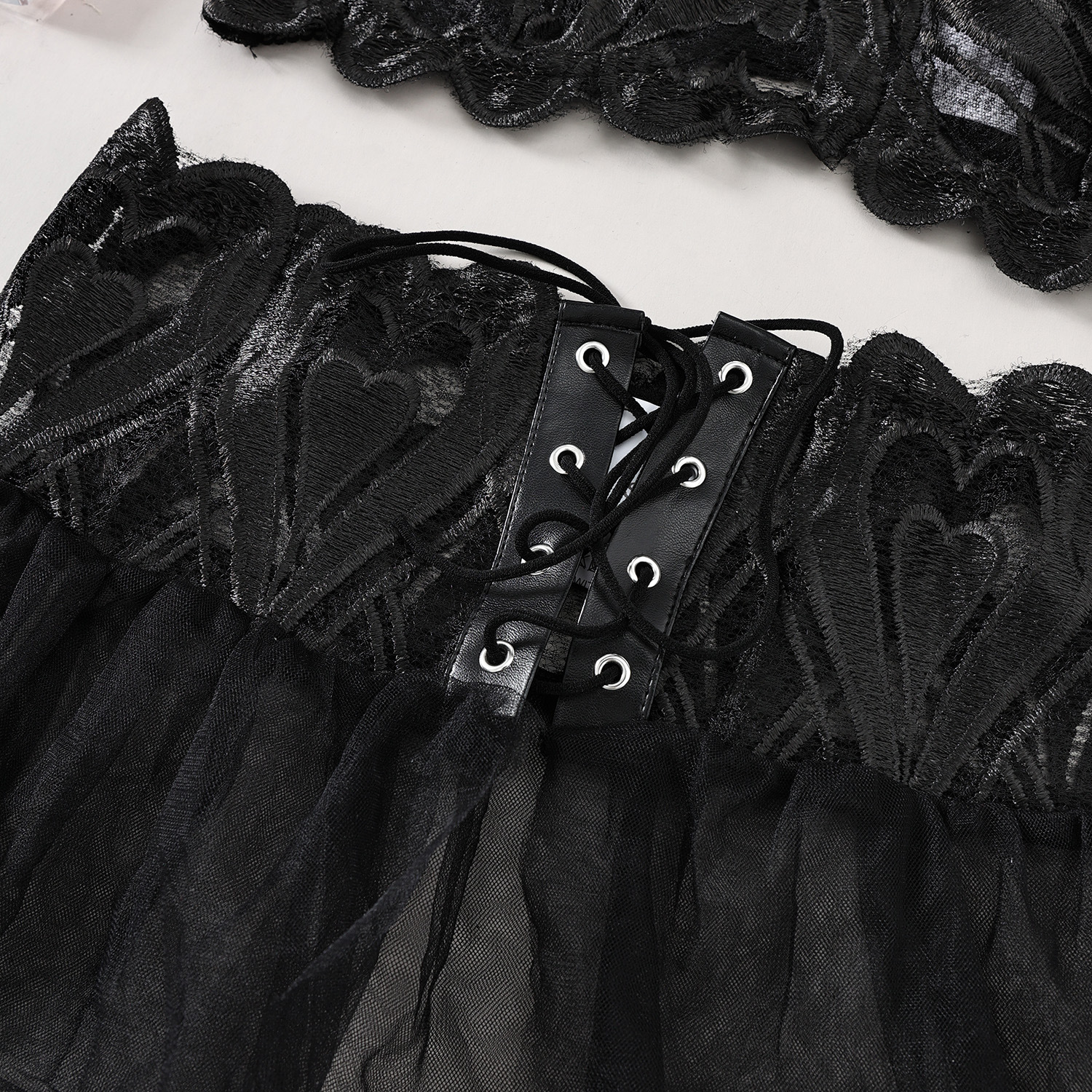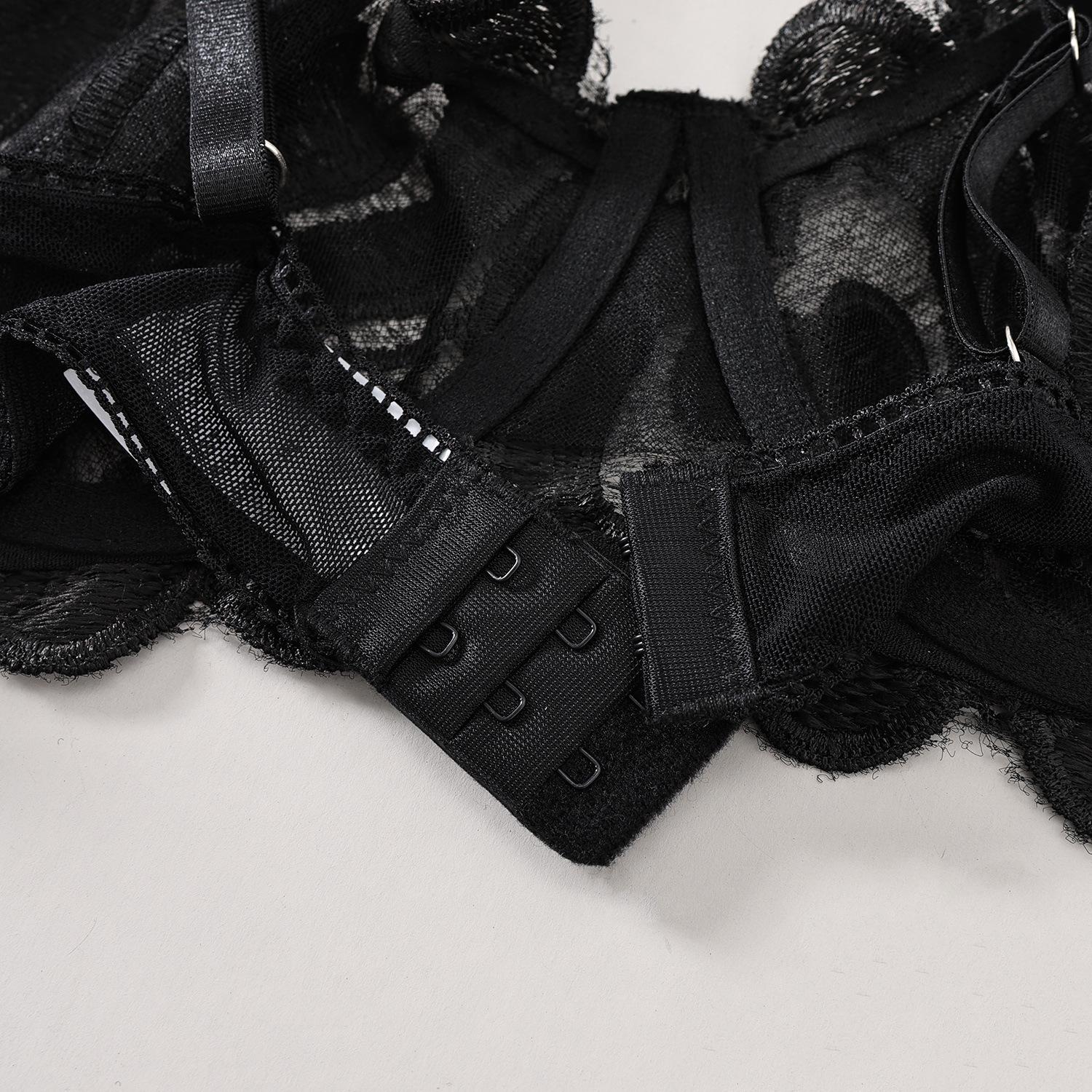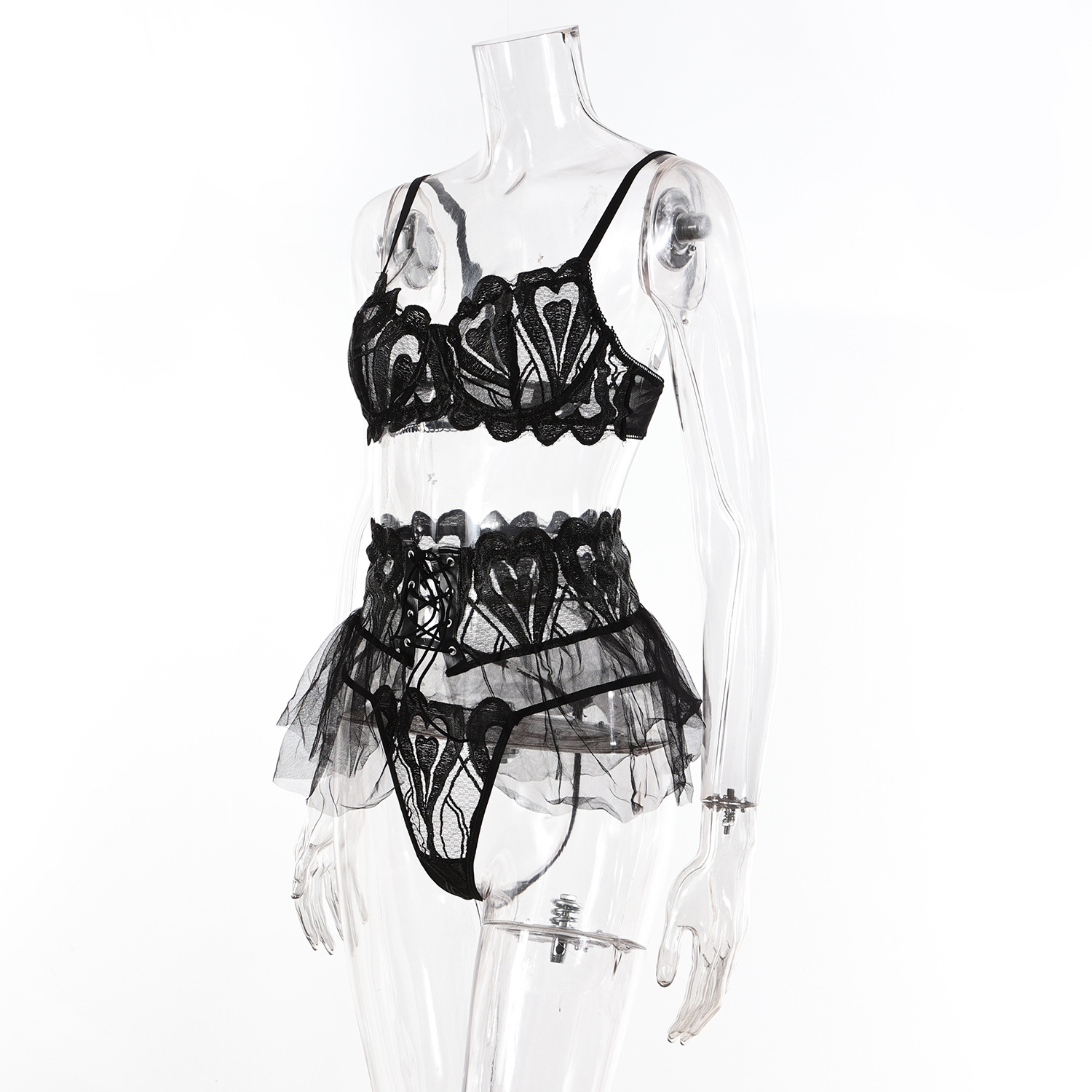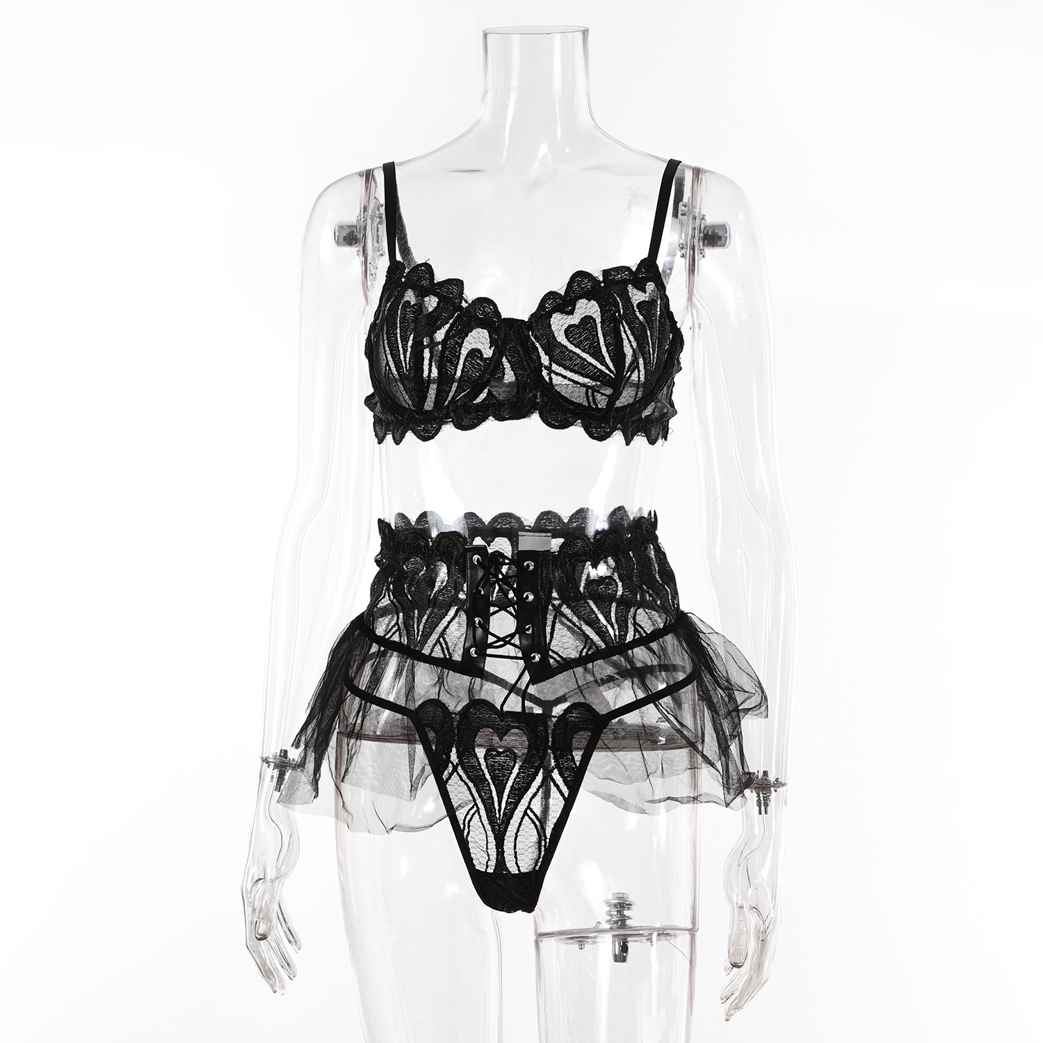 Lace Strap Embroidery Stitching Sexy Underwear Three Piece Set