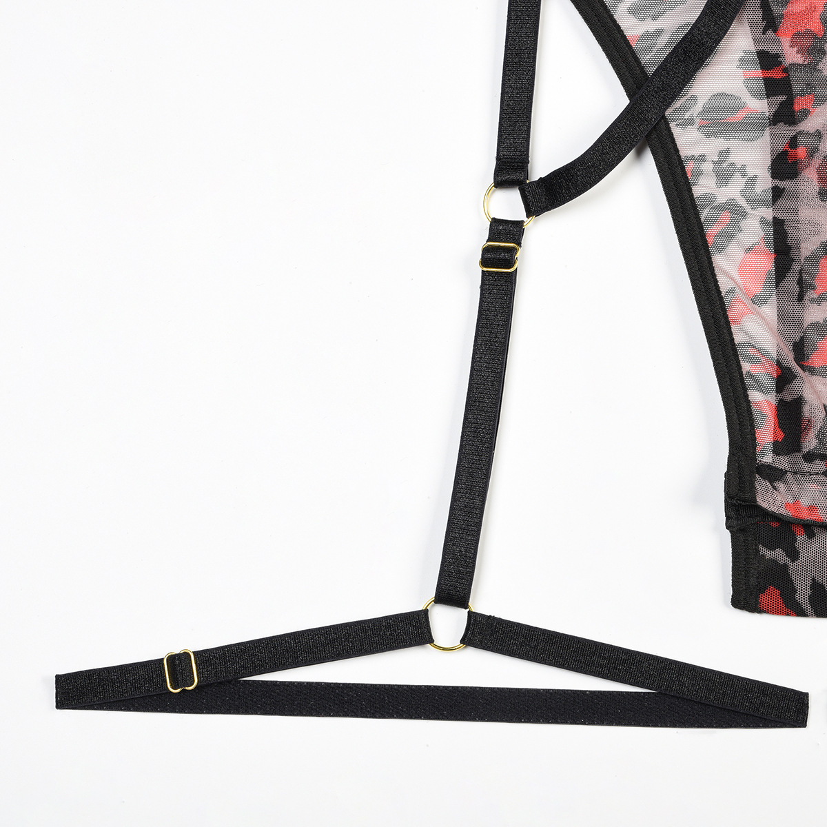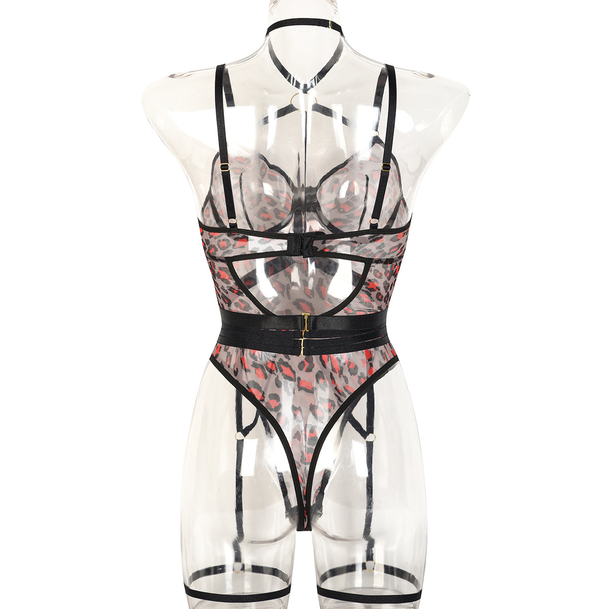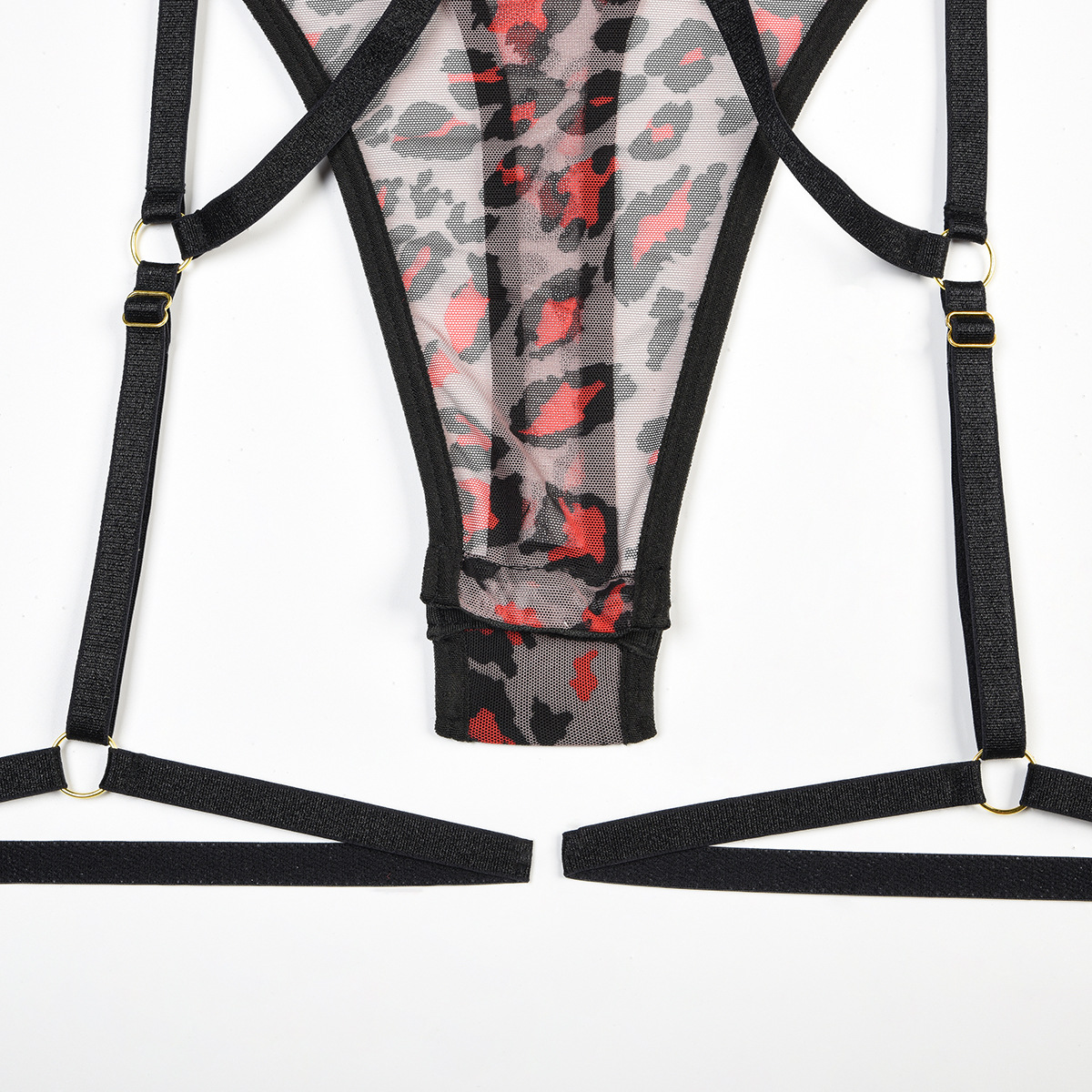 Leopard Print Sheer Mesh Strap Sexy Lingerie with Steel Ring Sexy Bodybuilding Jumpsuit