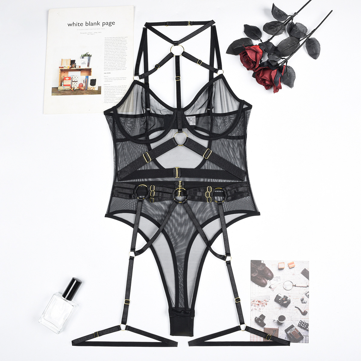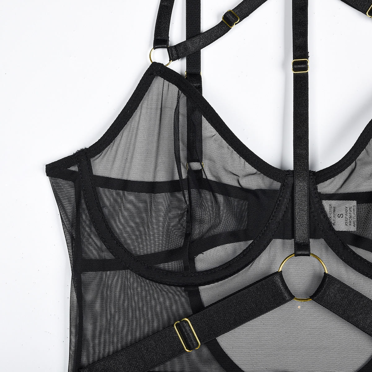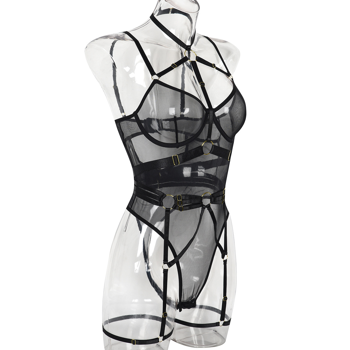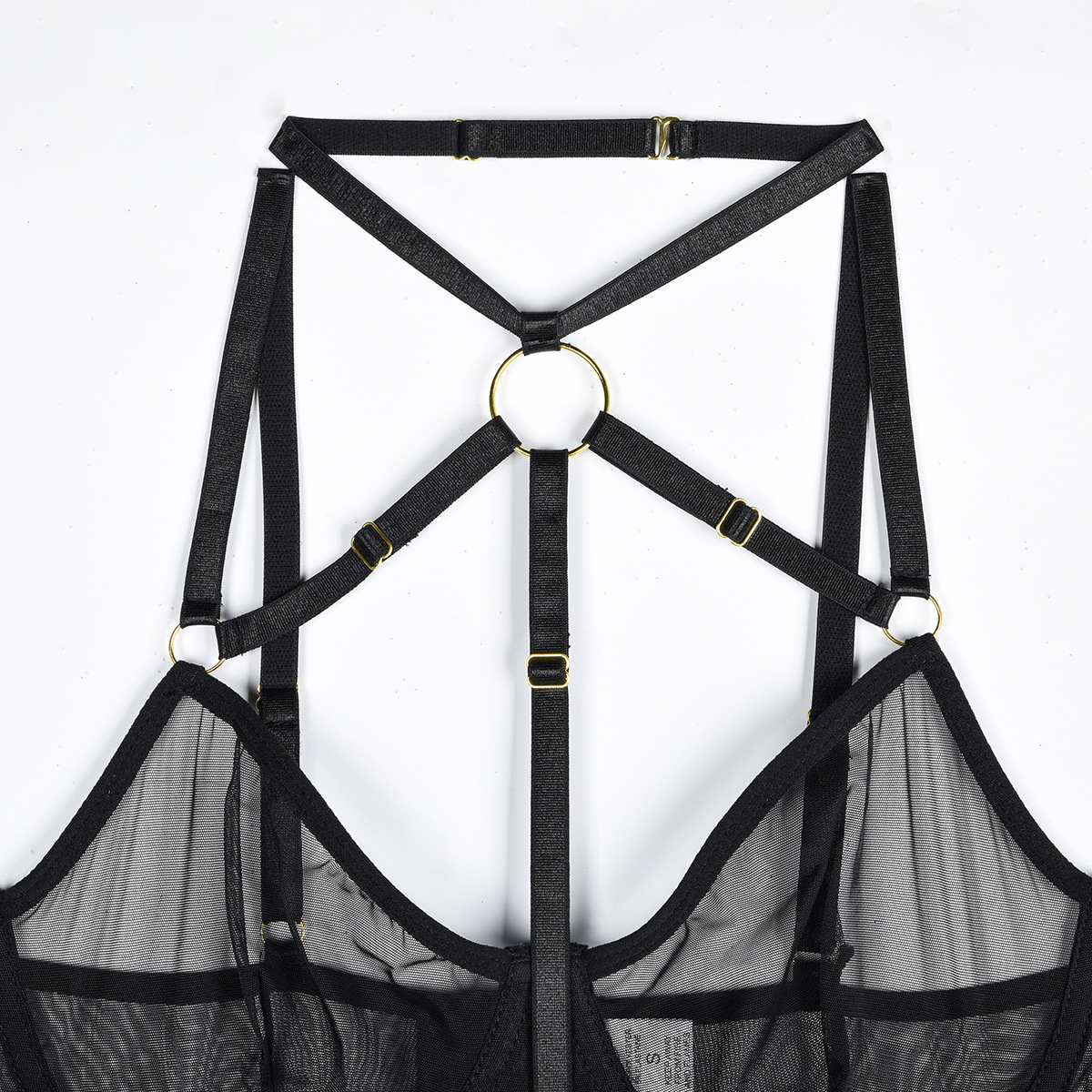 Leopard Print Sheer Mesh Strap Sexy Lingerie with Steel Ring Sexy Bodybuilding Jumpsuit
