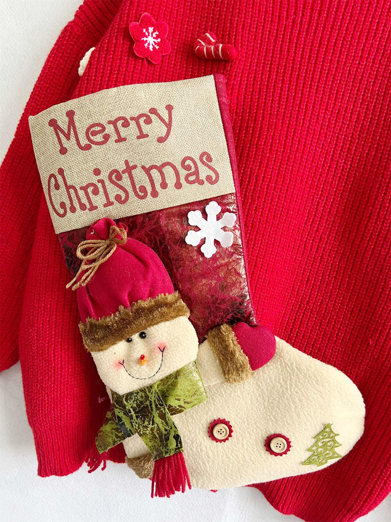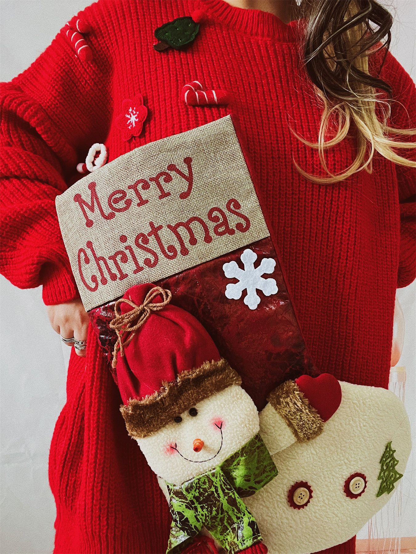 Loose Thick Christmas Sweater Oversized Christmas Stockings Snowman Doll Pocket Decoration Red Year Sweater Women